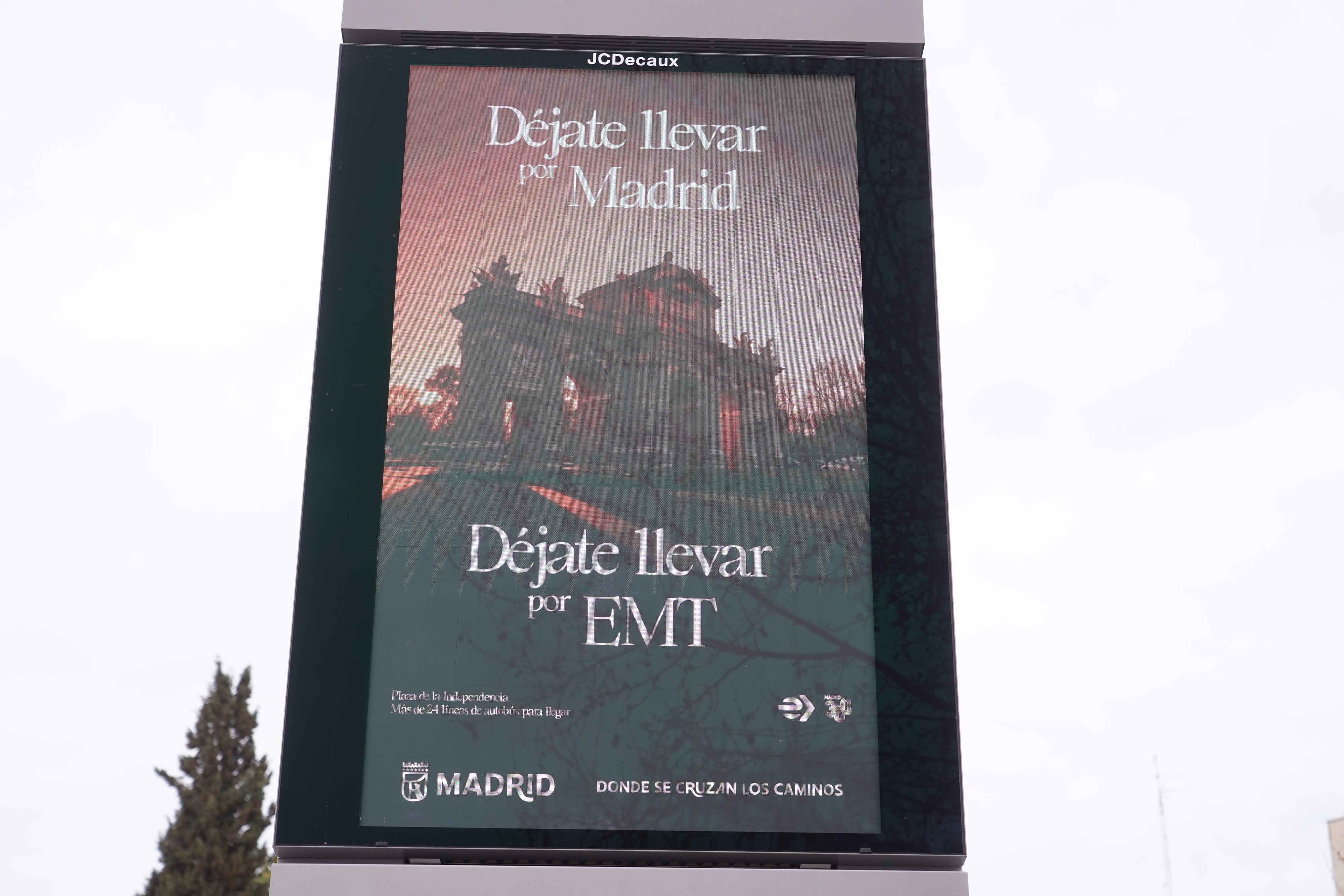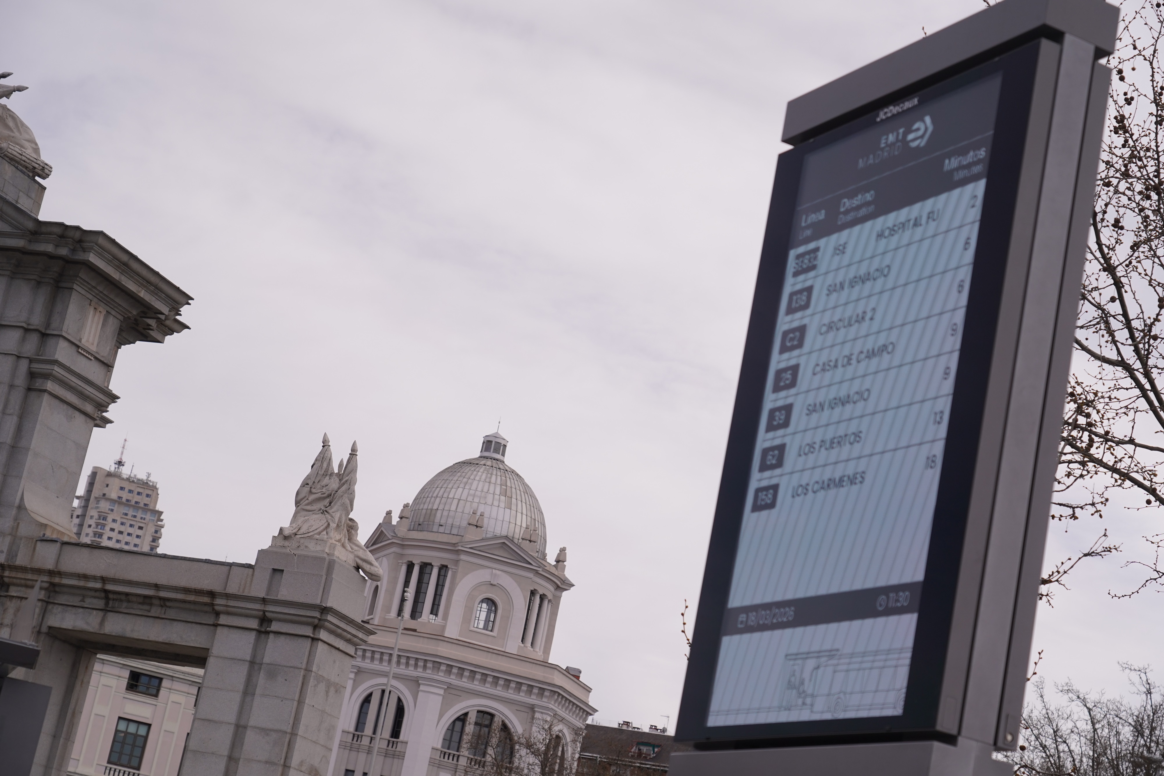 El Ayuntamiento instala pantallas de gran formato en nueve ubicaciones emblemáticas para reforzar la comunicación de EMT Madrid con el usuario