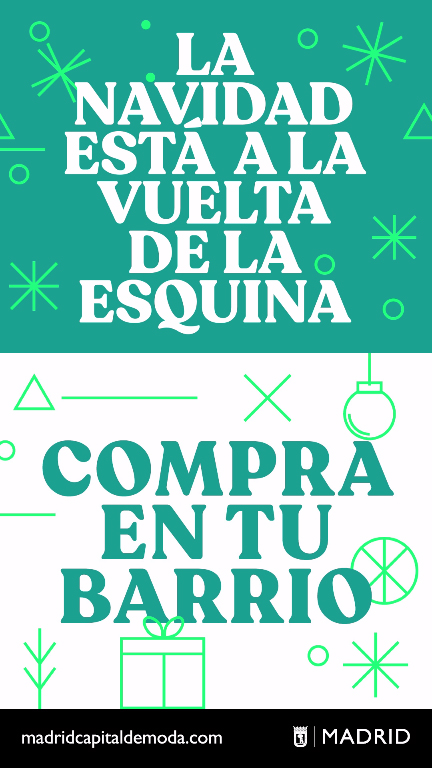 Desde el día 2 hasta el 31 de diciembre se pone en marcha ‘La Navidad está a la vuelta de la esquina’, cuyo objetivo es concienciar sobre la importancia del comercio local y de proximidad como actividad económica generadora de empleo, de mantenimiento del tejido social de los barrios y de promoción de un comercio sostenible. Esta campaña se exhibirá en los más de 300 mupis digitales colocados en todos los barrios de la ciudad.