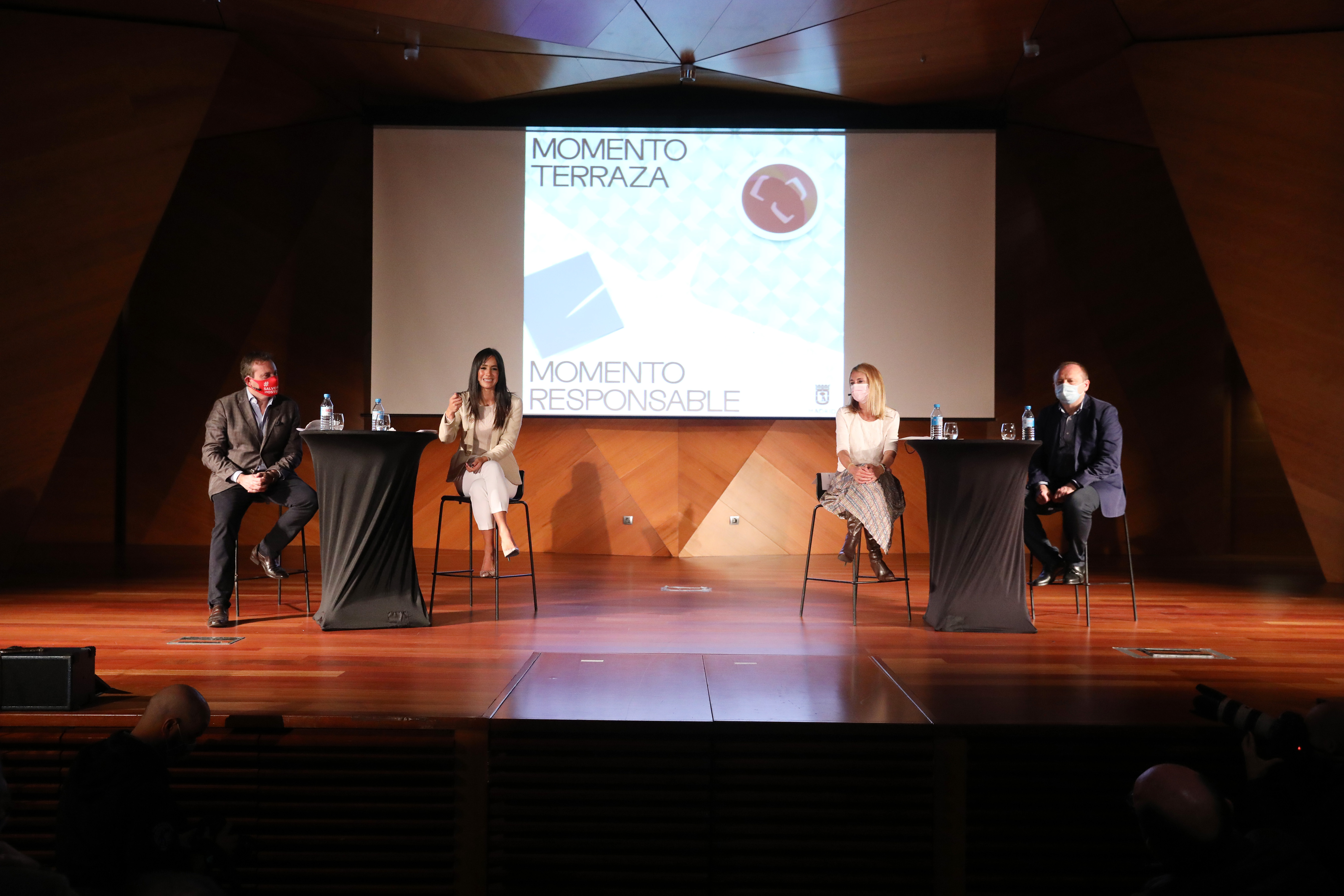 La campaña ‘Momento terraza, momento responsable’ la han presentado esta mañana la vicealcaldesa, Begoña Villacís, y la concejala del Área Delegada de Coordinación Territorial, Transparencia y Participación Ciudadana, Silvia Saavedra. El acto también ha contado con la presencia del delegado del Área de Gobierno de Economía, Innovación y Empleo, Miguel Ángel Redondo y del director general de la asociación Hostelería Madrid, Juan José Blardony.
