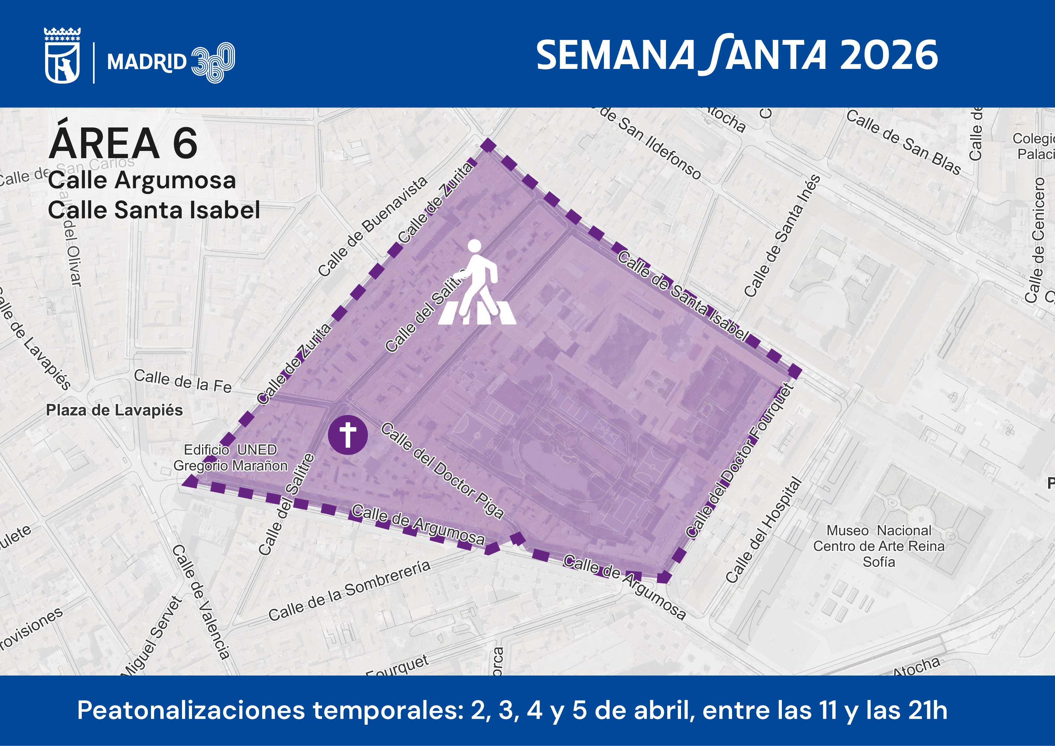 - Cortes perimetrales: calle de Santa Isabel/San Cosme y San Damián, calle de Argumosa/Salitre, calle de la Fe/Zurita.