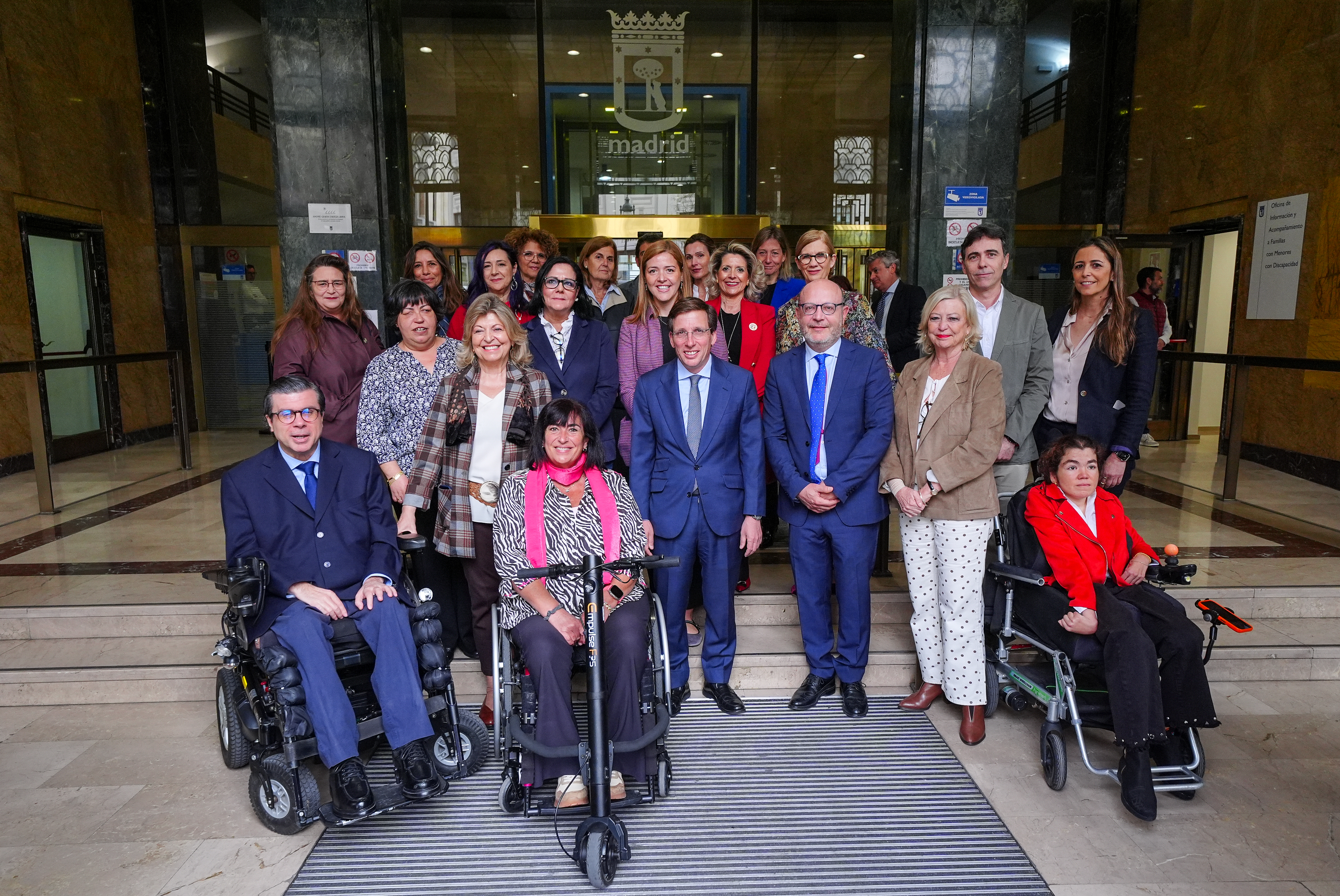 El alcalde de Madrid, José Luis Martínez-Almeida, acompañado por los delegados de Políticas Sociales, Familia e Igualdad, José Fernández; Economía, Innovación y Hacienda, Engracia Hidalgo, y Obras y Equipamientos, Paloma García Romero, ha inaugurado hoy la Oficina de Información y Acompañamiento a Familias con Menores con Discapacidad (OIFAMDIS) del Ayuntamiento. En este recurso pionero, cuya puesta en marcha se enmarca en el Plan de Fomento de la Natalidad y Conciliación 2024-2029, el Consistorio ofrece apoyo, asesoramiento y orientación a familias con hijos con afectación en el desarrollo o discapacidad diagnosticada durante el embarazo o en los primeros seis años de vida.