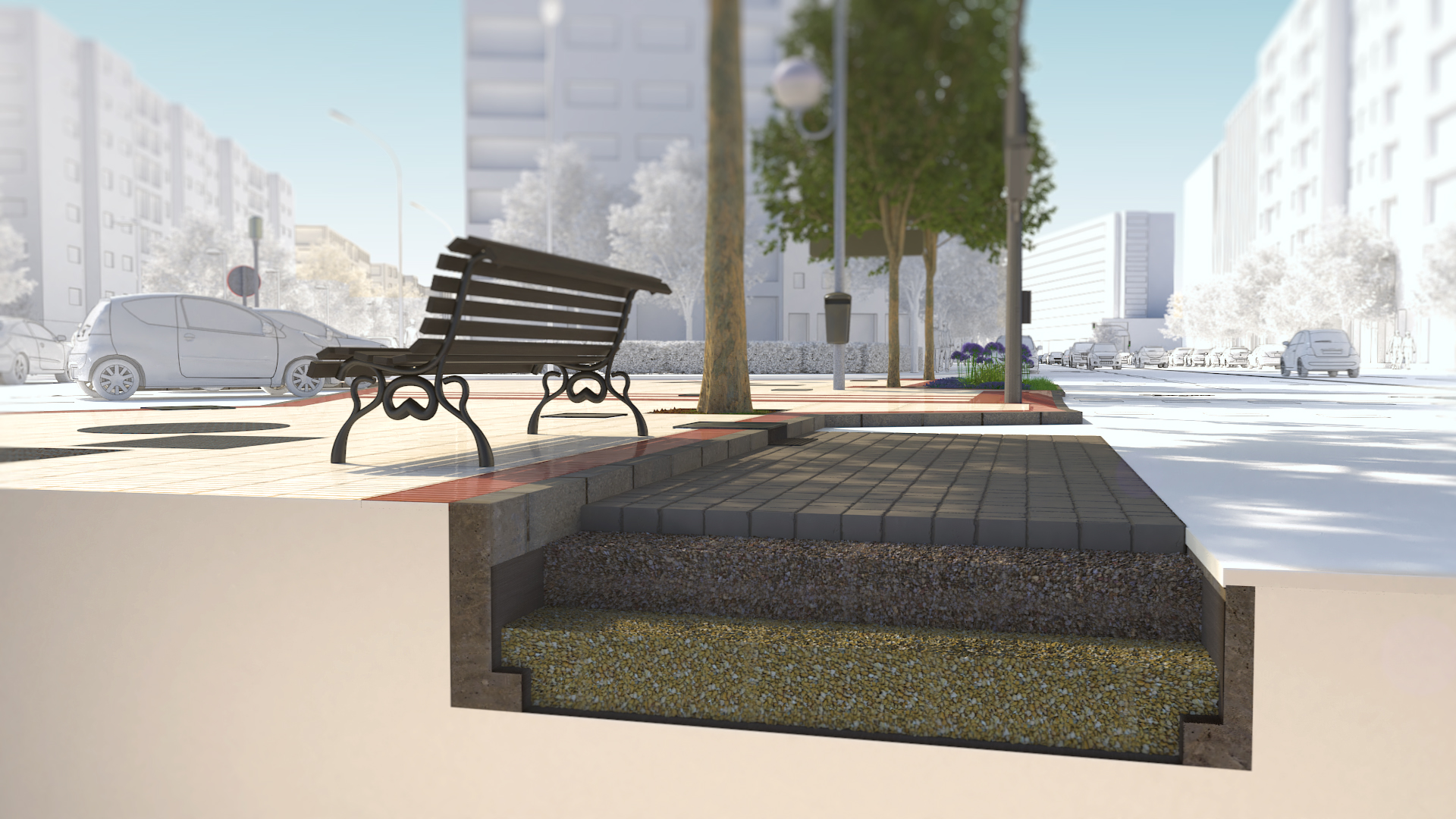 - El objetivo es conseguir recoger, limpiar e infiltrar no solo el agua de aceras y parques, sino también la escorrentía de lluvia procedente de las superficies viarias y aparcamientos