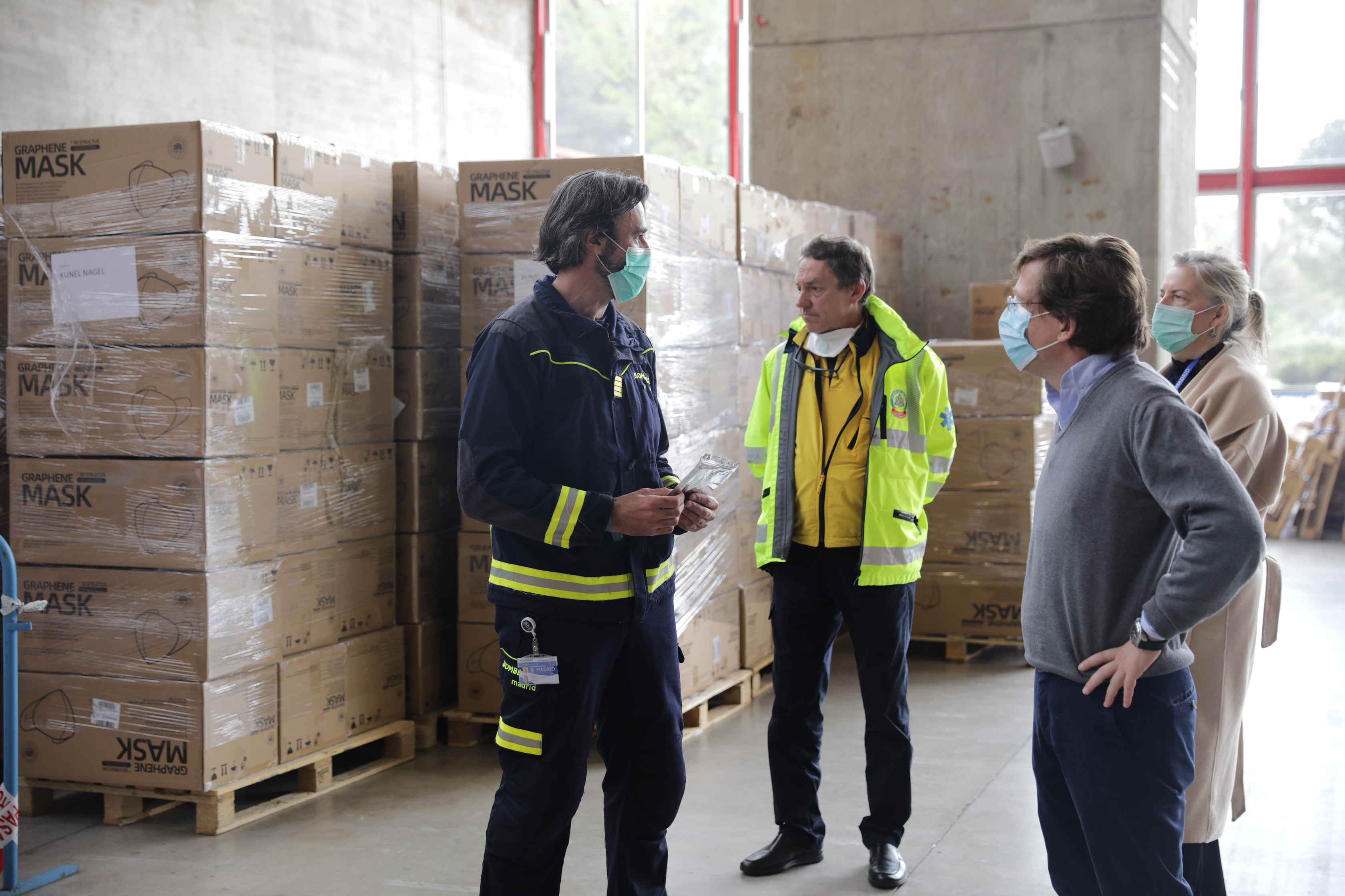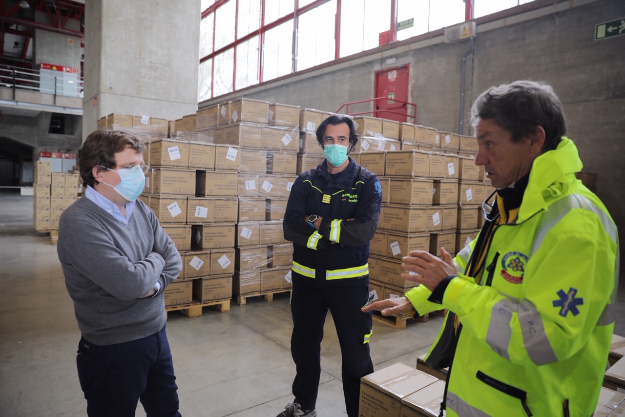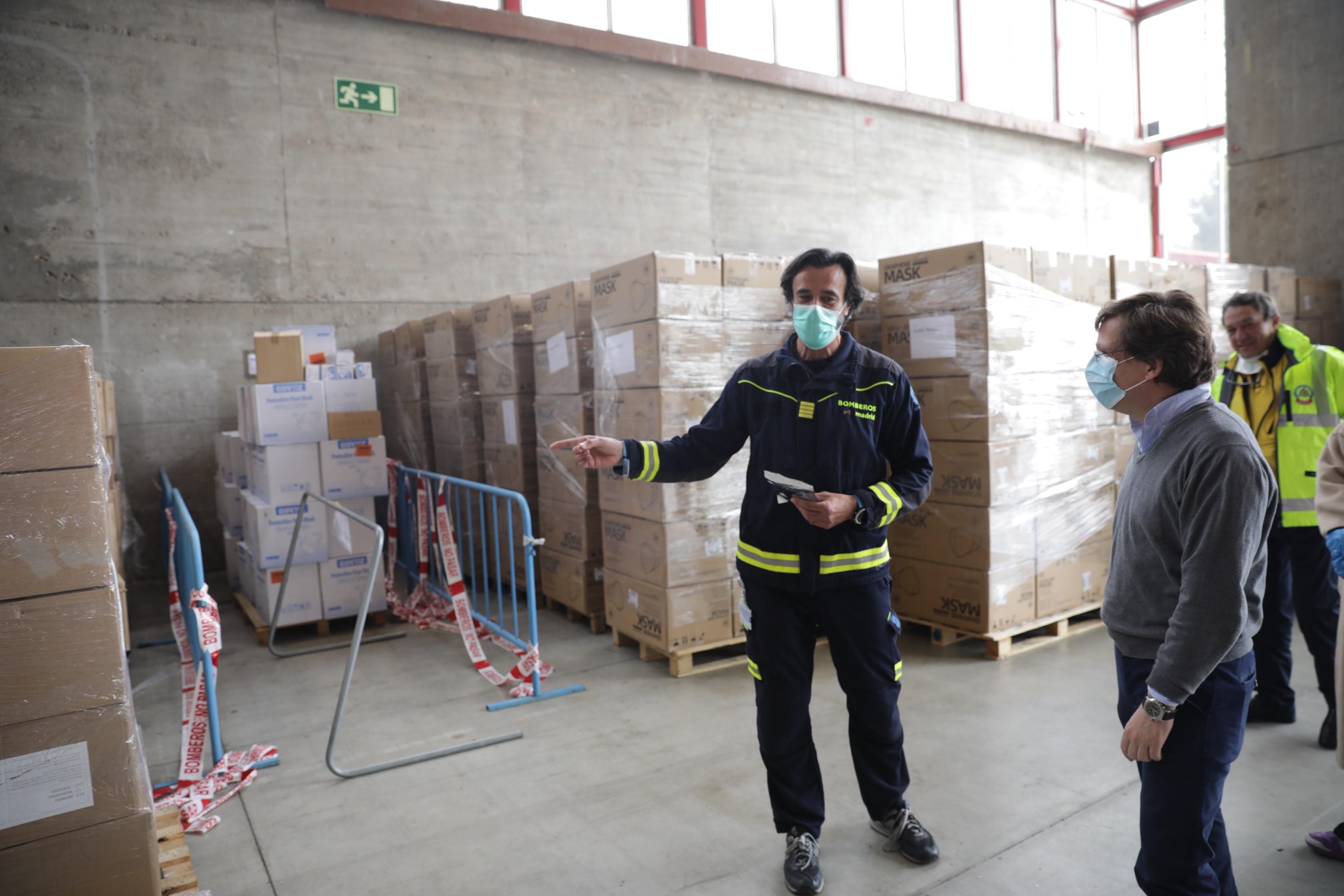 El alcalde de Madrid, José Luis Martínez-Almeida ha supervisado esta mañana un nuevo envío de material sanitario adquirido por el Ayuntamiento para hacer frente a la pandemia del coronavirus. La delegada del Área de Portavoz, Seguridad y Emergencias, Inmaculada Sanz, recepcionó anoche 1,25 millones de pares de guantes y 638.000 mascarillas modelo FFP2 en el almacén municipal provisional habilitado en la Casa de Campo, donde se guarda el material adquirido y donado durante el estado de alarma.