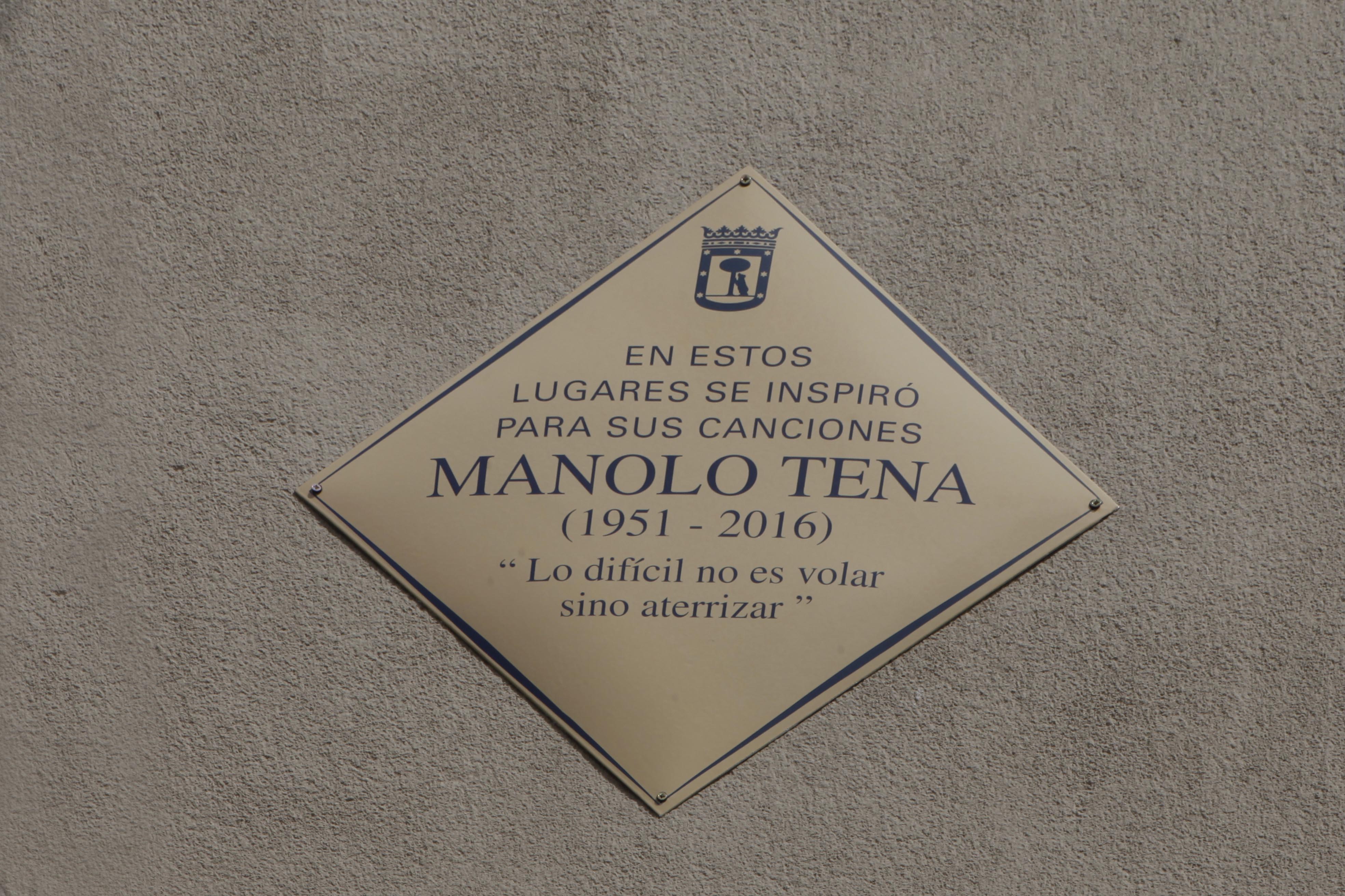 ‘En estos lugares se inspiró para inscribir sus canciones Manolo Tena (1951-2016’. Así reza la placa del Plan Memoria de Madrid que el Ayuntamiento ha instalado en la calle Argumosa, junto a la plaza de Lavapiés en recuerdo del cantante y compositor referente del rock madrileño. Asimismo recoge una conocida frase de Tena: “Lo difícil no es volar, sino aterrizar”, por expreso deseo de su familia.