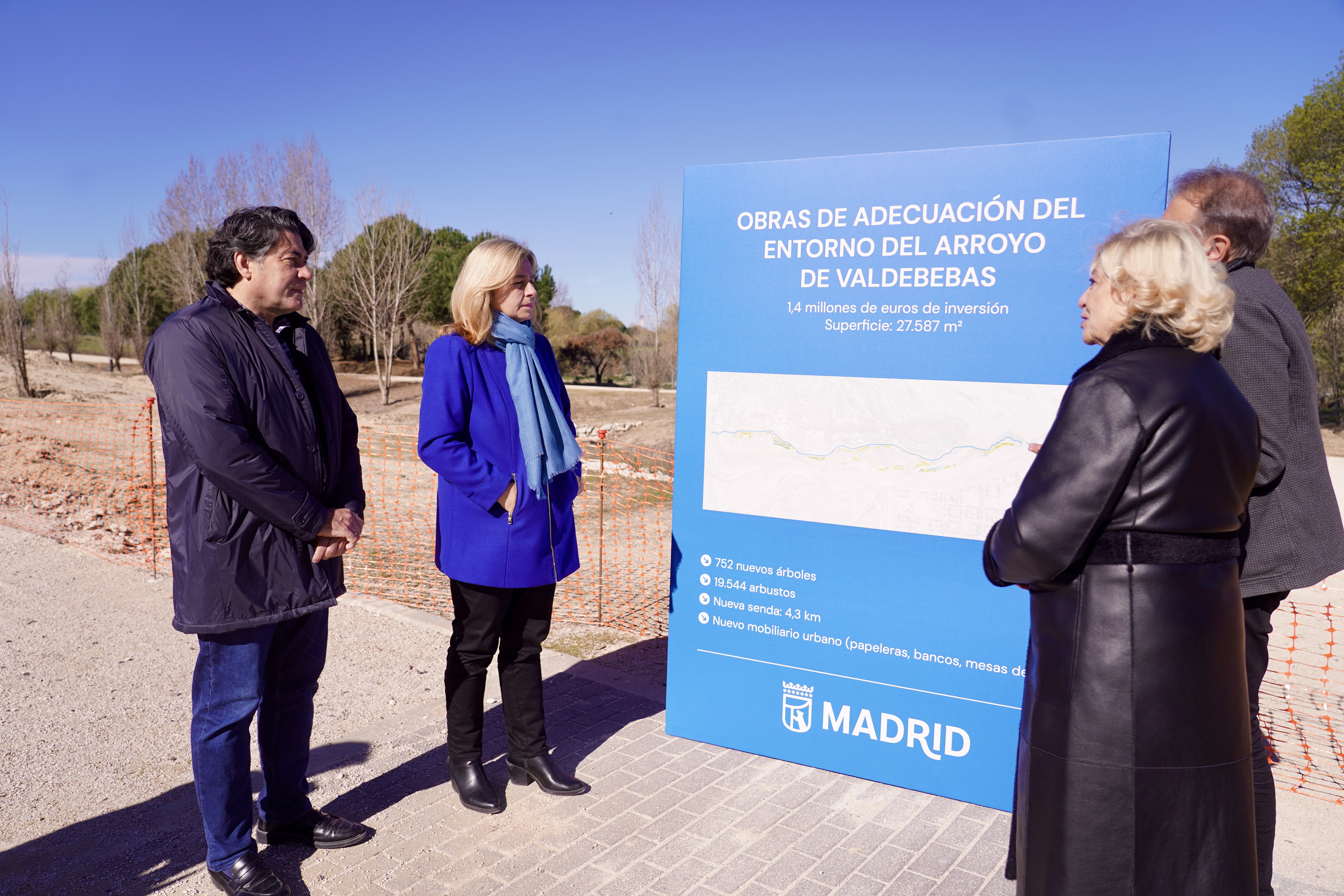 La vicealcaldesa de Madrid, Inma Sanz, acompañada de la delegada de Obras y Equipamientos, Paloma García Romero, y el concejal de Hortaleza, David Pérez, ha visitado esta mañana el entorno del arroyo de Valdebebas, que ha sido objeto de trabajos de acondicionamiento y reordenación recientemente finalizados para mejorar sus condiciones ambientales, paisajísticas y de seguridad y hacerlo más accesible para el paseante. La intervención, que ha supuesto una inversión municipal de 1,5 millones de euros, garantiza la capacidad hidráulica del cauce ante posibles crecidas, evitando que estas puedan afectar a las infraestructuras cercanas o en las parcelas próximas.