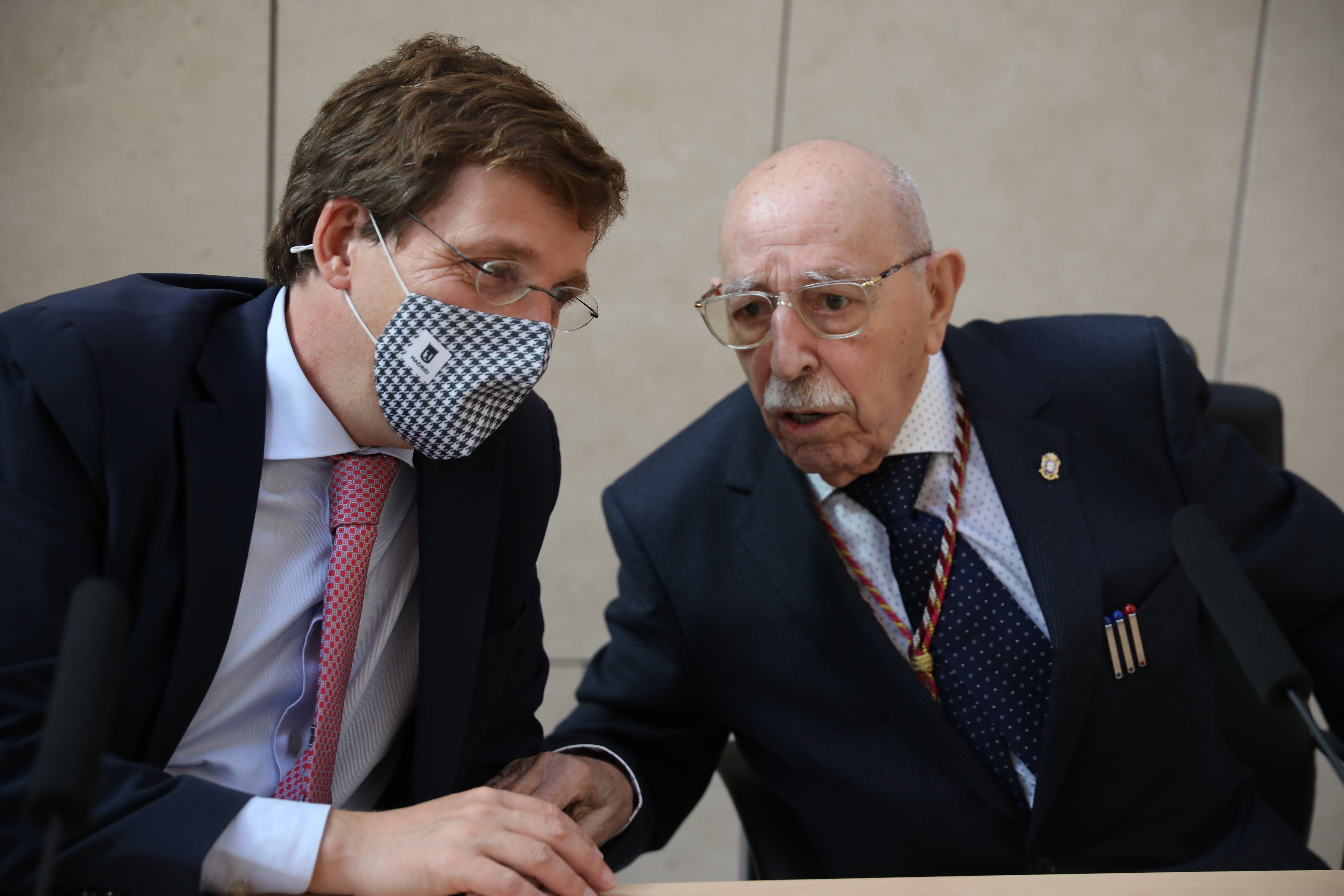 El alcalde de Madrid, José Luis Martínez-Almeida, ha calificado a Enrique de Aguinaga, decano de los cronistas de la Villa, como “el emblema de lo mejor de la ciudad de Madrid” en el homenaje que el Ayuntamiento le ha dedicado con motivo de la donación de parte de su legado bibliográfico y archivo personal al Museo de Historia de Madrid.