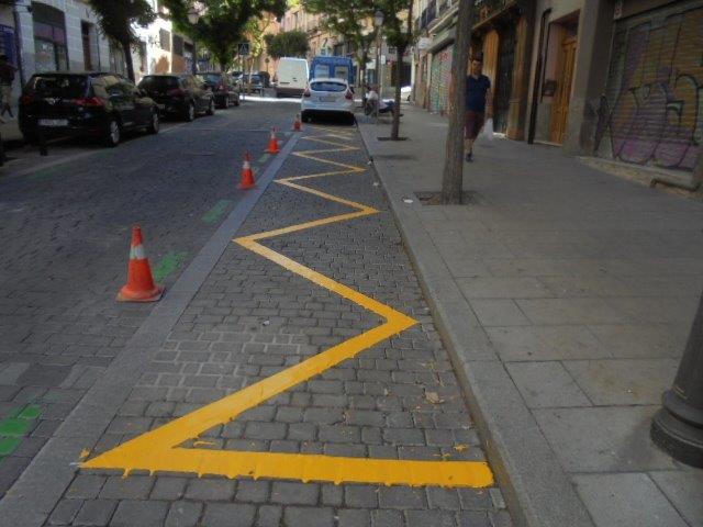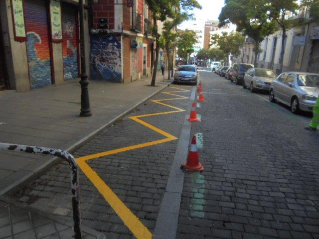 Hasta ahora solo existía señalización vertical, por lo que muchos conductores aparcaban en estas plazas por confusión, al no percatarse de que estaba prohibido el estacionamiento. Para evitar estos errores y las correspondientes multas que se imponen por aparcamiento en lugares indebidos, el Ayuntamiento está pintando señalización horizontal en la calzada mediante una línea amarilla en zigzag que delimita las plazas de carga y descarga.