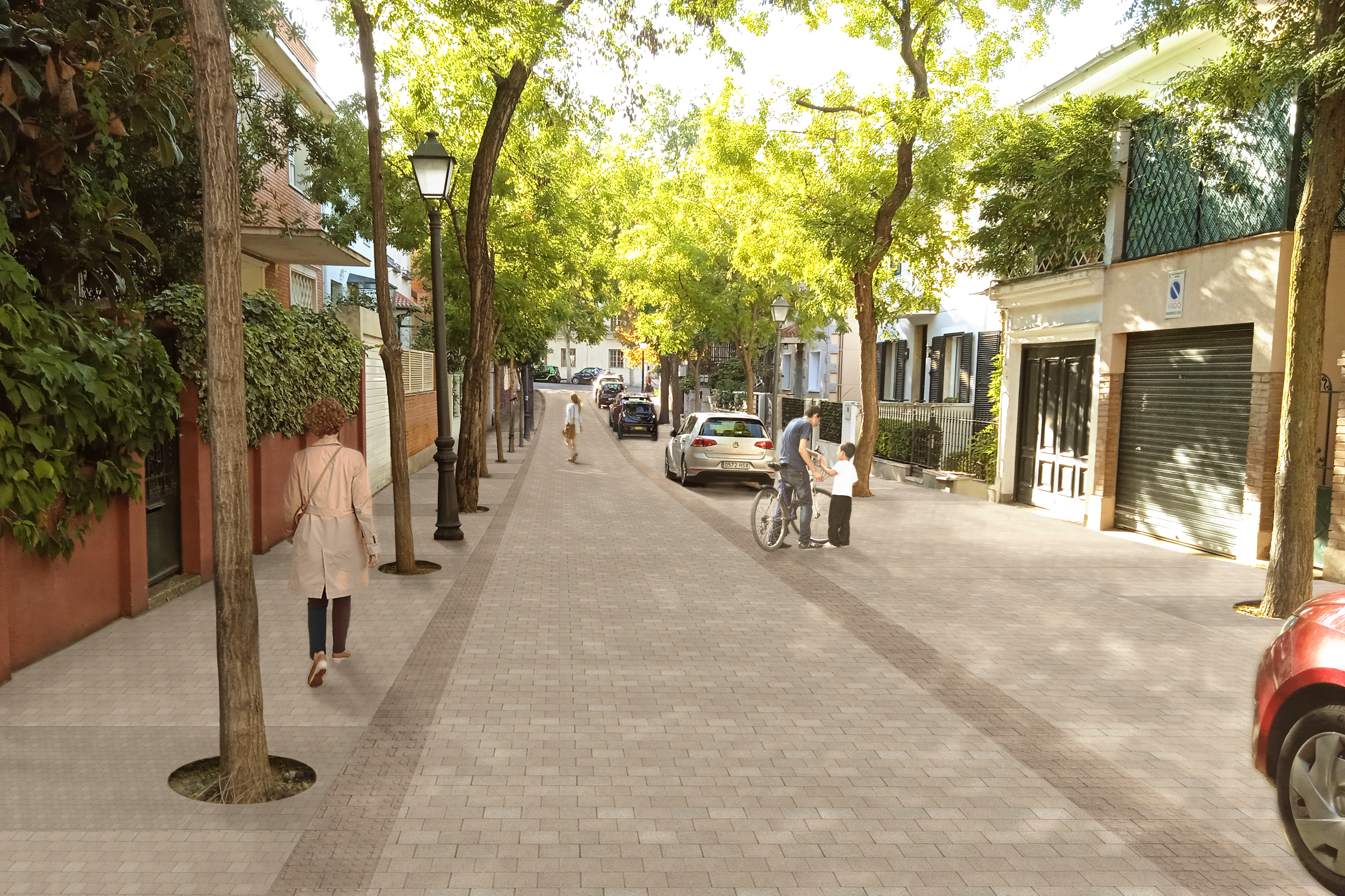 La intervención plantea la pavimentación homogénea de aceras, calzadas y aparcamientos con adoquín gris de varios tamaños, dando coherencia a la actuación y diferenciando la colonia de la ciudad que la rodea. Además, se respetará el arbolado existente y se pavimentarán los alcorques y aceras circundantes mediante adoquín de pequeño tamaño que permita adaptarse a las raíces. Asimismo, se soterrarán las redes de electricidad y telecomunicaciones para la mejora de la estética y la seguridad de ambas colonias.