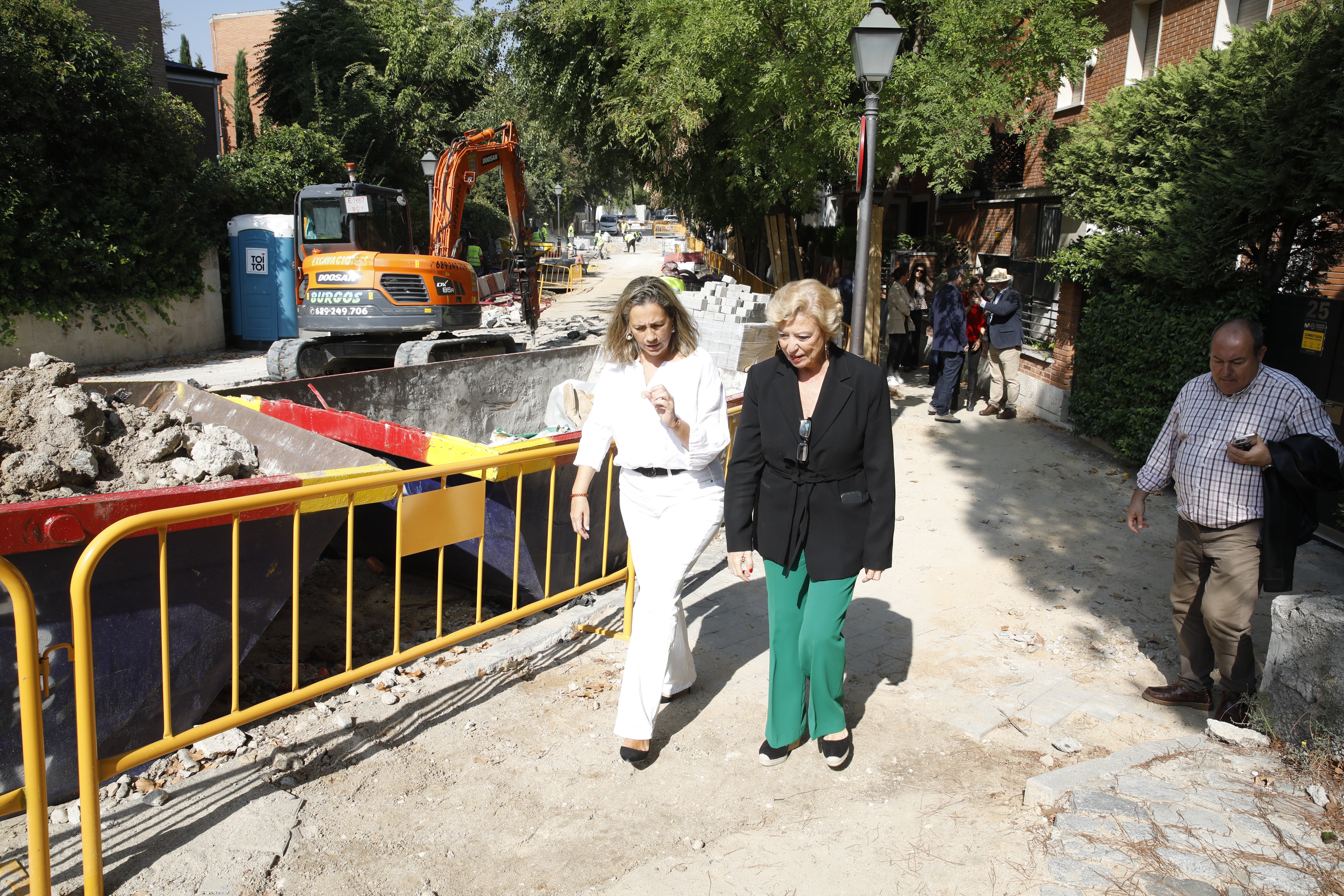 La delegada de Obras y Equipamientos, Paloma García Romero, acompañada de la concejala de Chamartín, Yolanda Estrada, en su visita a la primera fase de los trabajos de remodelación de las colonias históricas de Iturbe IV-El Viso y El Viso