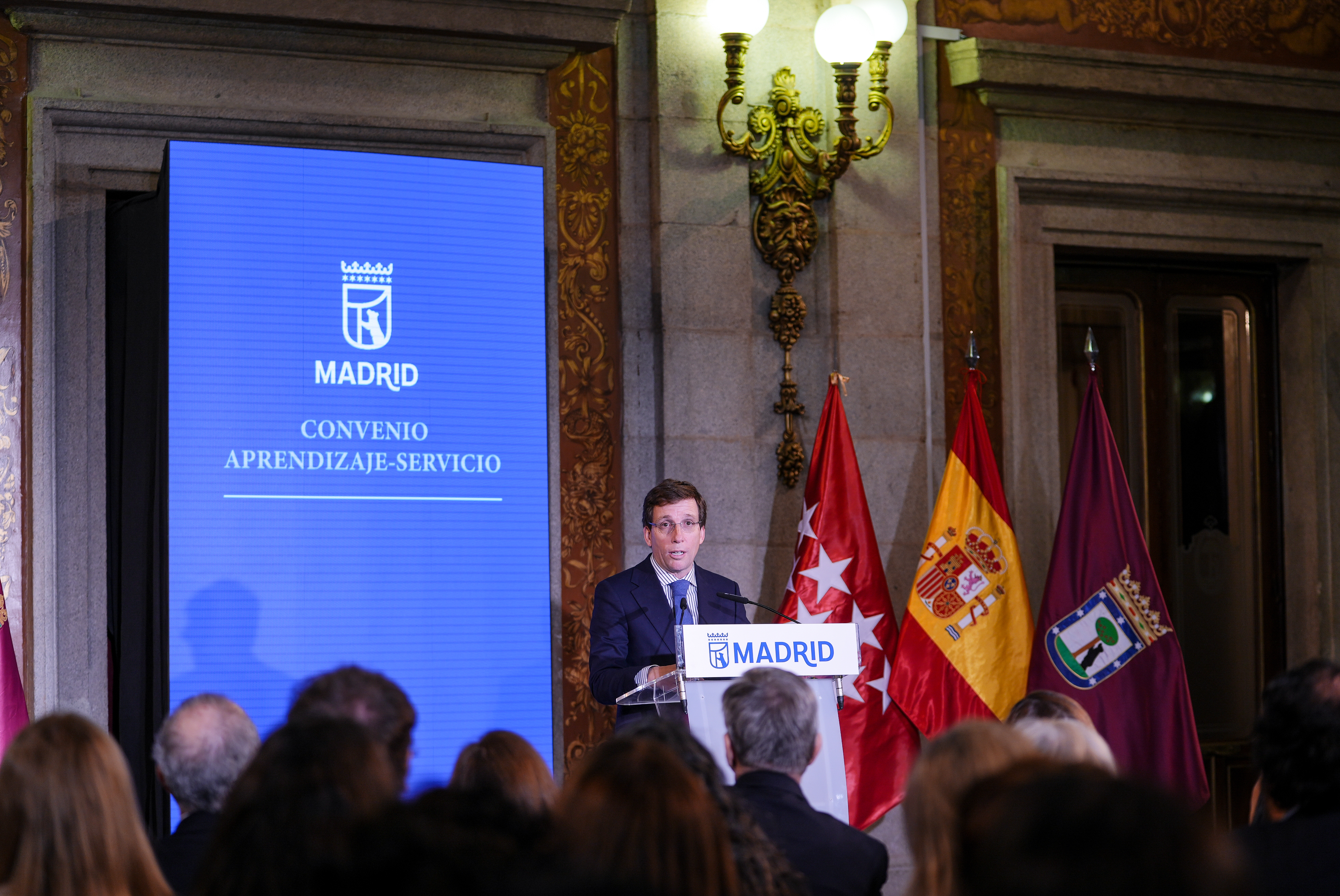 El alcalde de Madrid, José Luis Martínez‑Almeida, ha firmado hoy con los rectores de 12 universidades, ocho públicas y cuatro privadas, un convenio de colaboración para el desarrollo de proyectos de aprendizaje-servicio en la ciudad, una metodología educativa que combina la formación académica del alumnado con la prestación de un servicio útil a la comunidad. El Ayuntamiento ha suscrito este acuerdo con las universidades de Alcalá, Autónoma de Madrid, Carlos III de Madrid, CEU San Pablo, Complutense de Madrid, Internacional Menéndez Pelayo, Nacional de Educación a Distancia, Nebrija, Politécnica de Madrid, Pontificia Comillas, Rey Juan Carlos y Villanueva.