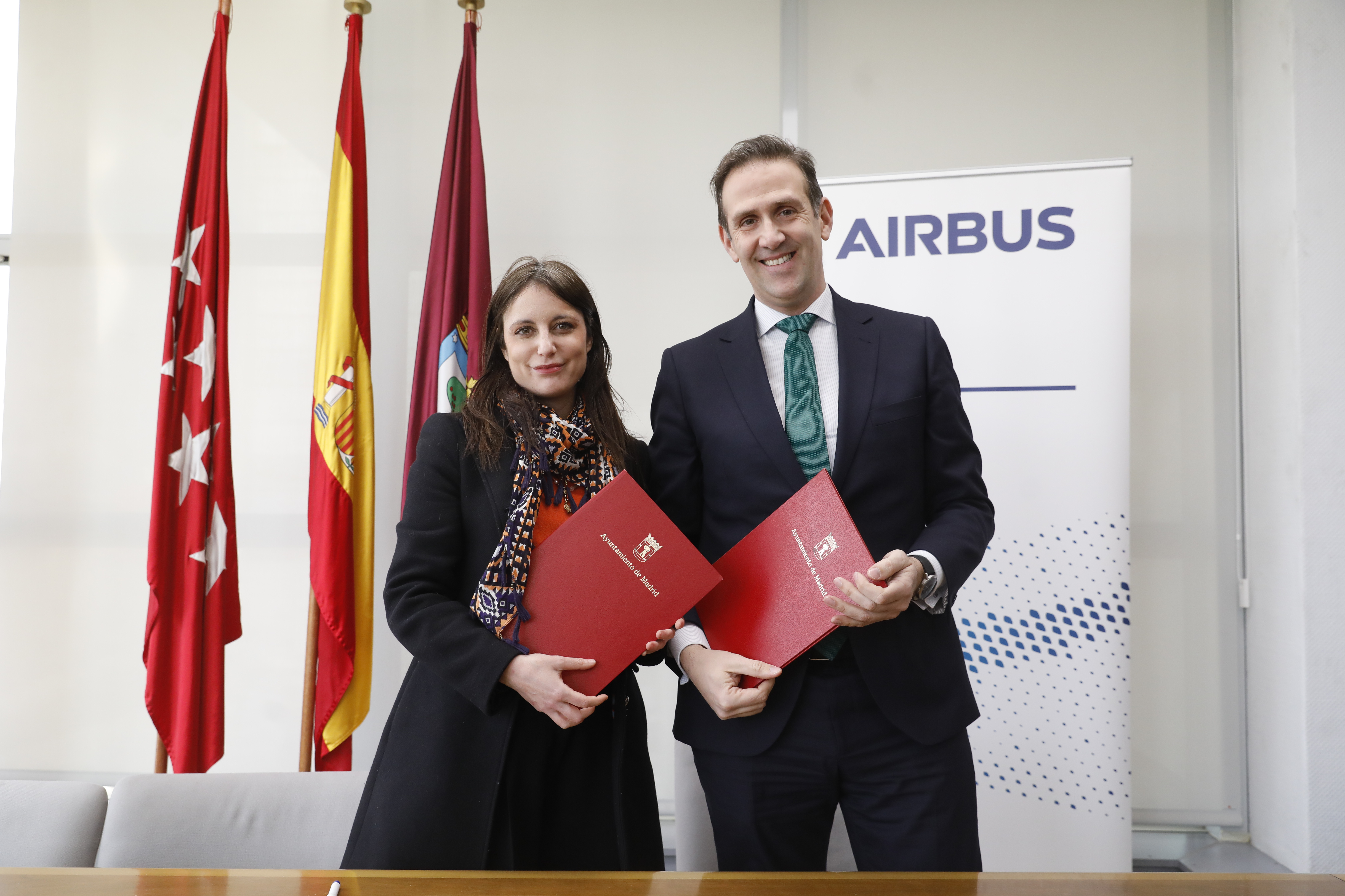- La delegada de Cultura, Turismo y Deporte, Andrea Levy, ha rubricado hoy el convenio con el coordinador de Airbus en España, Jorge Caro