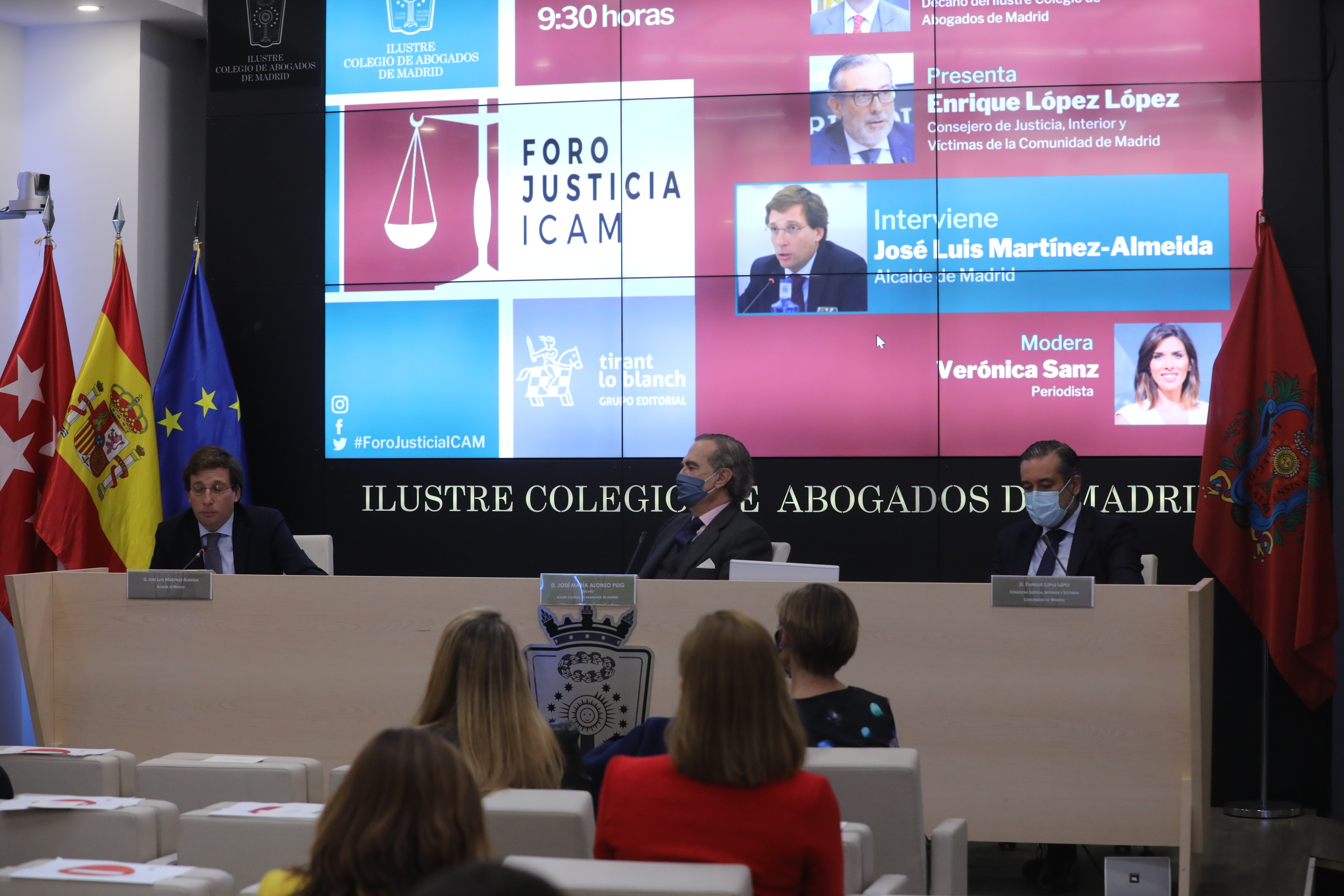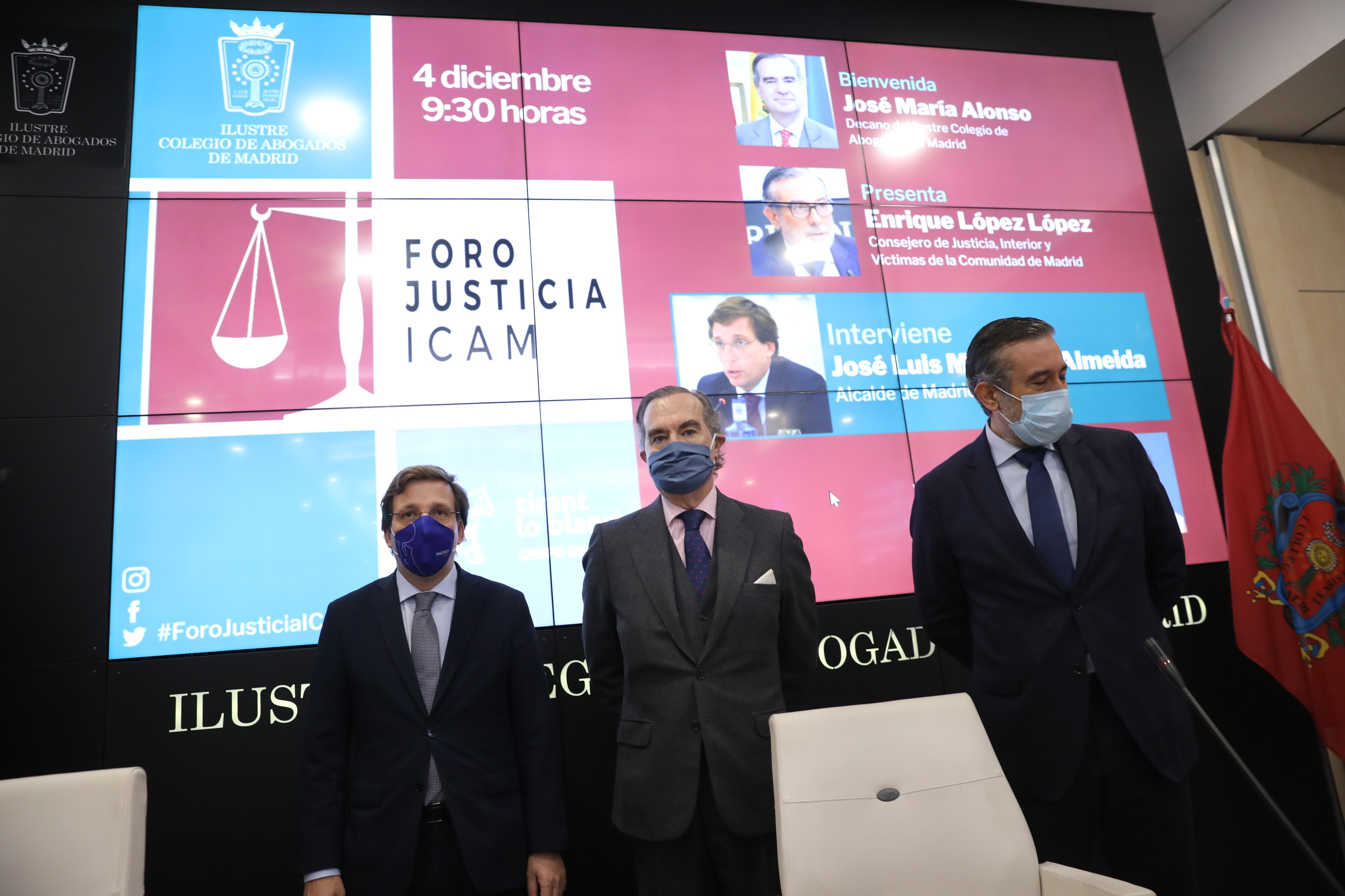 El alcalde de Madrid, José Luis Martínez-Almeida y el decano del Ilustre Colegio de Abogados de Madrid, José María Alonso, han firmado hoy, en el marco del Foro de Justicia organizado por el ICAM, un protocolo de actuación de cuatro años de duración que tiene como propósito extender y consolidar la cooperación entre ambas instituciones en favor del interés general de la ciudadanía.