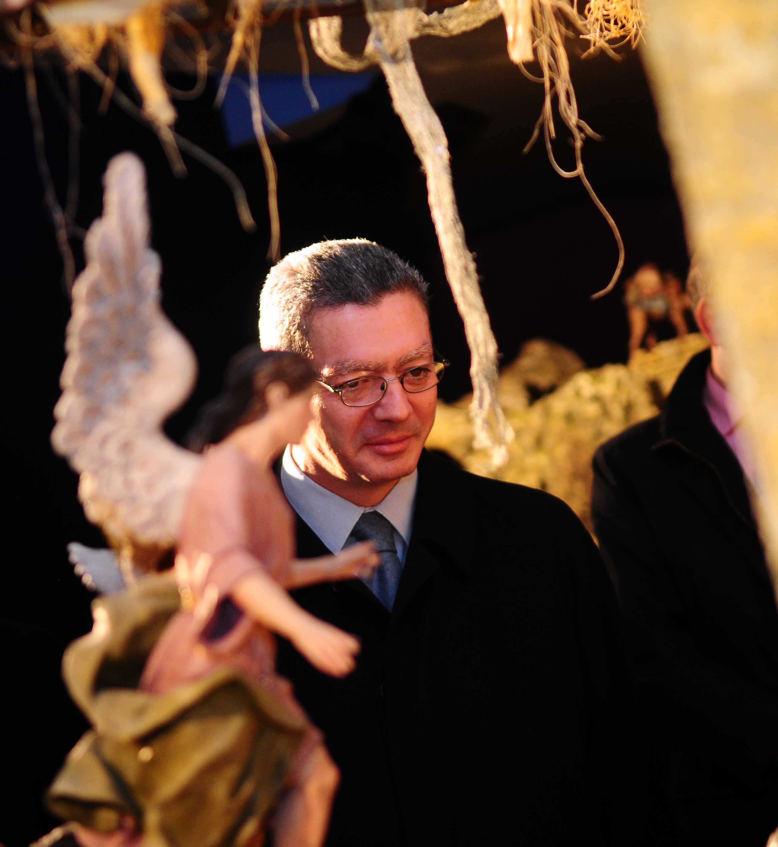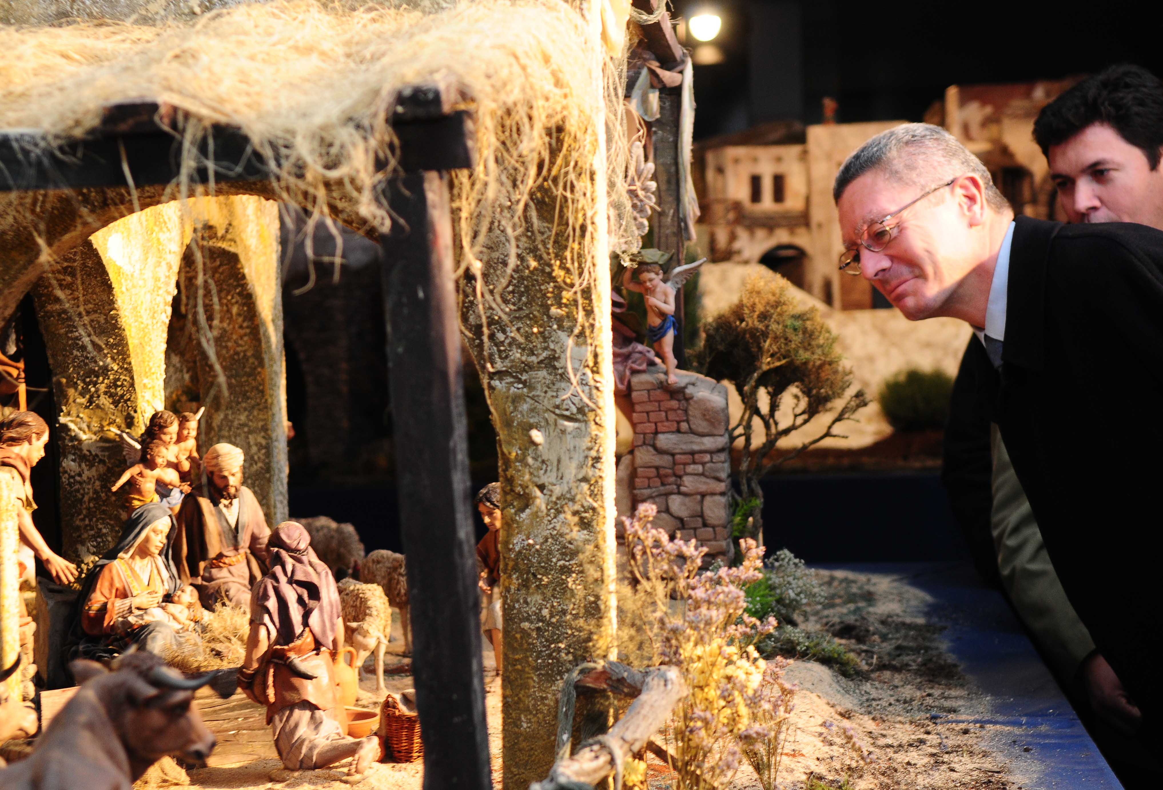 El alcalde de la Ciudad Madrid, Alberto Ruiz-Gallardón, en la inauguración del belén situado en el Centro de Información Turística de Colón.