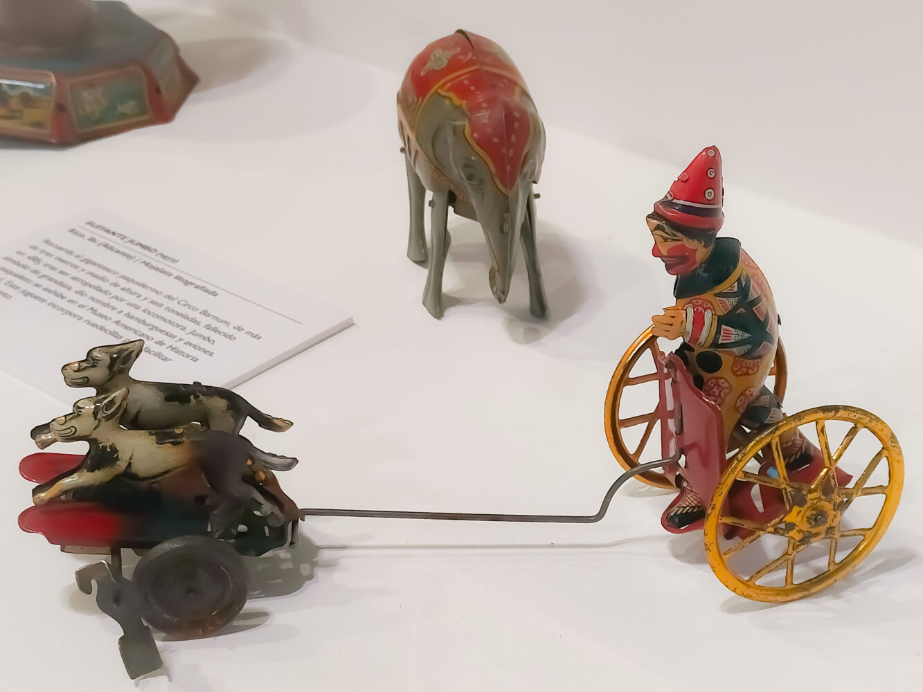 Otra sección destacada de la exposición es la dedicada a los dioramas. Estas construcciones, destinadas a los más pequeños, permitieron conocer el mundo real y, de forma especial, los recintos sociales a través del entretenimiento y la diversión. Por ejemplo, la muestra recoge diferentes carruseles, cuadras con caballos, carruajes o aulas escolares. También se hace un recorrido por la evolución de la moda infantil a través de muñecas icónicas como Mariquita Pérez, Cayetana y Gisela, que reflejan los estilos más representativos del siglo XX. Además, la exposición recoge figuras de distintos oficios y personajes emblemáticos, desde exploradores y mecánicos hasta artistas de circo como el famoso payaso Ramper.