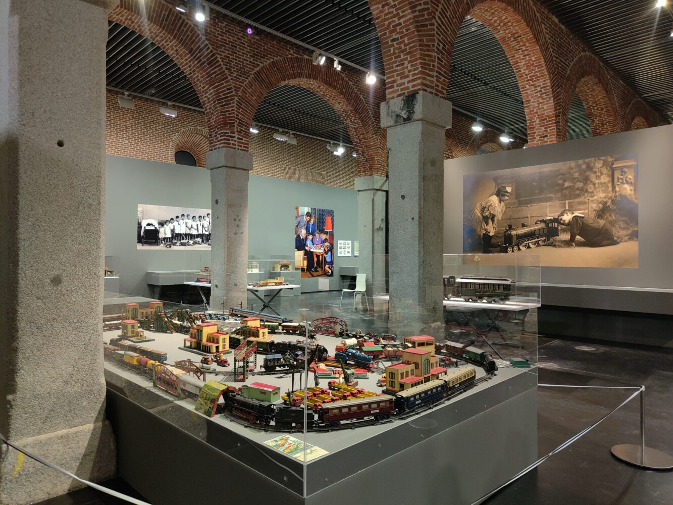 La exposición se articula en siete apartados temáticos que comprenden desde los clásicos trenes y muñecas hasta los juegos de mesa y los juguetes de madera de la posguerra. Se rinde homenaje a los fabricantes locales de Madrid y a los juguetes inspirados en la capital, incluyendo reproducciones de vehículos emblemáticos como el Seat 600, la locomotora MZA de RENFE y los tradicionales autobuses de dos pisos, siempre poniendo en contexto cada pieza a través de fotografías y referencias históricas.