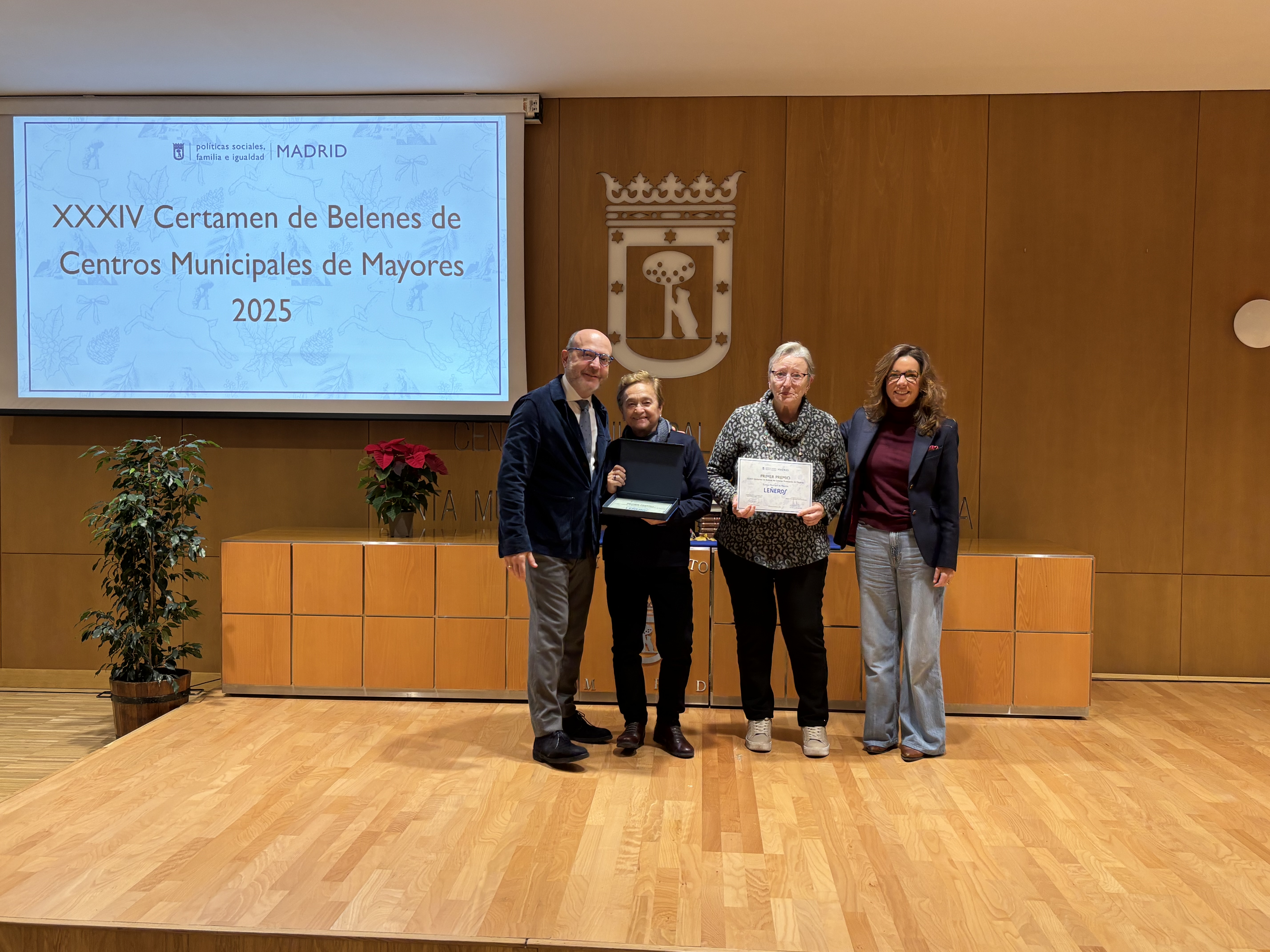 El Certamen de Belenes de los centros municipales de mayores ha celebrado en 2025 su XXXIV edición. Tras la deliberación del jurado, el delegado de Políticas Sociales, Familia e Igualdad, José Fernández, ha entregado hoy los galardones a las mejores propuestas en un acto celebrado en el Centro Cultural Buenavista, en el que ha estado acompañado por los concejales de Salamanca, Tetuán, Vicálvaro, Puente de Vallecas, Barajas y Moncloa-Aravaca.