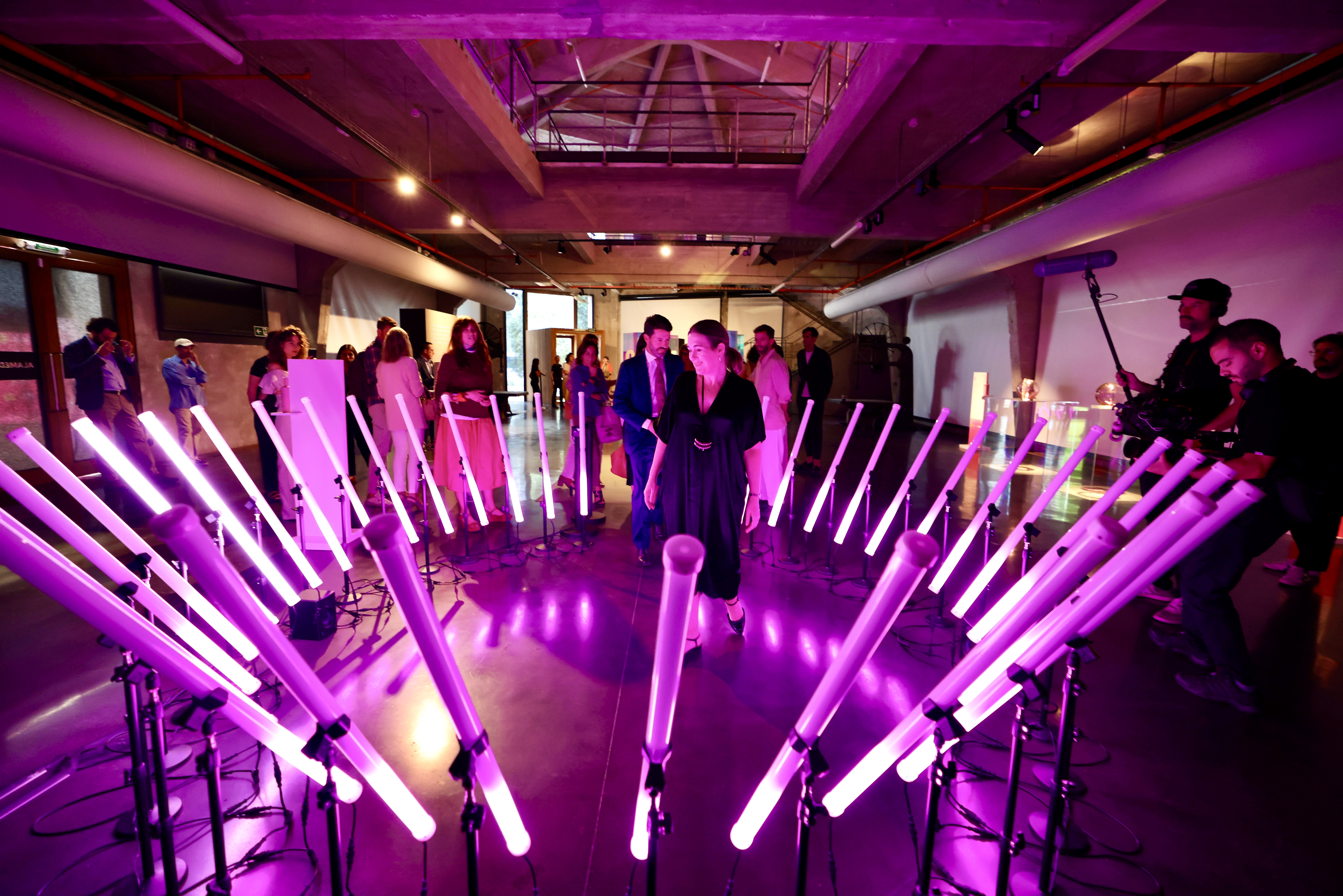El estudio creativo Gracias Grecia, de María Fabuel, Elisenda Muns y Pedro Lipovetzky, proyecta la fuerza con una instalación interactiva luminosa circular que intensifica su luz cuando varias personas confluyen dentro de este espacio. Por su parte, Raquel Buj, diseñadora de moda y arquitecta, transmite la ansiedad con una forma corporal hecha con biomateriales orgánicos y reciclando elementos naturales.