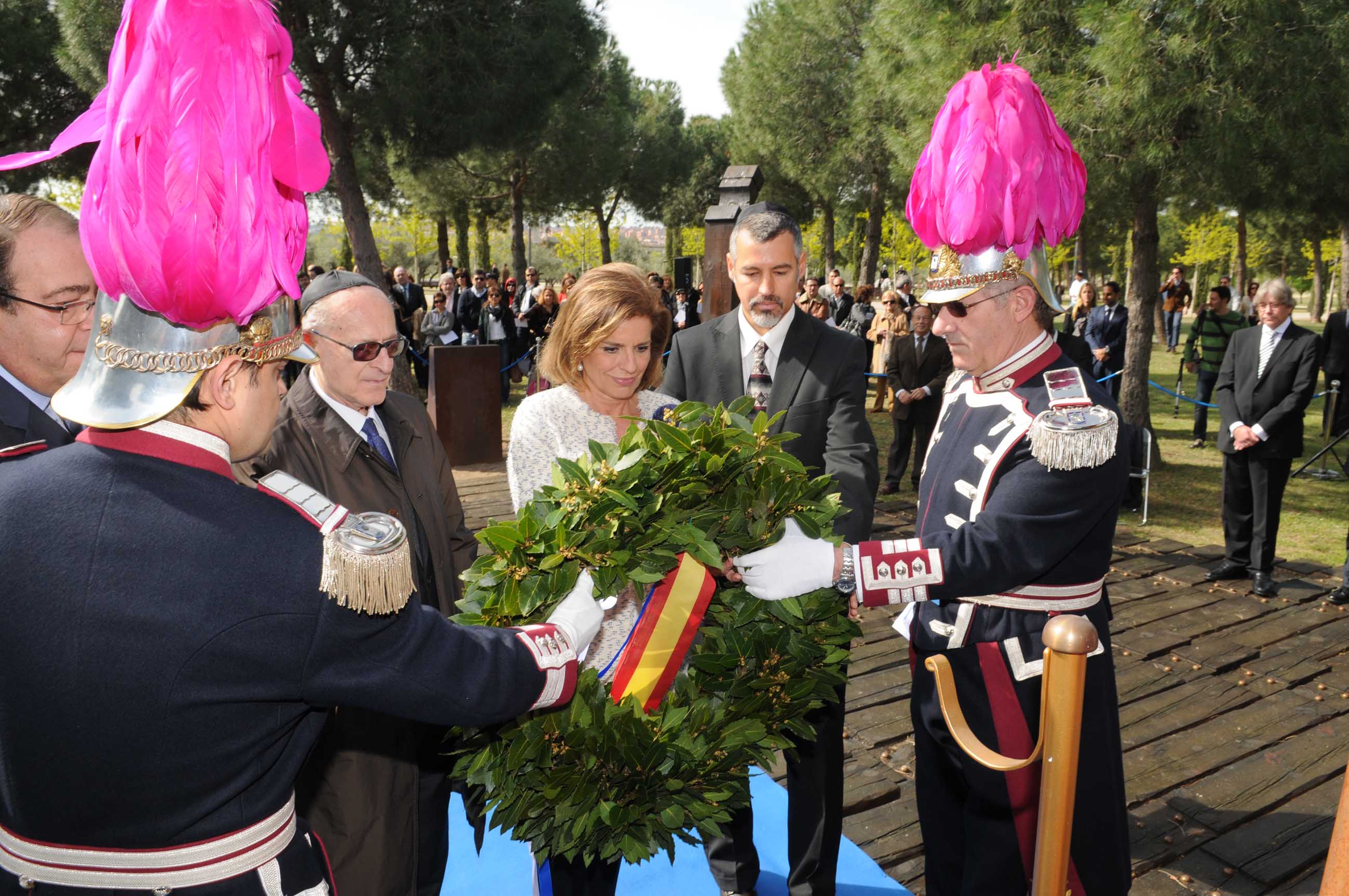 En Jardín de las Tres Culturas, en el Parque Juan Carlos, lugar que simboliza la convivencia entre judíos, musulmanes y cristianos en España, se ha recordado un año más el Holocausto del pueblo judío. Presidido por la alcaldesa, Ana Botella, el acto ha contado con la presencia, entre otros, de Moisés Bendahan, Gran Rabino de España; Oren Bar-El, ministro consejero de la Embajada israelí; Isaac Querub, presidente de la Federación de Comunidades Judías de España; David Hatchwel, presidente de la Comunidad Judía de Madrid; el rabino Andrew Baker, representante personal de la Presidencia de la OSCE para la lucha contra el antisemitismo, y Dolores Navarro, delegada de Familia y Asuntos Sociales.