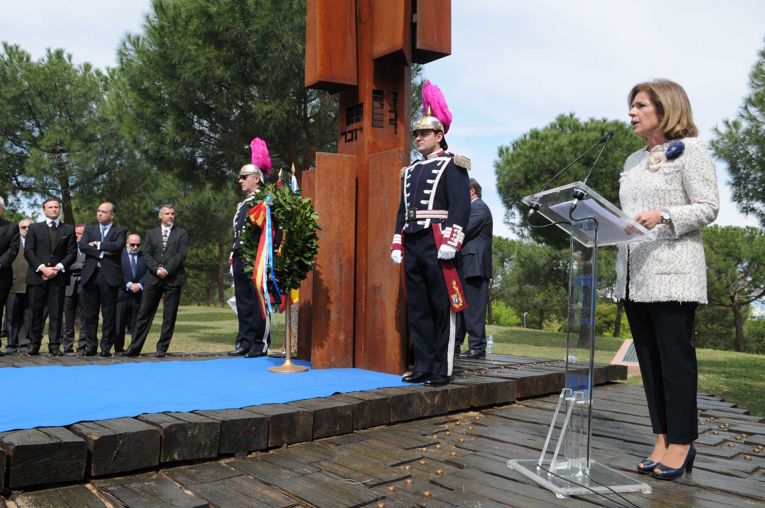La alcaldesa de Madrid, Ana Botella, presidió esta mañana el acto del Día del Recuerdo del Holocausto en homenaje a sus víctimas que tuvo lugar en el Parque Juan Carlos I de la capital. Al citado acto asistieron el embajador de Israel en España y el presidente de la Comunidad Judía en Madrid. En las imágenes, varios momentos del acto.