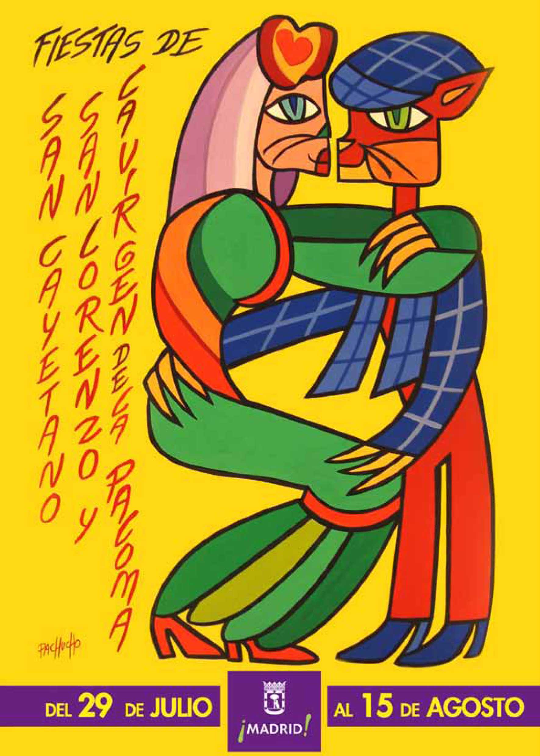 Los balcones adornados con mantones y claveles, farolillos en las calles, música de chotis, tango o lo que se tercie, manolos y manolas, chulapos y chulapas, limoná para rebajar los calores de la tarde-noche de agosto. Estas escenas se pueden ver durante todo el mes de agosto en las calles del distrito de Centro: primero con San Cayetano, hoy se despide San Lorenzo para dar paso mañana a la Paloma. Don Hilarión, acompañado por la Casta y la Susana, paseará durante estos días por las calles más típicas del centro de la capital.