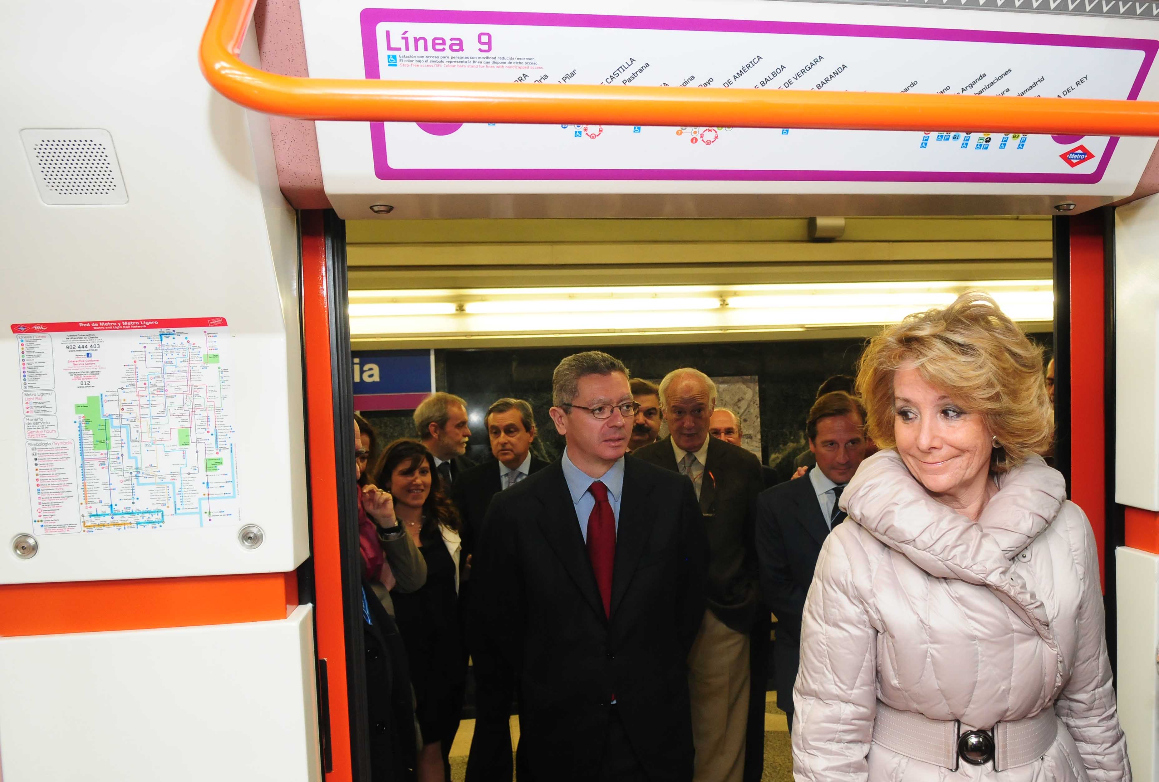 La presidenta de la Comunidad de Madrid, Esperanza Aguirre, y el alcalde de la Ciudad de Madrid, Alberto Ruiz-Gallardón, durante la inauguración de la estación de Mirasierra, en la línea 9 del metro madrileño.