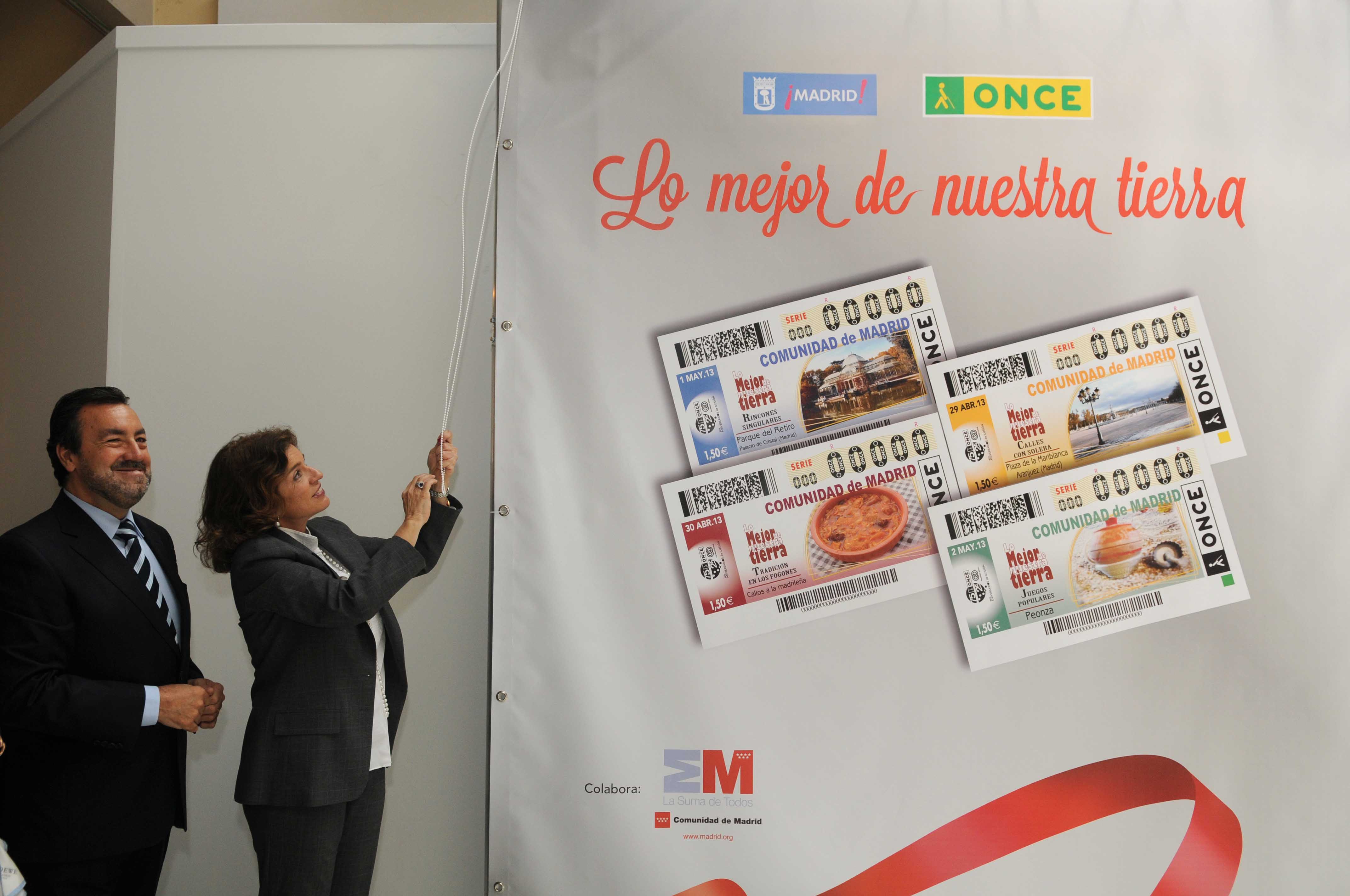 La ONCE promociona la comunidad madrileña estampando populares imágenes de Madrid en cuatro de sus cupones, que a partir de hoy lunes salen a la venta en toda España. En la presentación de esta iniciativa, la alcaldesa, Ana Botella, ha anunciado que el próximo 15 de Mayo el Ayuntamiento entregará la Medalla de Oro de la Ciudad a la Fundación ONCE por "su ejemplar trayectoria, por constituir un símbolo de solidaridad, por lograr la integración a través del deporte y por fomentar la igualdad de oportunidades".