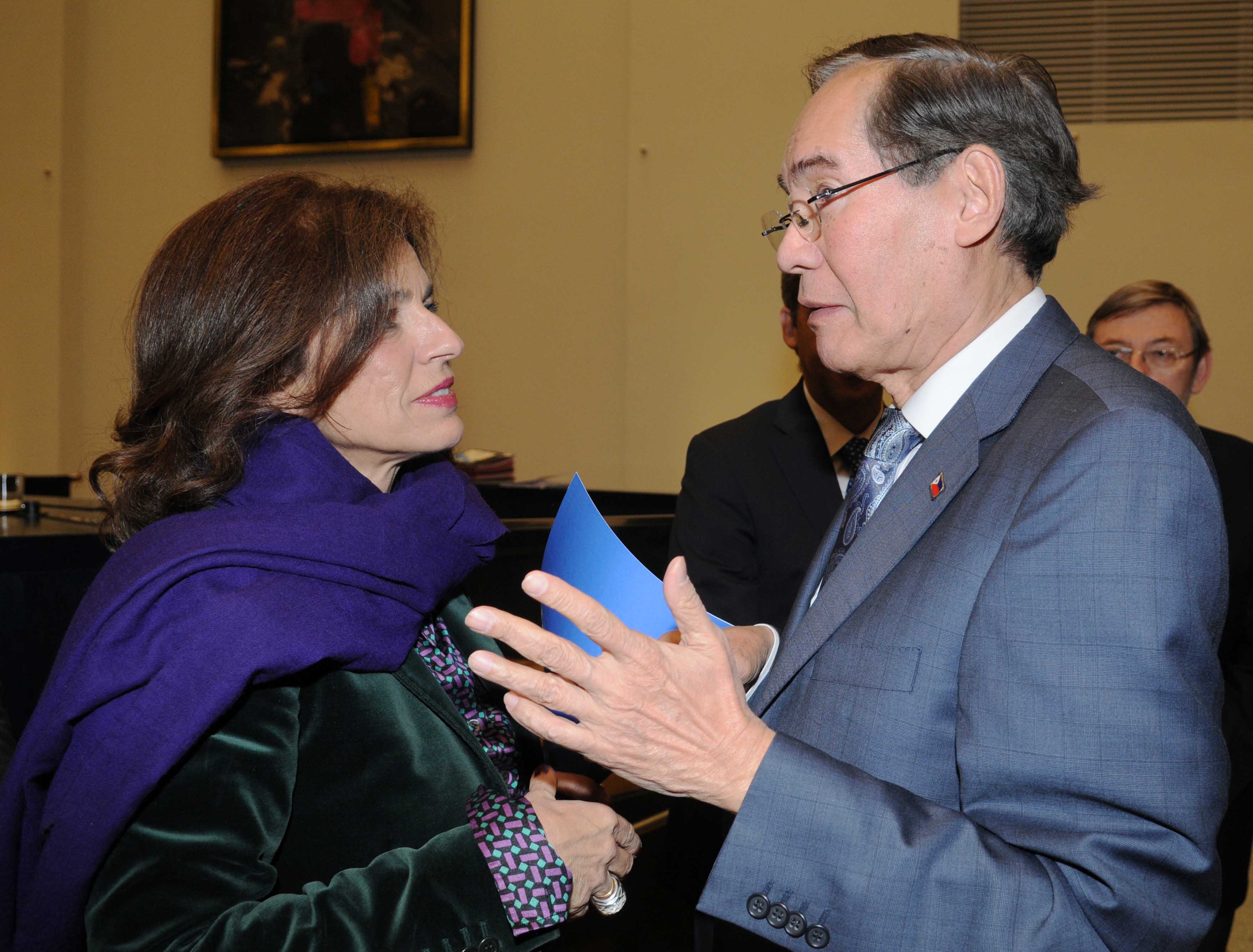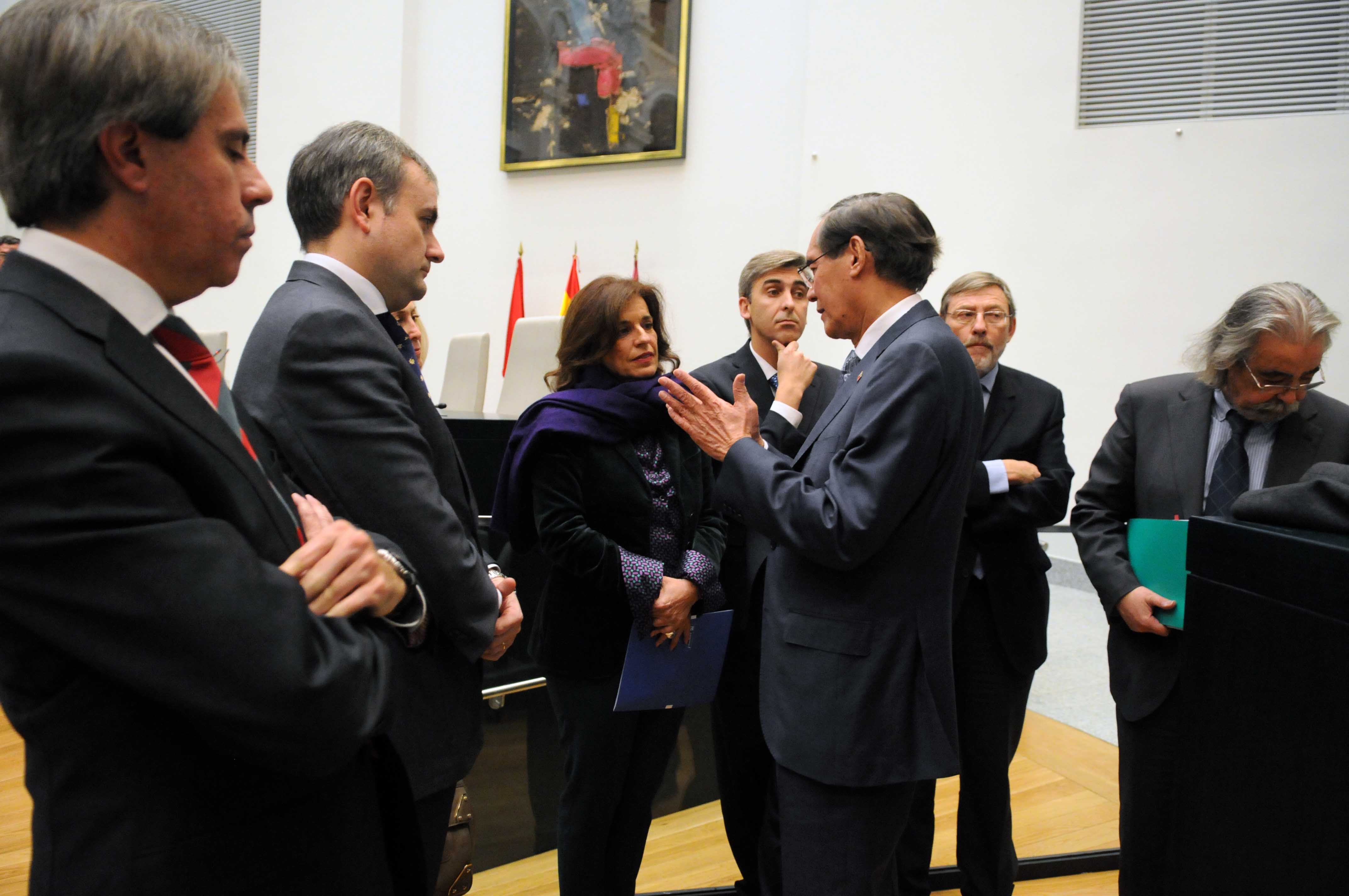 El embajador de Filipinas junto con la alcaldesa y los portavoces municipales durante el pleno de hoy.