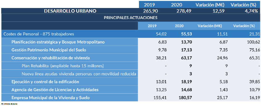 El Área de Gobierno de Desarrollo Urbano tiene un presupuesto de 278,5 millones, para diseñar un nuevo modelo de ciudad y, sobre todo, dar prioridad a una política que facilite a los ciudadanos el acceso a la vivienda a un precio asequible.