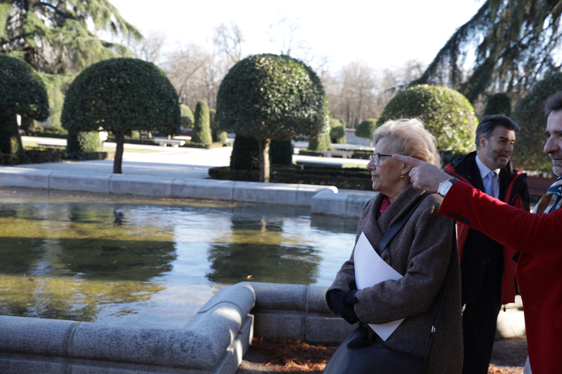 Coincidiendo con la celebración de los 150 años del Retiro como parque de Madrid, la alcaldesa de Madrid, Manuela Carmena, se ha reunido hoy lunes 19 de marzo, con la recién constituida Asociación de Amigos de los Jardines del Buen Retiro y ha realizado una visita por algunos de los lugares más emblemáticos del parque. Carmena ha elogiado la labor que hacen asociaciones como esta y ha recalcado que “es necesario que la sociedad civil se enamore de Madrid, la defienda, la cuide y la conserve”. Además, la alcaldesa ha puesto en valor el trabajo que realizan estos colectivos, y el apoyo que el Ayuntamiento les está brindando: “Estamos trabajando con todas las fundaciones que de alguna manera se dedican a algún aspecto de la ciudad de Madrid –ha desvelado- y esta asociación de Amigos del Parque del Retiro es muy emblemática y muy importante”, subrayó.