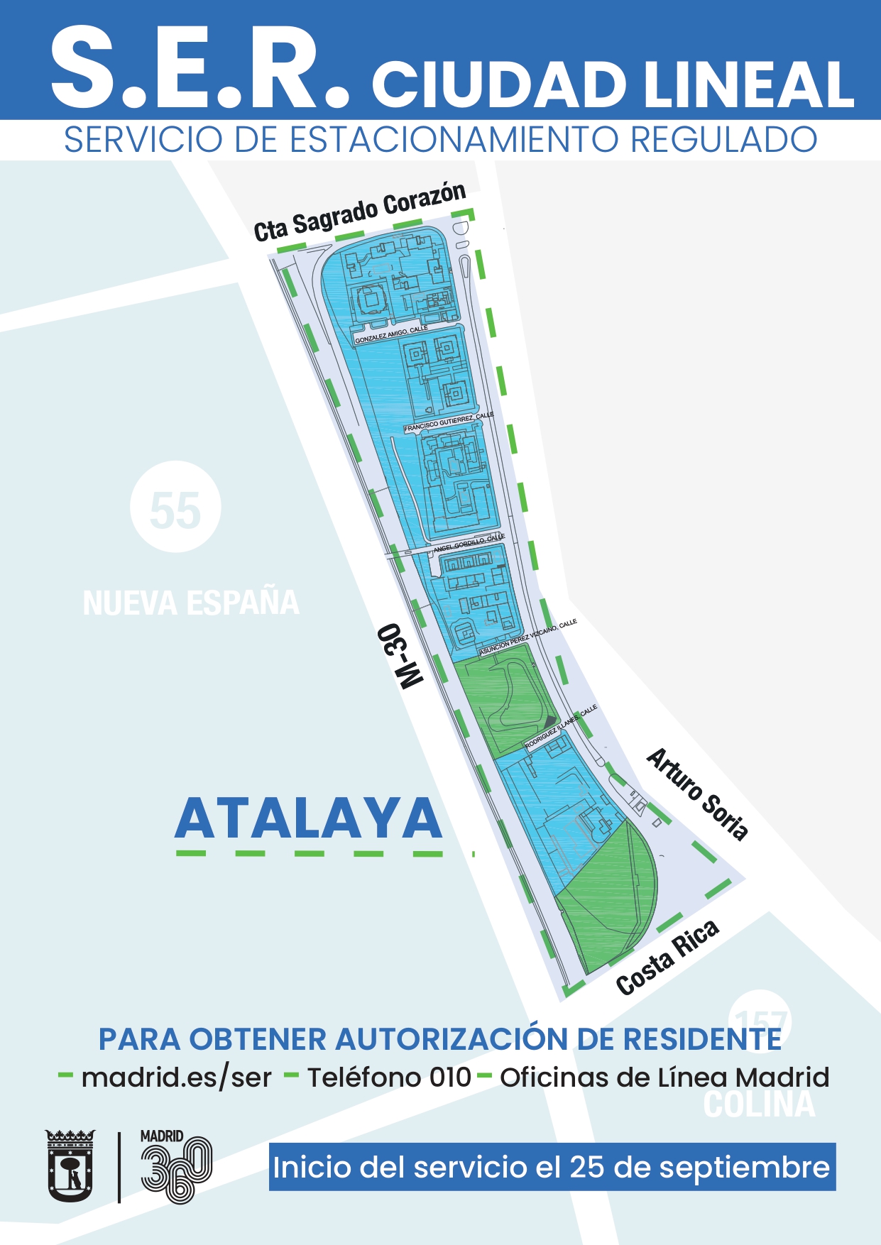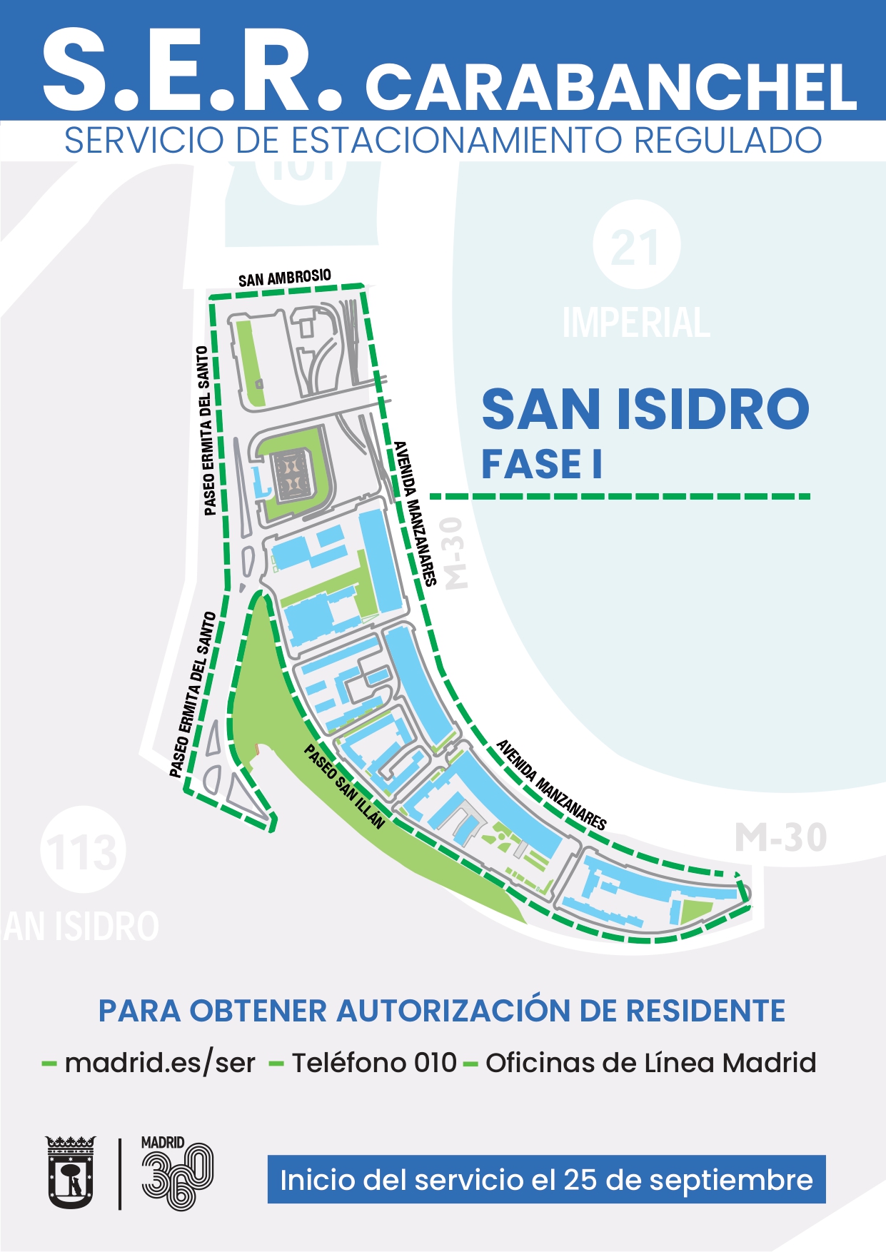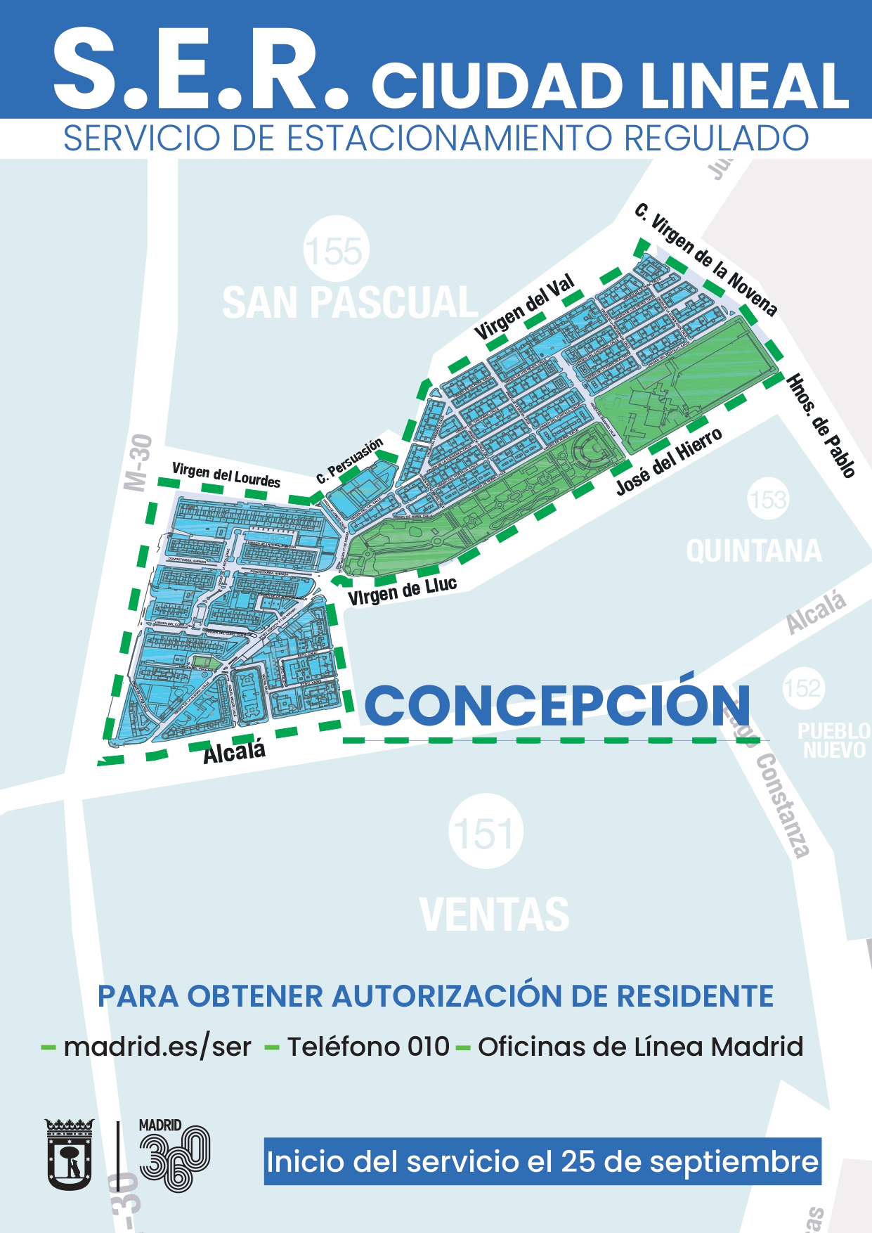 A partir del 25 de septiembre, el Servicio de Estacionamiento Regulado (SER) se pondrá en funcionamiento en nuevas zonas del distrito de Ciudad Lineal, los barrios de Pueblo Nuevo, Concepción, San Juan Bautista y Atalaya, así como en el barrio de San Isidro del distrito de Carabanchel. El Área de Urbanismo, Medio Ambiente y Movilidad regulará en estos barrios un total de 6.604 plazas de aparcamiento adicionales: 1.150 en el barrio de Pueblo Nuevo, 2.475 en Concepción, 2.374 en San Juan Bautista, 140 en Atalaya y 465 en el barrio de San Isidro.