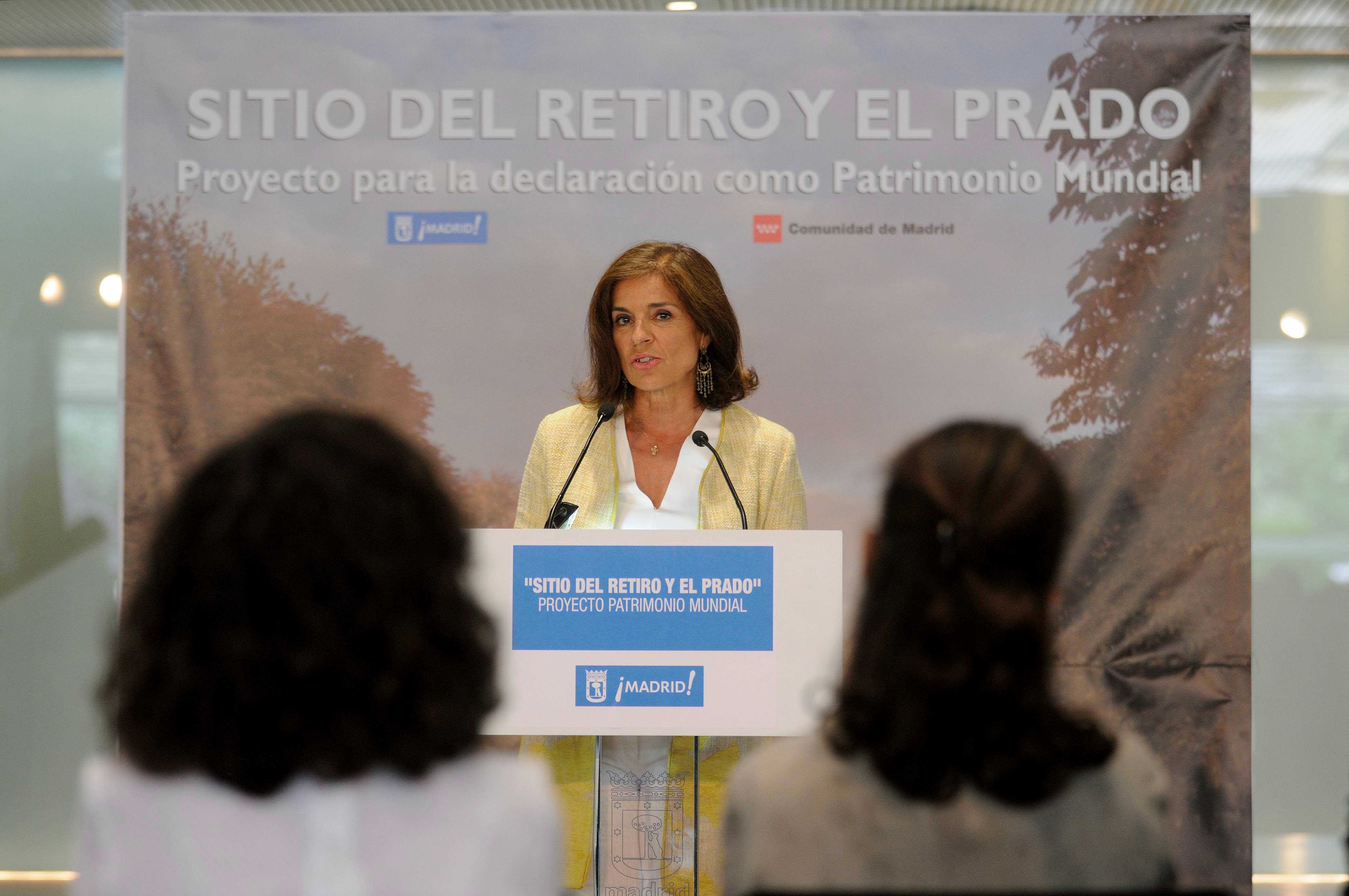 La alcaldesa Ana Botella presentó hoy la candidatura 'Sitio del Retiro y el Prado en Madrid' para ser declarado Patrimonio Mundial de la UNESCO.