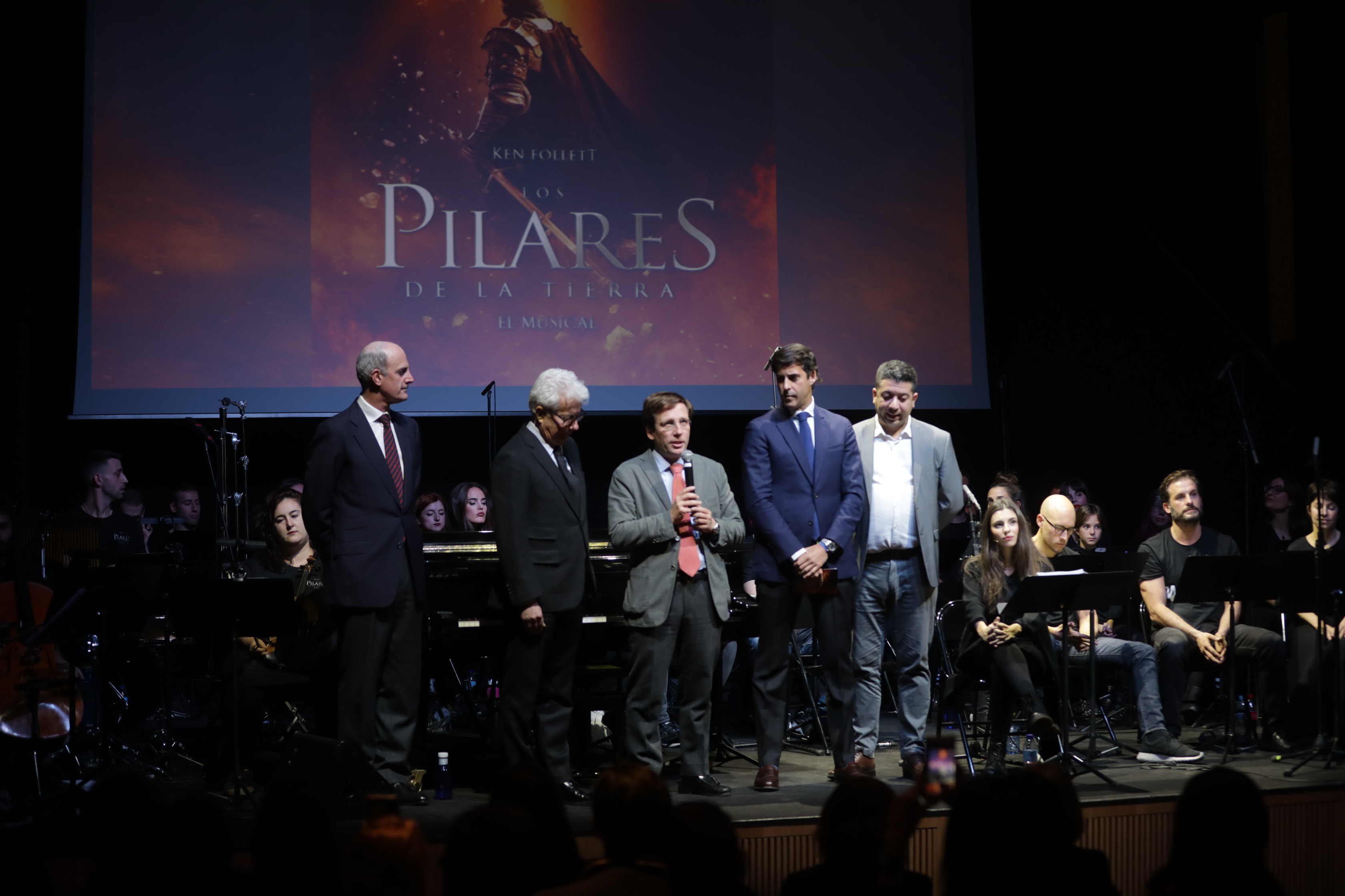El alcalde de Madrid ha acompañado este lunes al escritor británico Ken Follett en la lectura del libreto del musical Los Pilares de la Tierra, en el Centro Cultural Conde Duque. Todo el elenco, más un grupo de músicos, han leído y cantado parte del libreto en un acto abierto al público. El musical, que se estrenará en Madrid en unos meses, está siendo producido íntegramente en la ciudad, que con este tipo de acciones y su variedad de cartelera, ya es un referente europeo en los espectáculos musicales. /