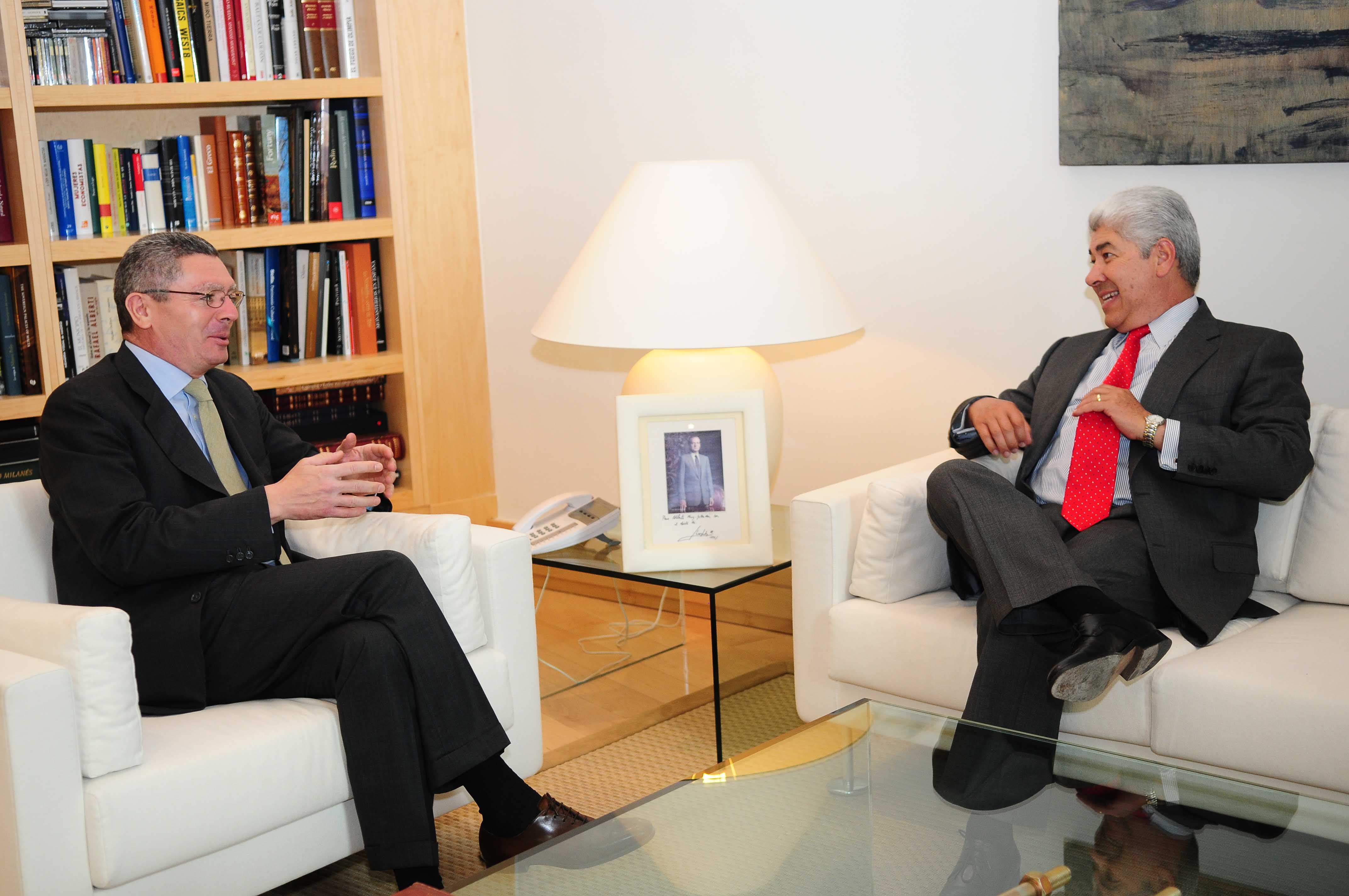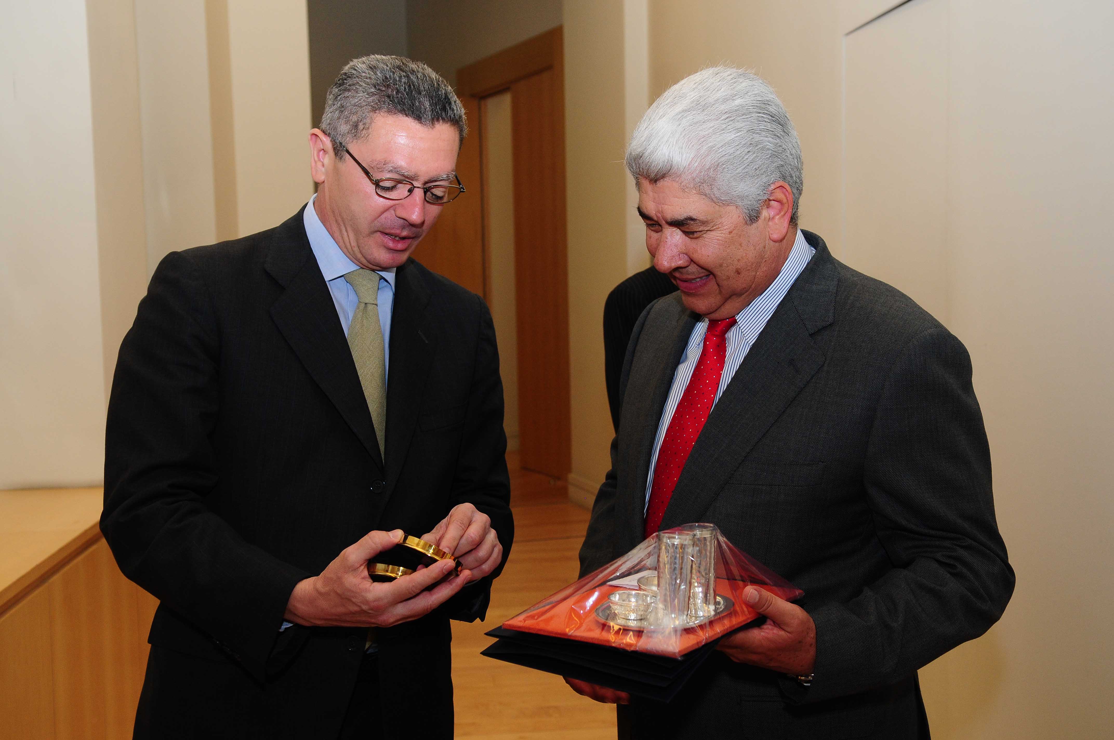 El alcalde de Madrid, Alberto Ruiz-Gallardón, ha recibido hoy en el Palacio de Cibeles al presidente de la Cámara de Diputados de México, Francisco Javier Ramírez, que se encuentra de visita en nuestra ciudad.