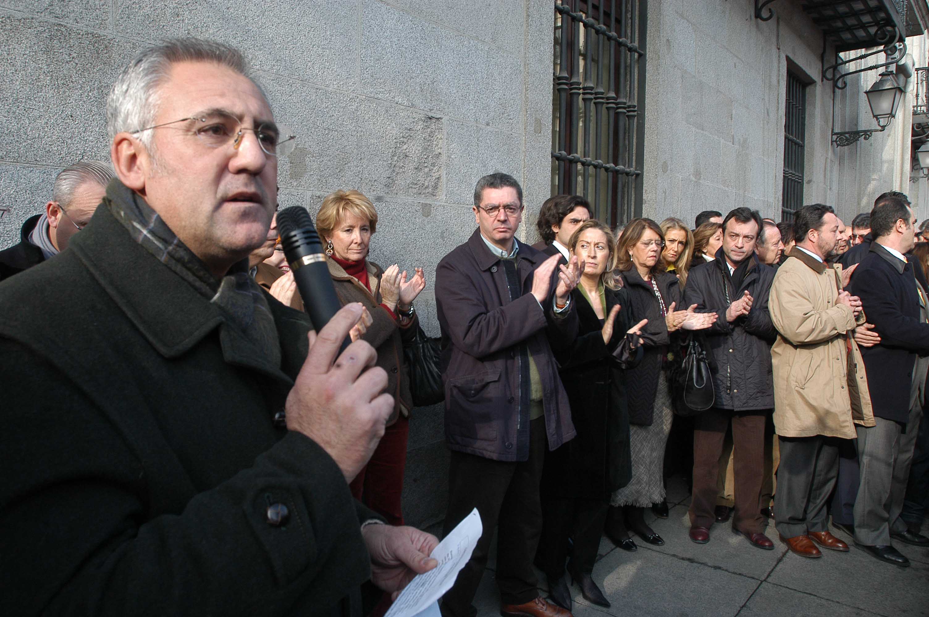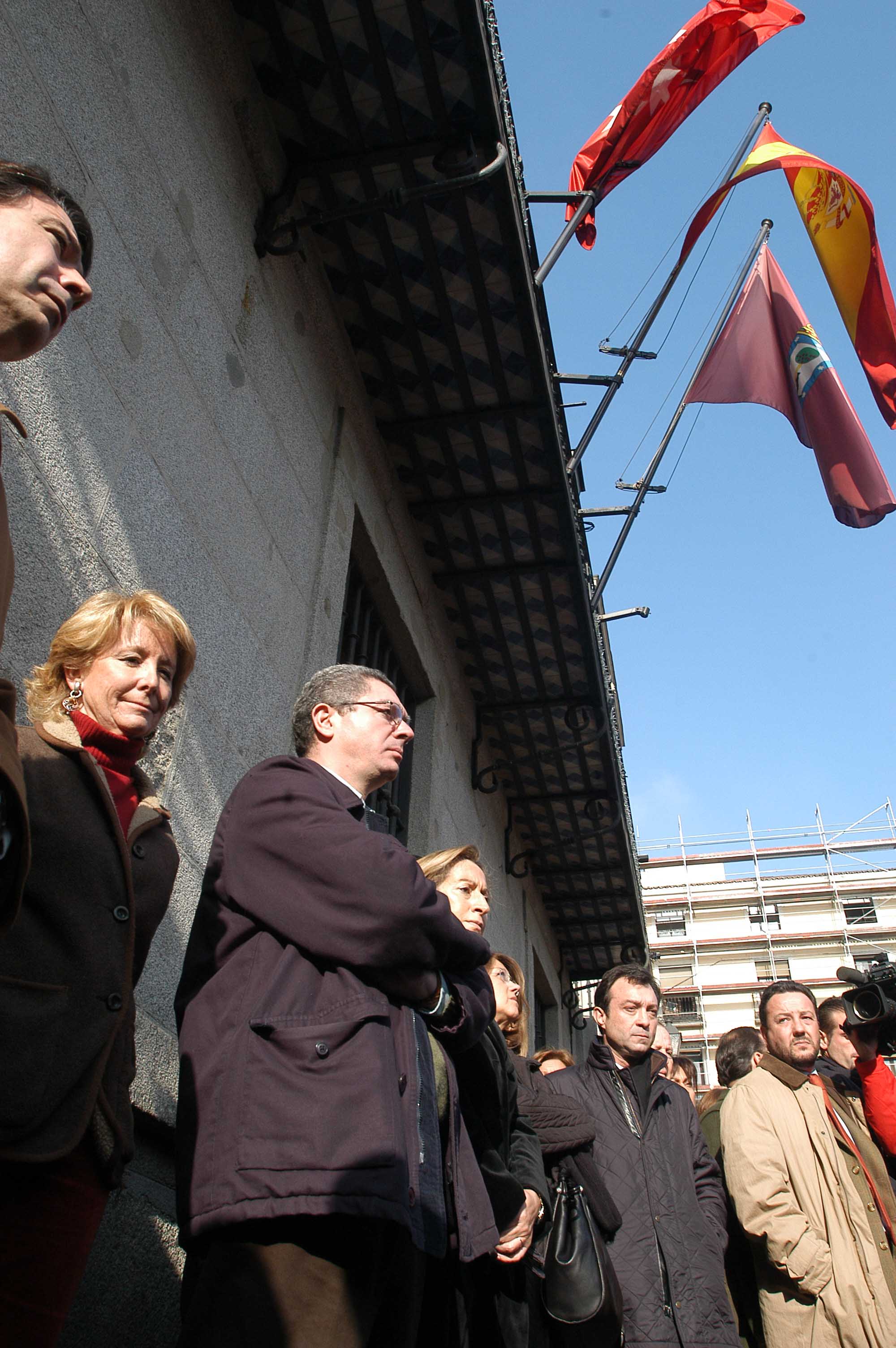 El alcalde de la Ciudad de Madrid, Alberto Ruiz-Gallardón, ha participado hoy en la concentración silencionsa celebrada en la plaza de la Villa para condenar el atentado terrorista perpetrado el pasado sábado, día 30 de diciembre, en el aeropuerto de Barajas. A la concentración, convocada por la Asociación Victimas del Terrorismo, también han asistido la presidenta de la Comunidad, Esperanza Aguirre y el vicealcalde, Manuel Cobo, entre otros.Tras los tres minutos de silencio, el delegado en Madrid de la AVT, Juan Antonio García Castelo, ha leido un comunicado.