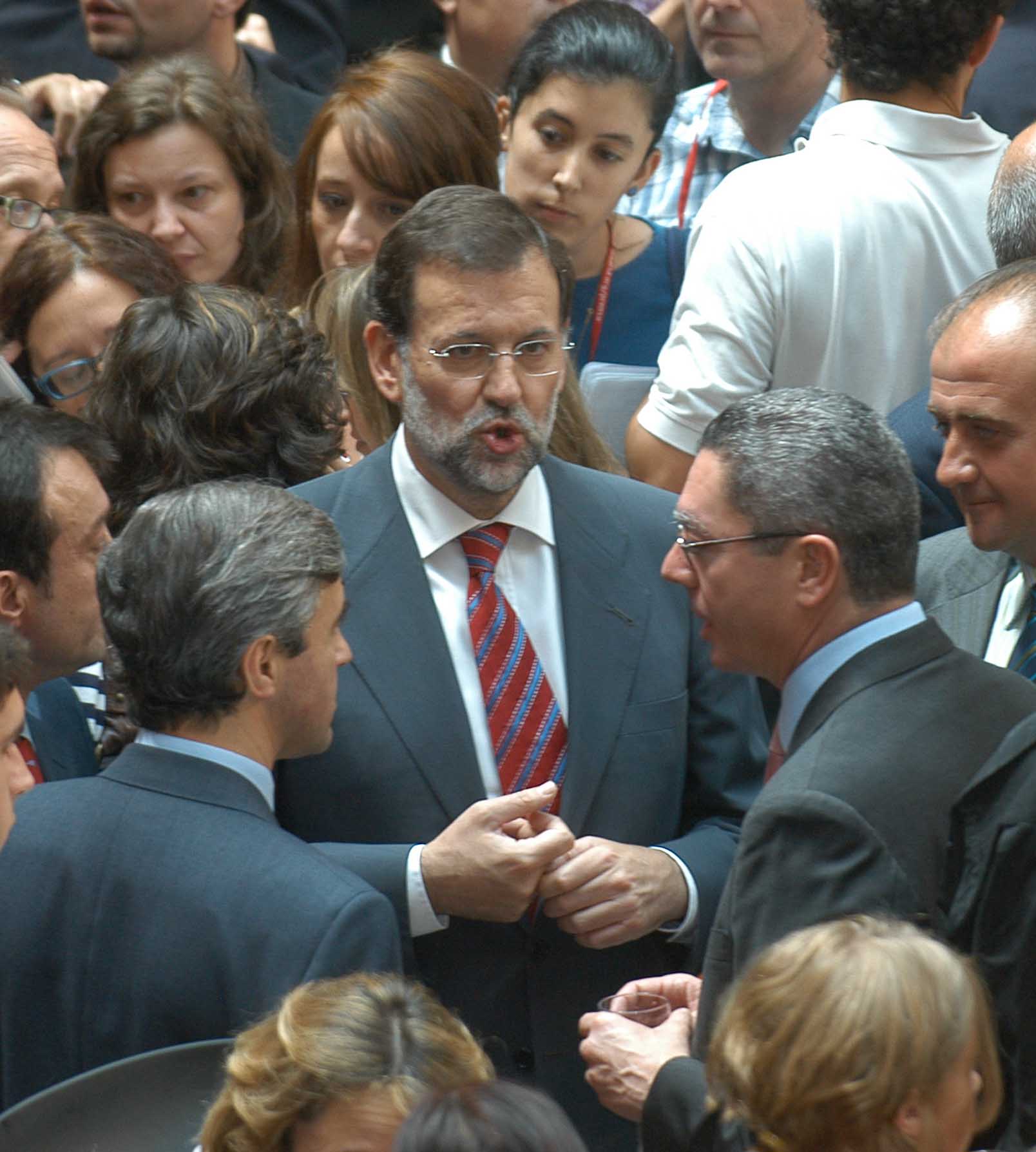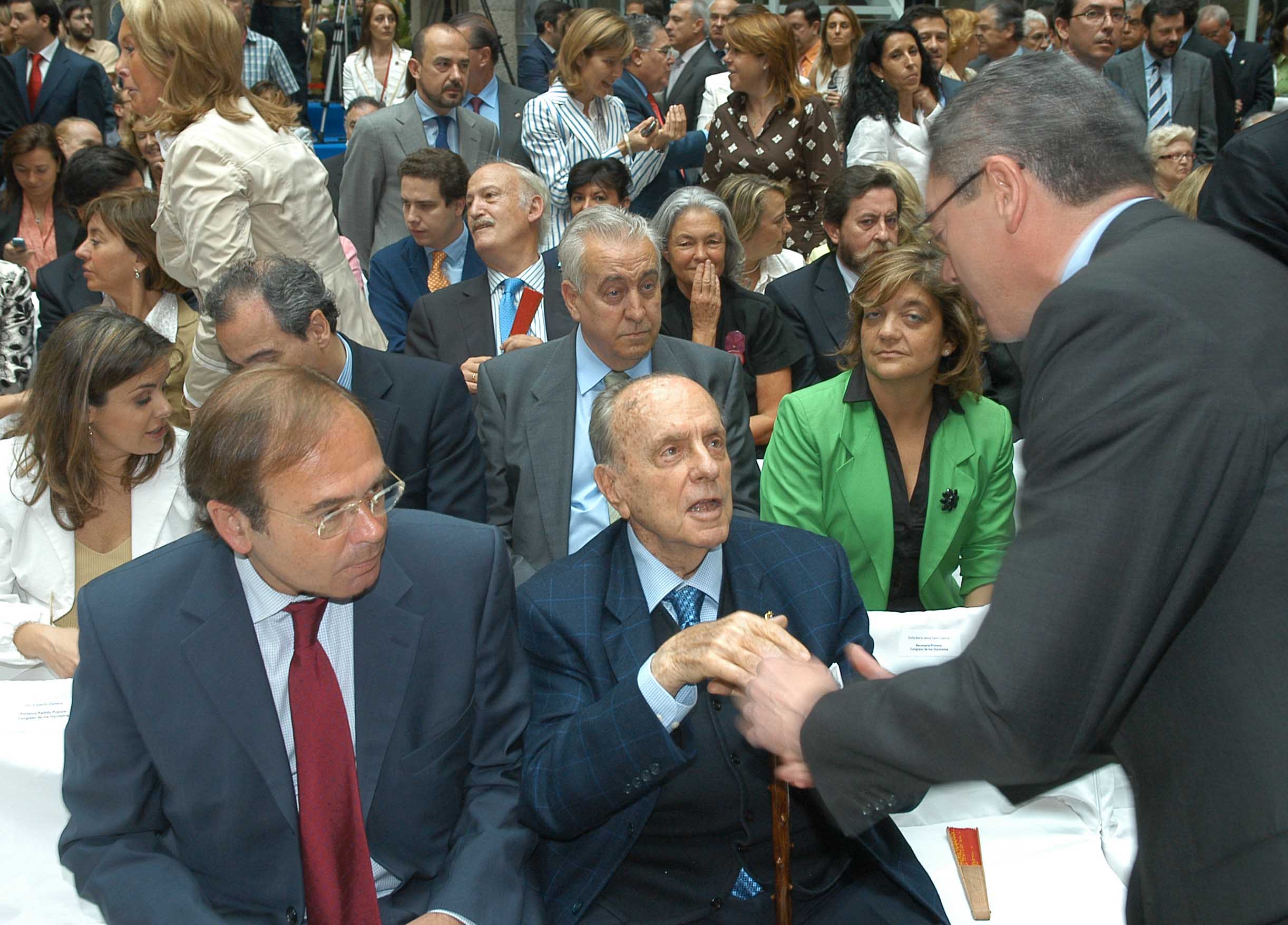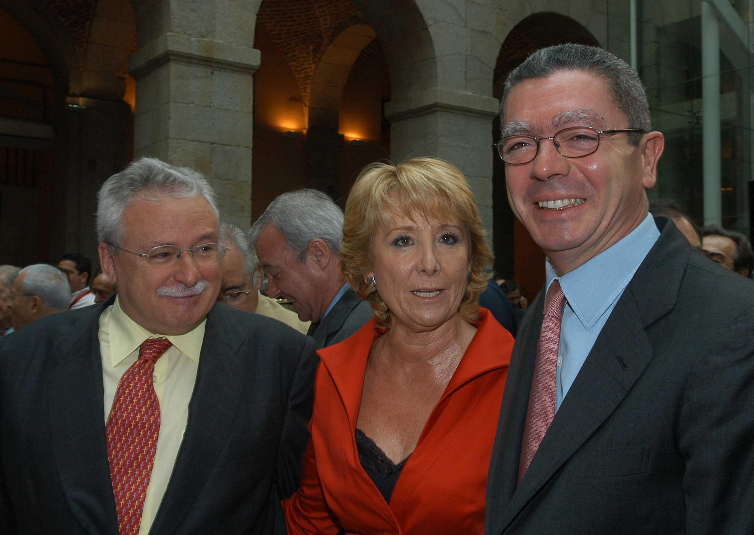 Imágenes del alcalde de la Ciudad de Madrid, Alberto Ruiz-Gallardón, en la toma de posesión de Esperanza Aguirre como presidenta de la Comunidad