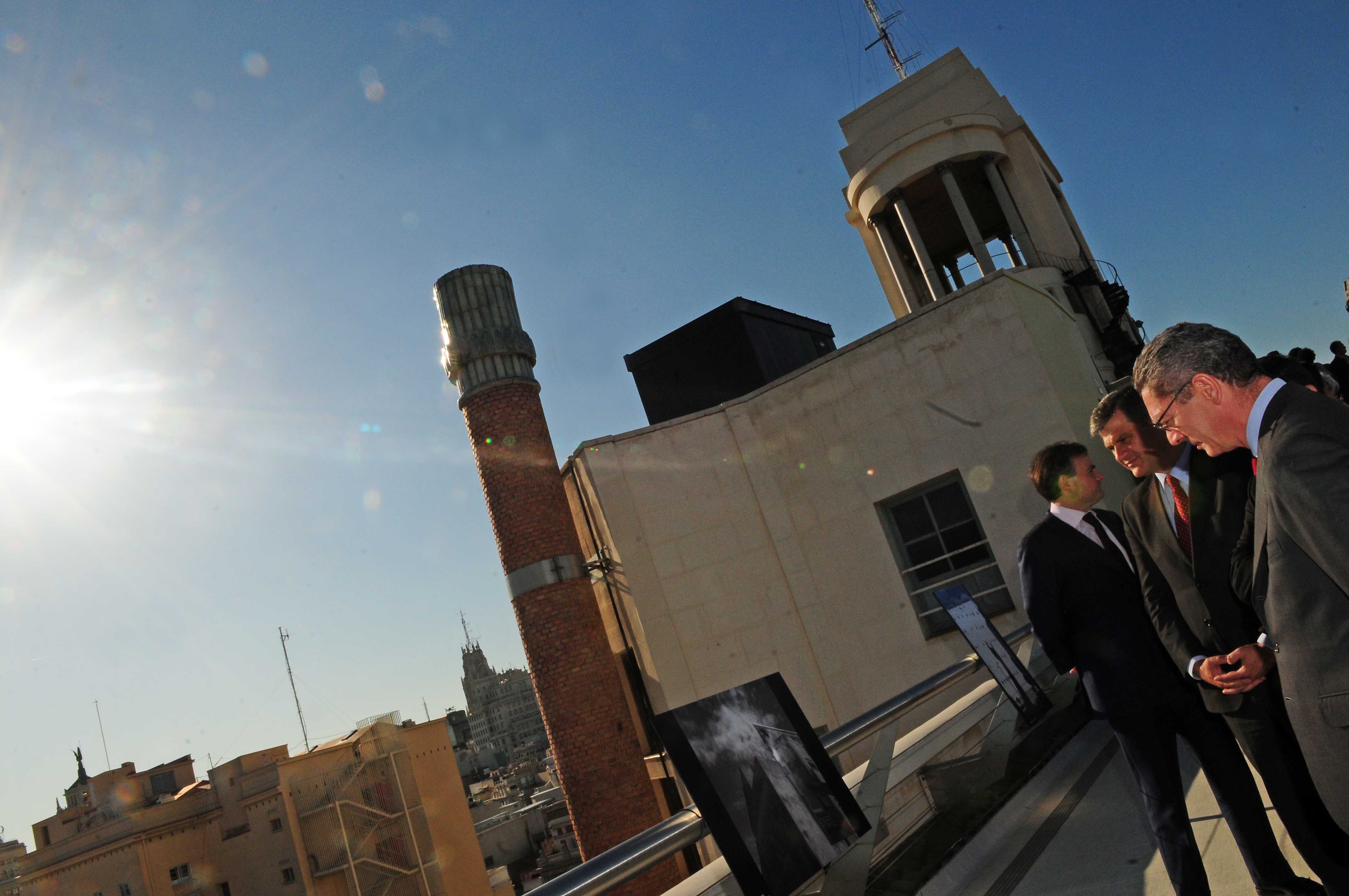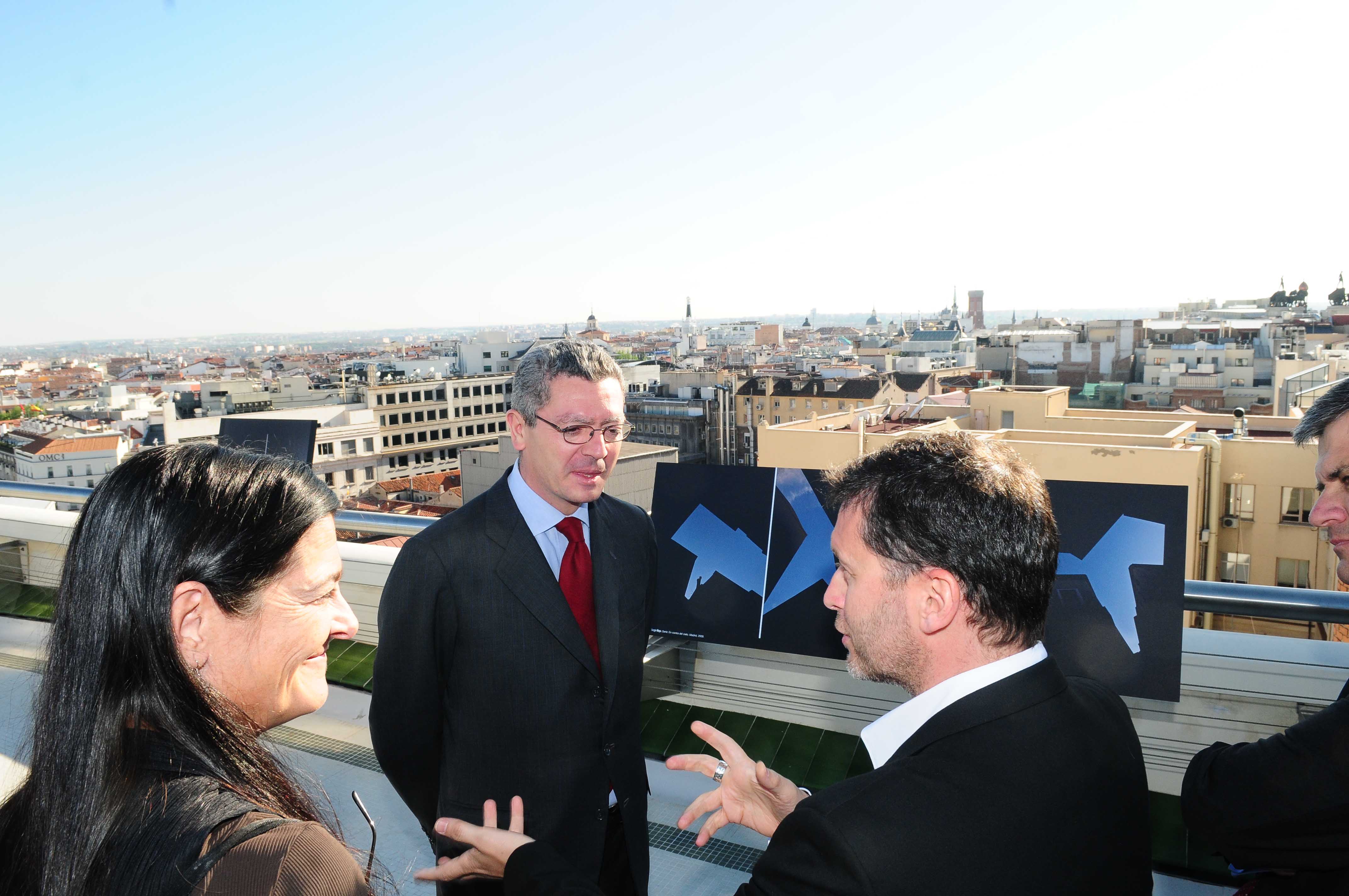 El alcalde de Madrid, Alberto Ruiz-Gallardón, ha inaugurado la muestra ¡Oh cielos!, que reúne las fotografías que más de 30 artistas han realizado desde la azotea del Circulo de Bellas Artes