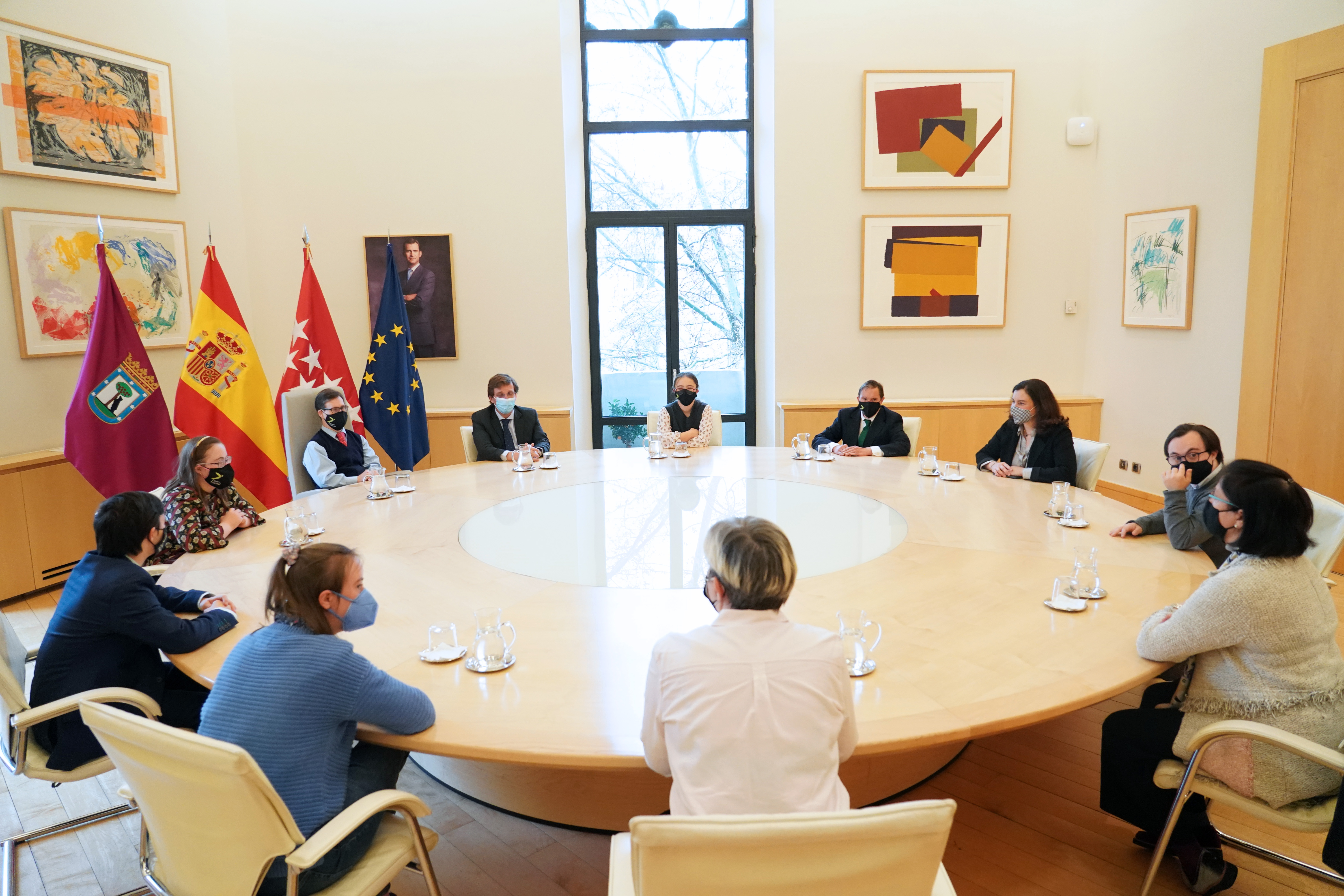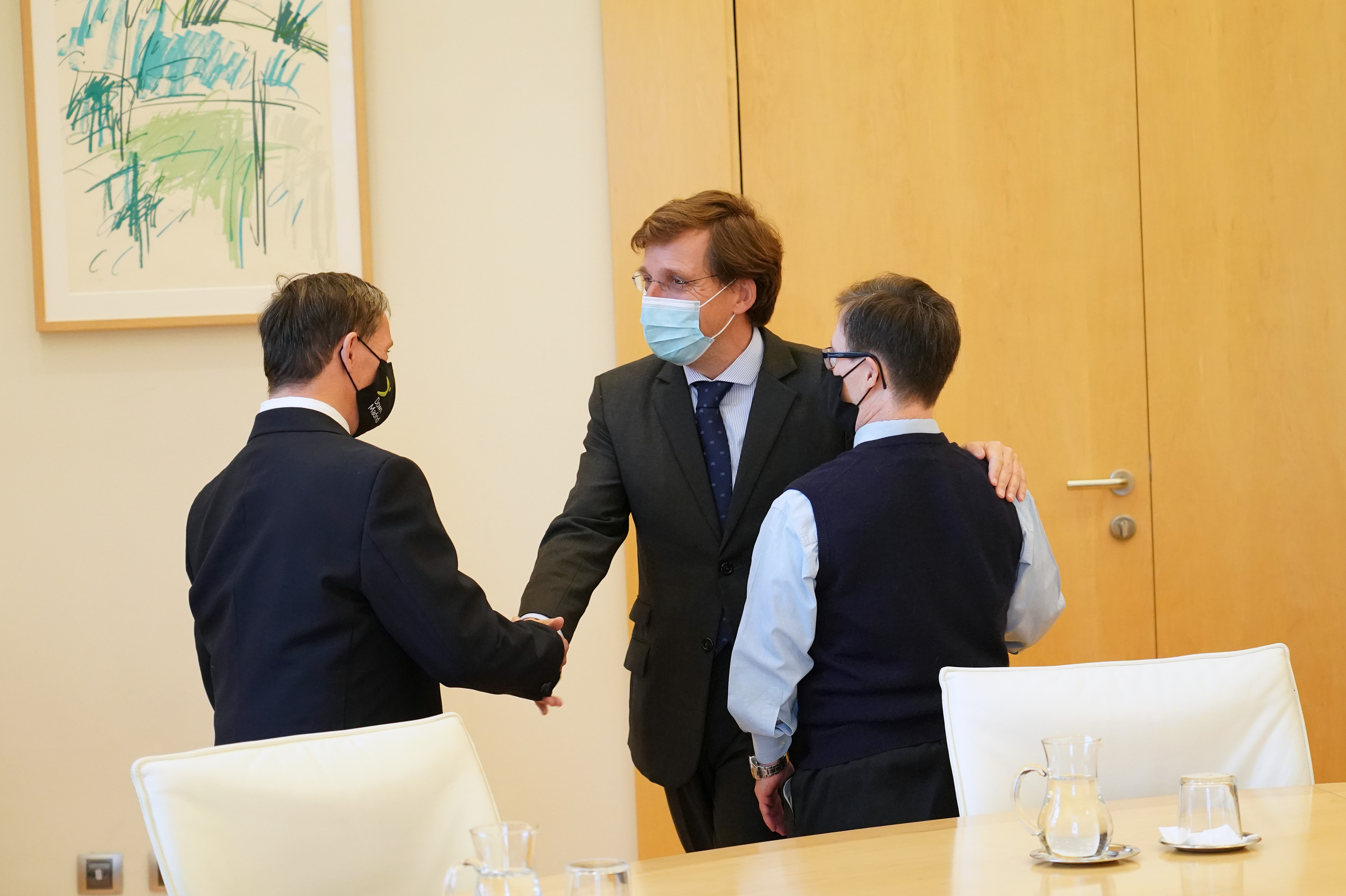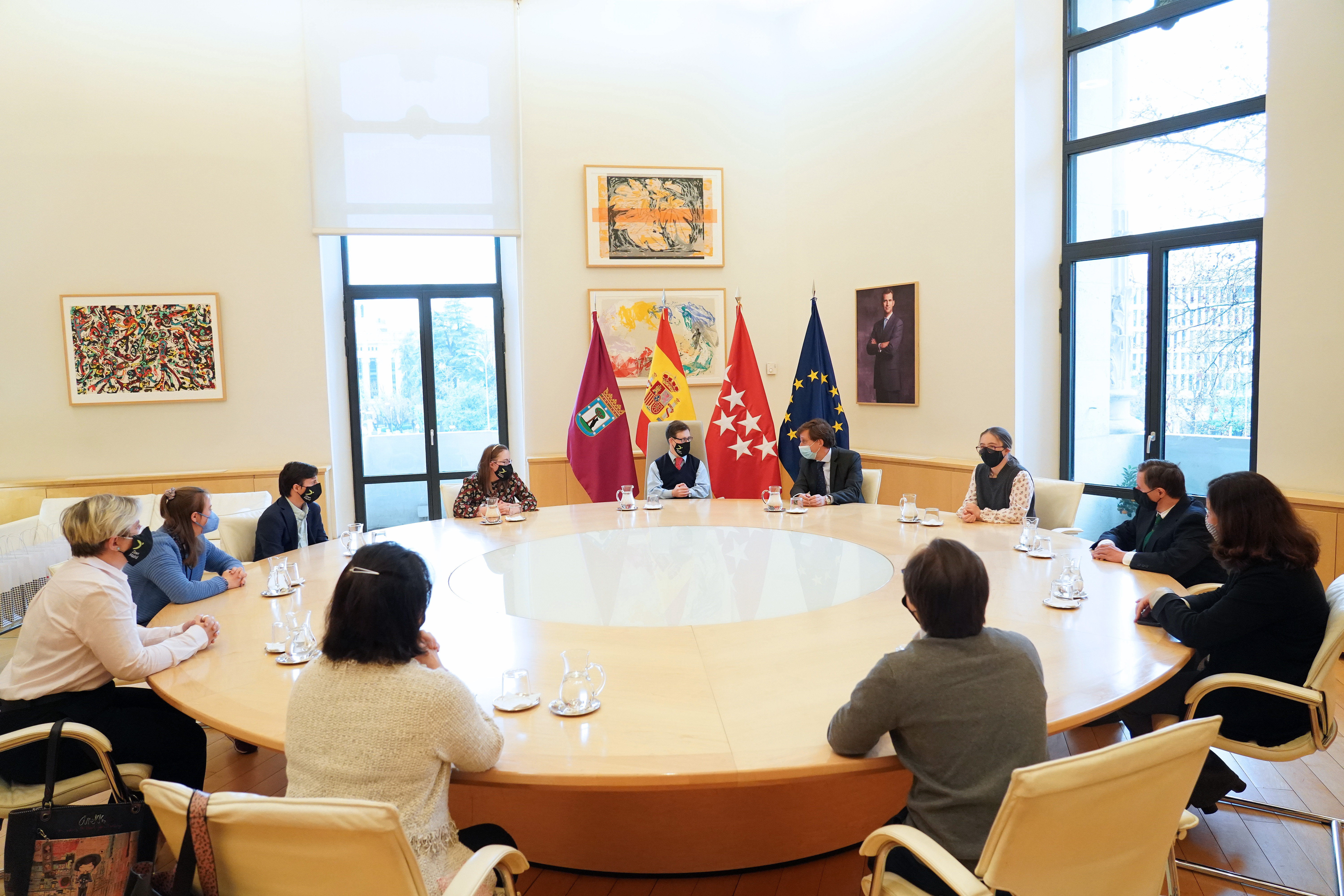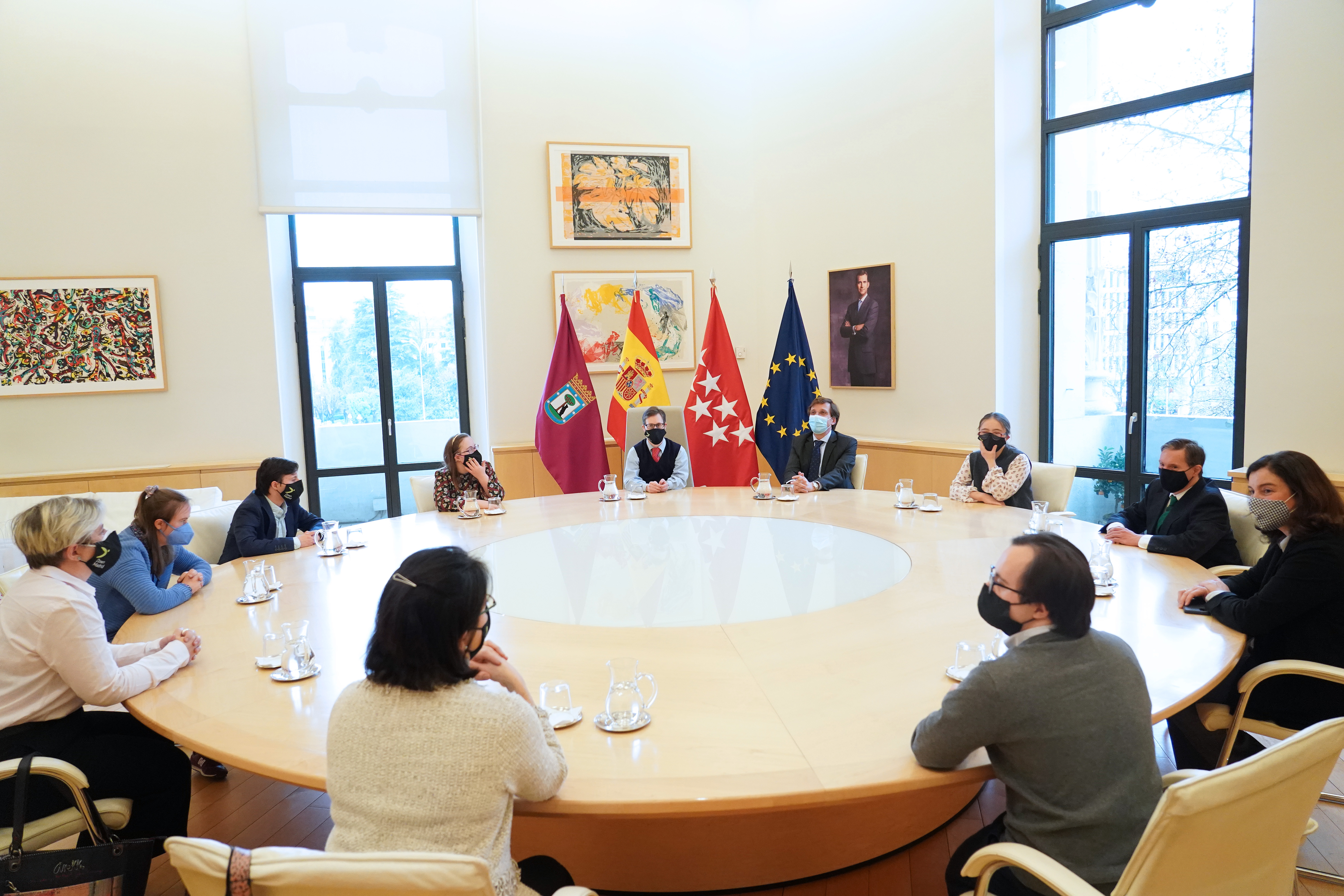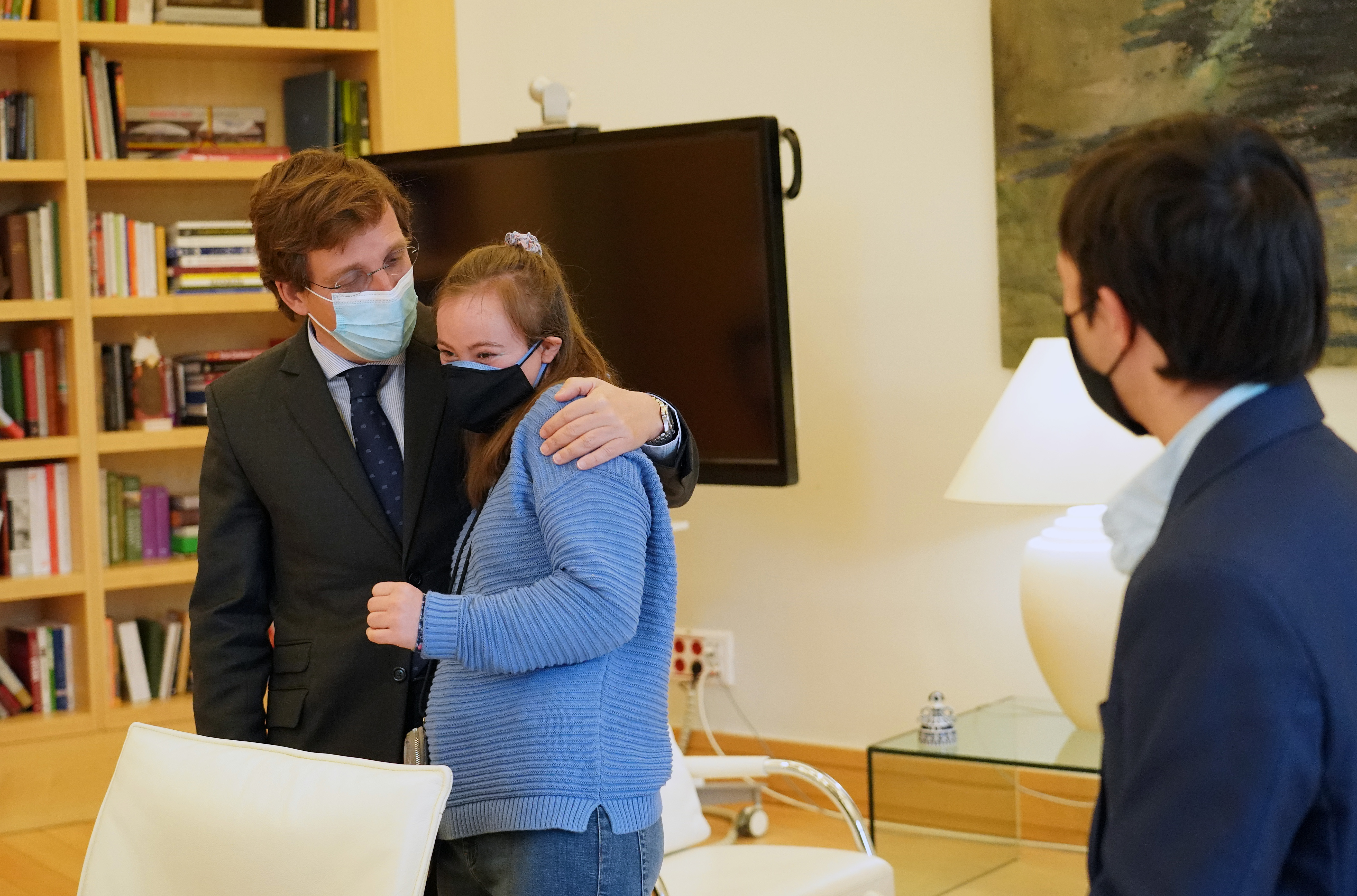 El alcalde de Madrid, José Luis Martínez-Almeida, ha recibido hoy en el Ayuntamiento a la directora de la Fundación Síndrome de Down, Elena Escalona, acompañada por un grupo de jóvenes y adultos miembros de la fundación. con motivo de la celebración del Día Mundial del Síndrome de Down.