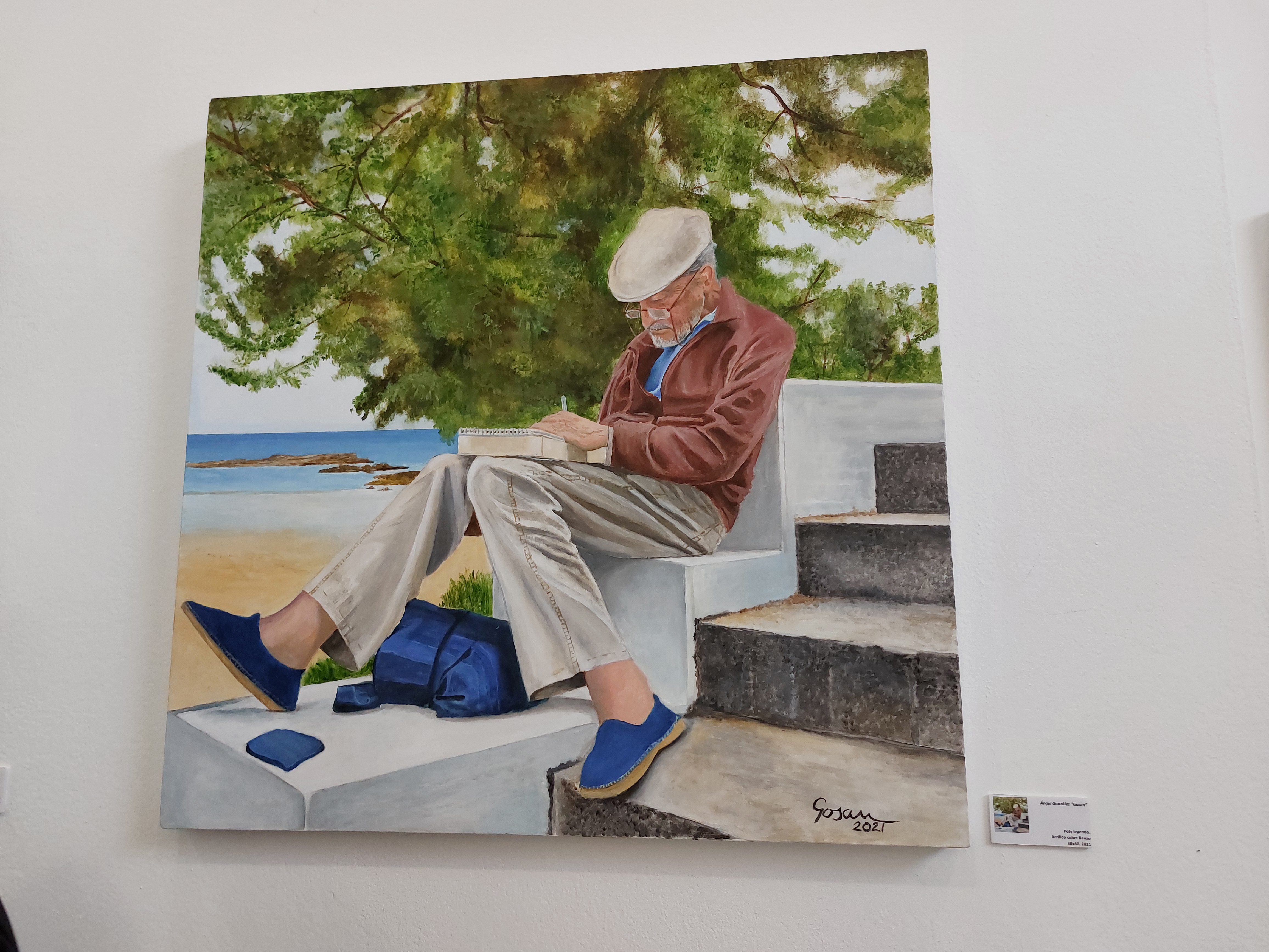 En esta exposición, Gosan ha reunido 60 obras, sobre todo figurativas, pero con alguna escapada a la abstracción, en las que se pueden contemplar escenas de la vida cotidiana, creadas a partir de la observación de las personas, paisajes y mares en los lugares que el pintor ha visitado y recorrido a lo largo de su vida.