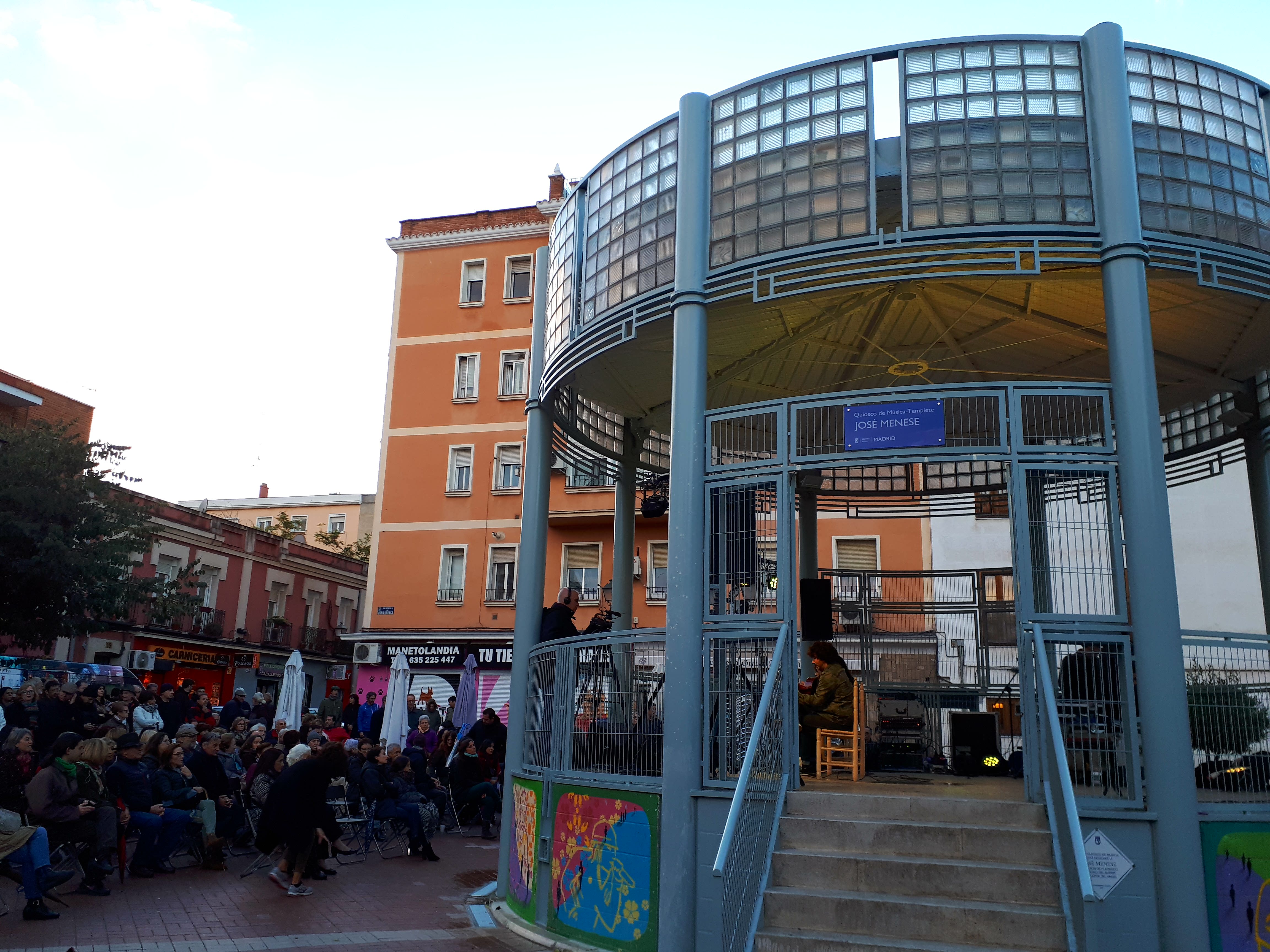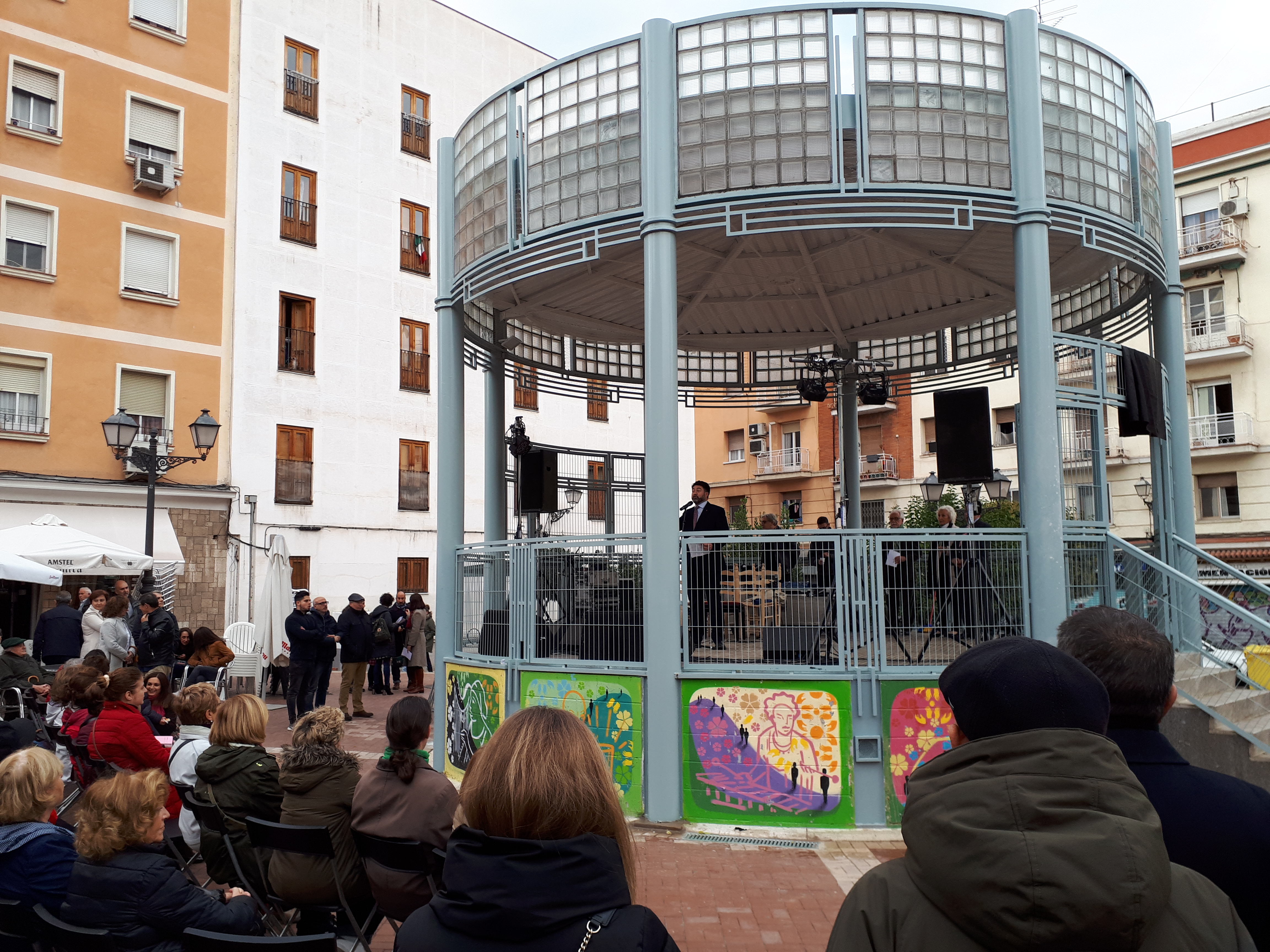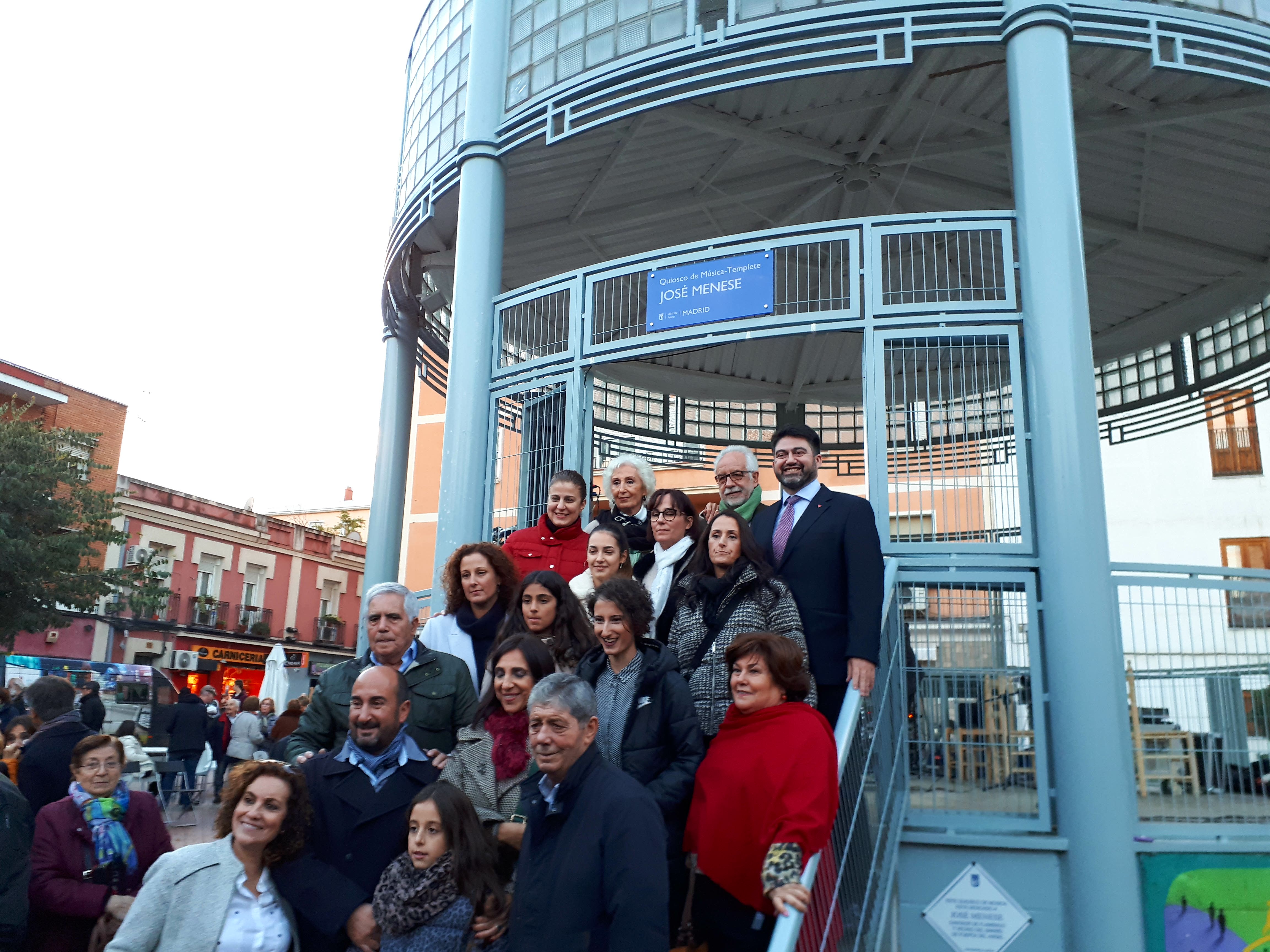 El homenaje tuvo lugar después de que el Pleno de la Junta Municipal de Latina acordara dar el nombre a uno de sus vecinos más ilustres y de que concluyeran las obras de rehabilitación del templete a cargo de la Junta de Latina.
