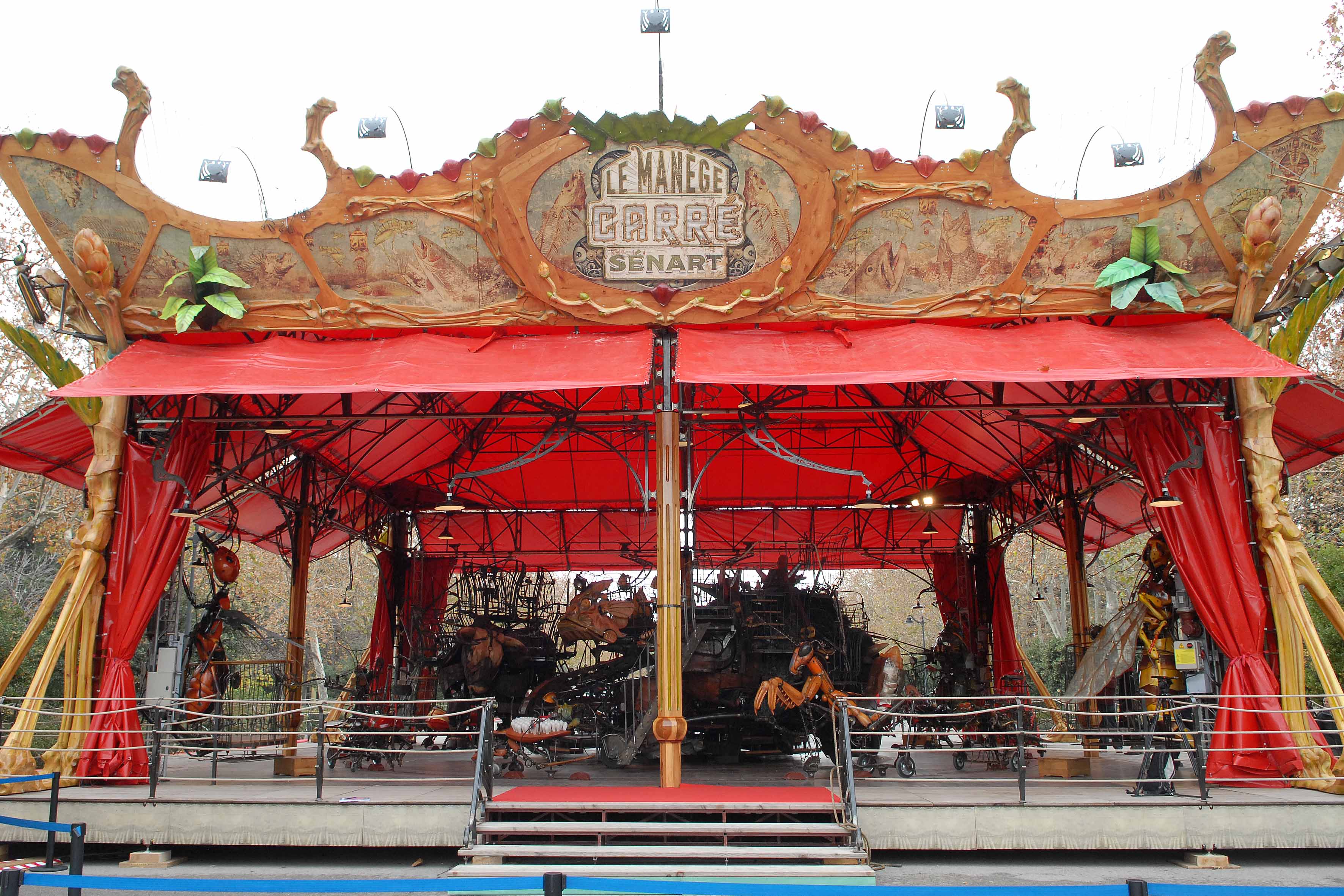 El carrusel de la Navidad. Le Manège Carré de Senart esta formado por una estructura de 18 metros de lado y ocupa una superficie de 300 metros cuadrados. La cúspide culmina a 14 metros en su parte central. Puede acoger hasta 49 personas, en pases que tienen lugar cada cuarto de hora. La atracción se compone de un singular bestiario, conformado por 3 búfalos gigantes, 4 insectos trepadores, 10 insectos montados sobre raíles y 3 cabezas de peces, entre otros animales fantásticos.