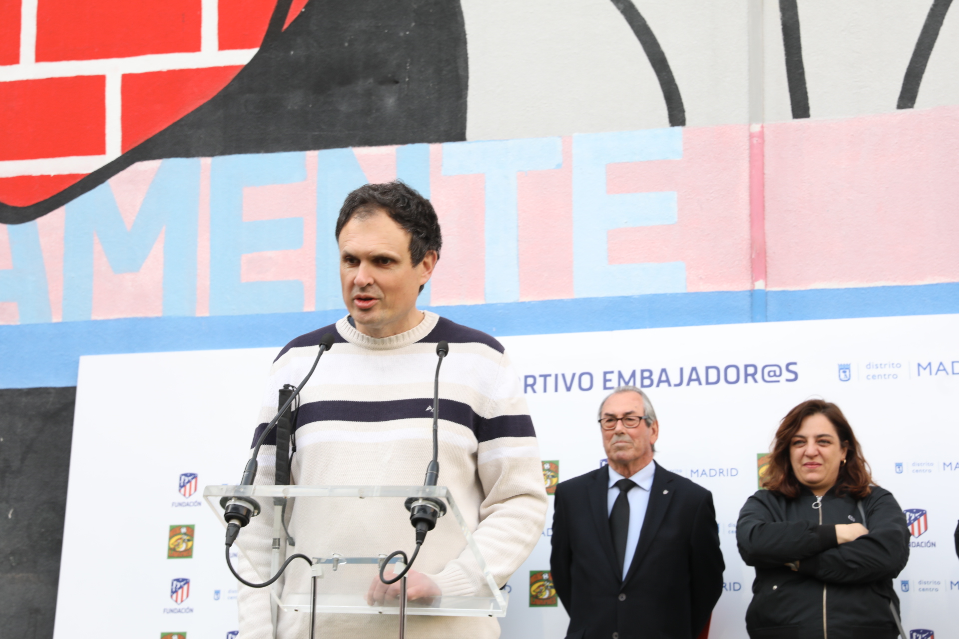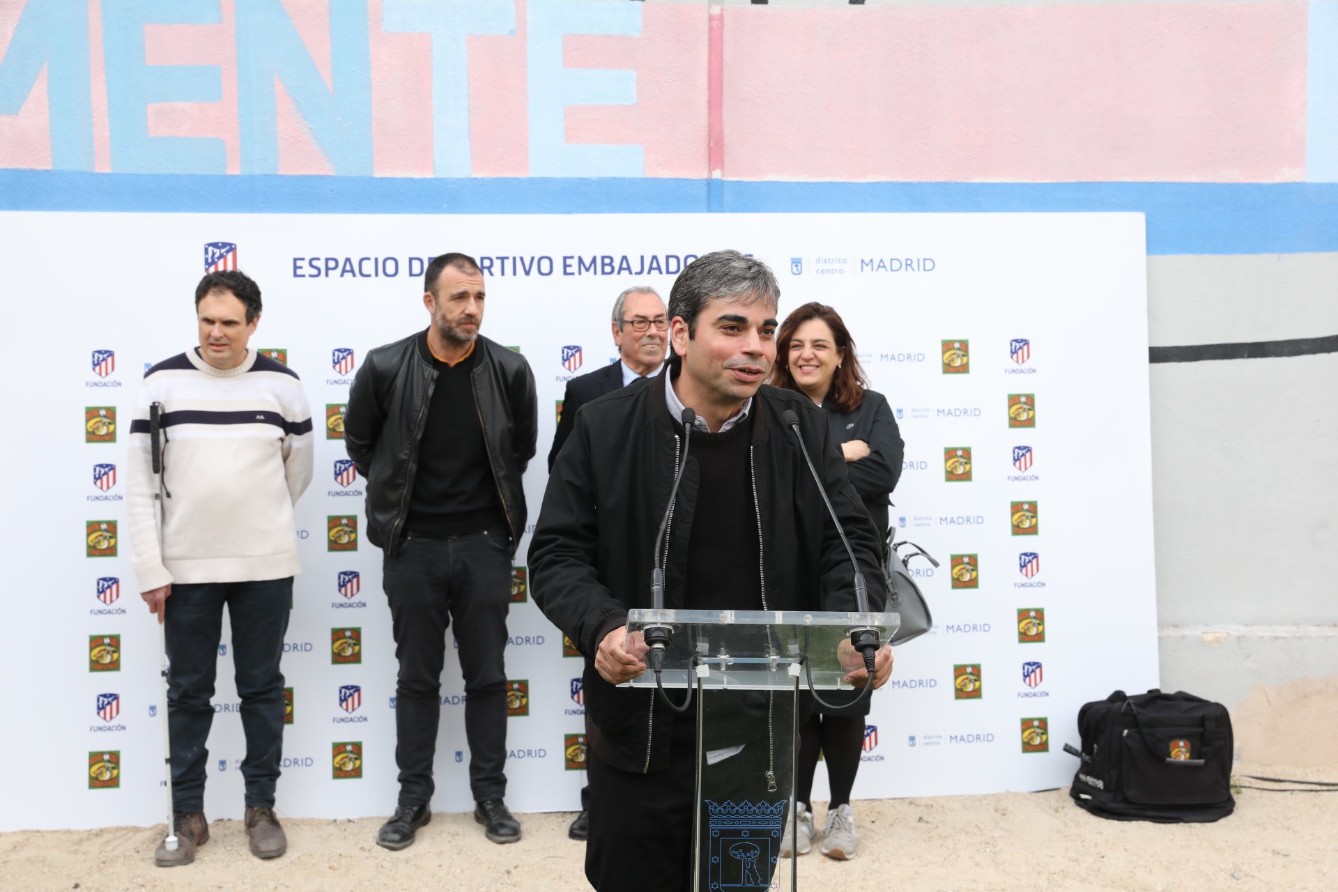 El concejal del distrito de Centro y delegado de Economía y Hacienda, Jorge García Castaño; el delegado de Coordinación Territorial y Cooperación Público-Social, Nacho Murgui; y la delegada de Políticas de Género y Diversidad, Celia Mayer, acompañados por el presidente de la Fundación Atlético de Madrid, Adelardo Rodríguez, y el presidente del club de fútbol base Dragones de Lavapiés, Jorge Bolaños, han presentado esta tarde el convenio de colaboración para el ‘Deporte inclusivo en Lavapiés’ en el Espacio Polivalente para Actividades Ciudadanas Embajadores, 18.