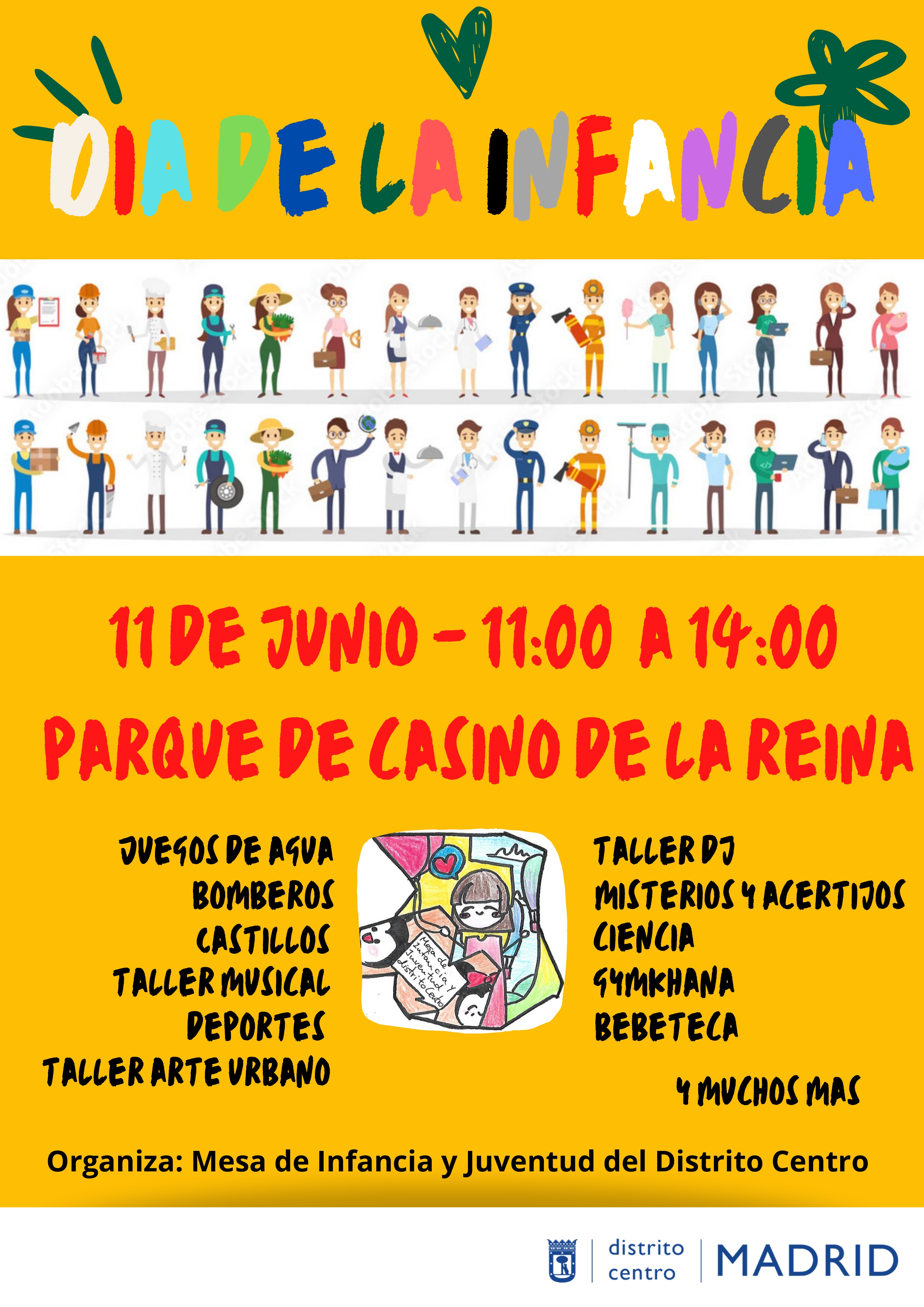 Ciencia, arqueología, medioambiente, juegos colaborativos y ‘bebeteca’. El distrito de Centro celebra este sábado, 11 de junio, el Mini Día de la Infancia con actividades deportivas, lúdicas y educativas para toda la familia. Esta iniciativa comunitaria, organizada por la Mesa de Infancia y Juventud del distrito de Centro, se desarrollará entre las 11:00 y las 14:00 h para que la población menor de 12 años y sus familias puedan disfrutar juntos de la mañana en el parque y en las pistas deportivas del Casino de la Reina.