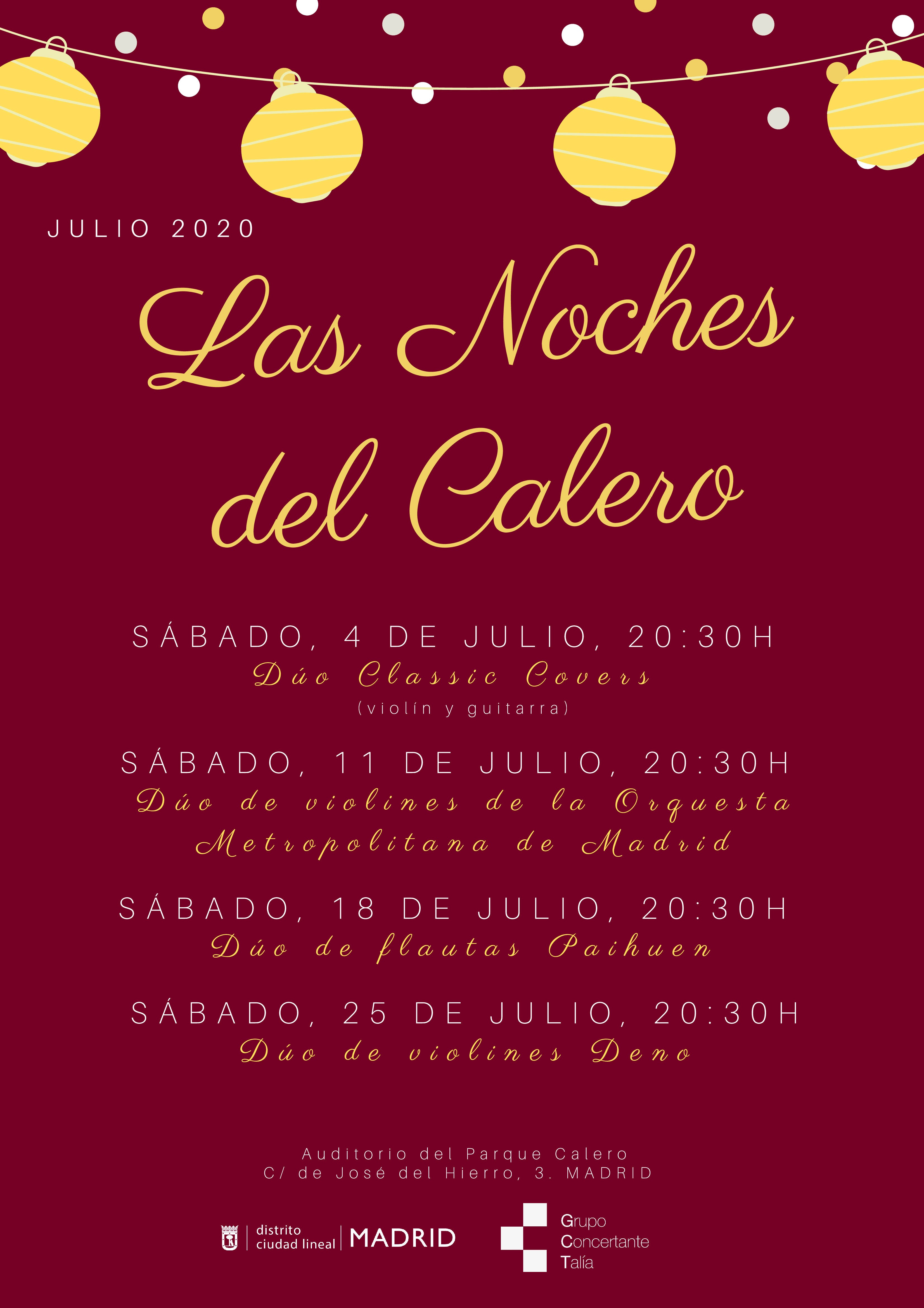 - Los sábados de julio 4, 11, 18 y 25 se celebrarán ‘Las noches del Calero’ con dúos de violín y flauta que interpretarán nuevas versiones de temas conocidos