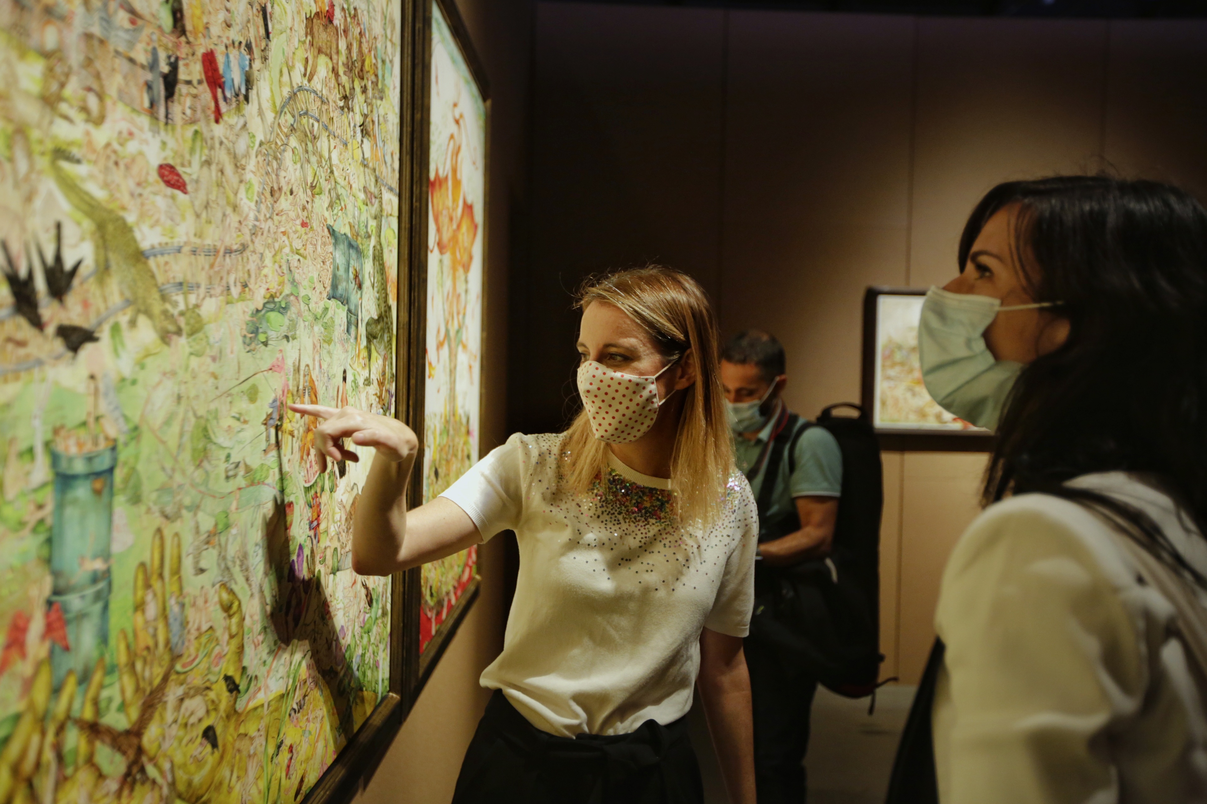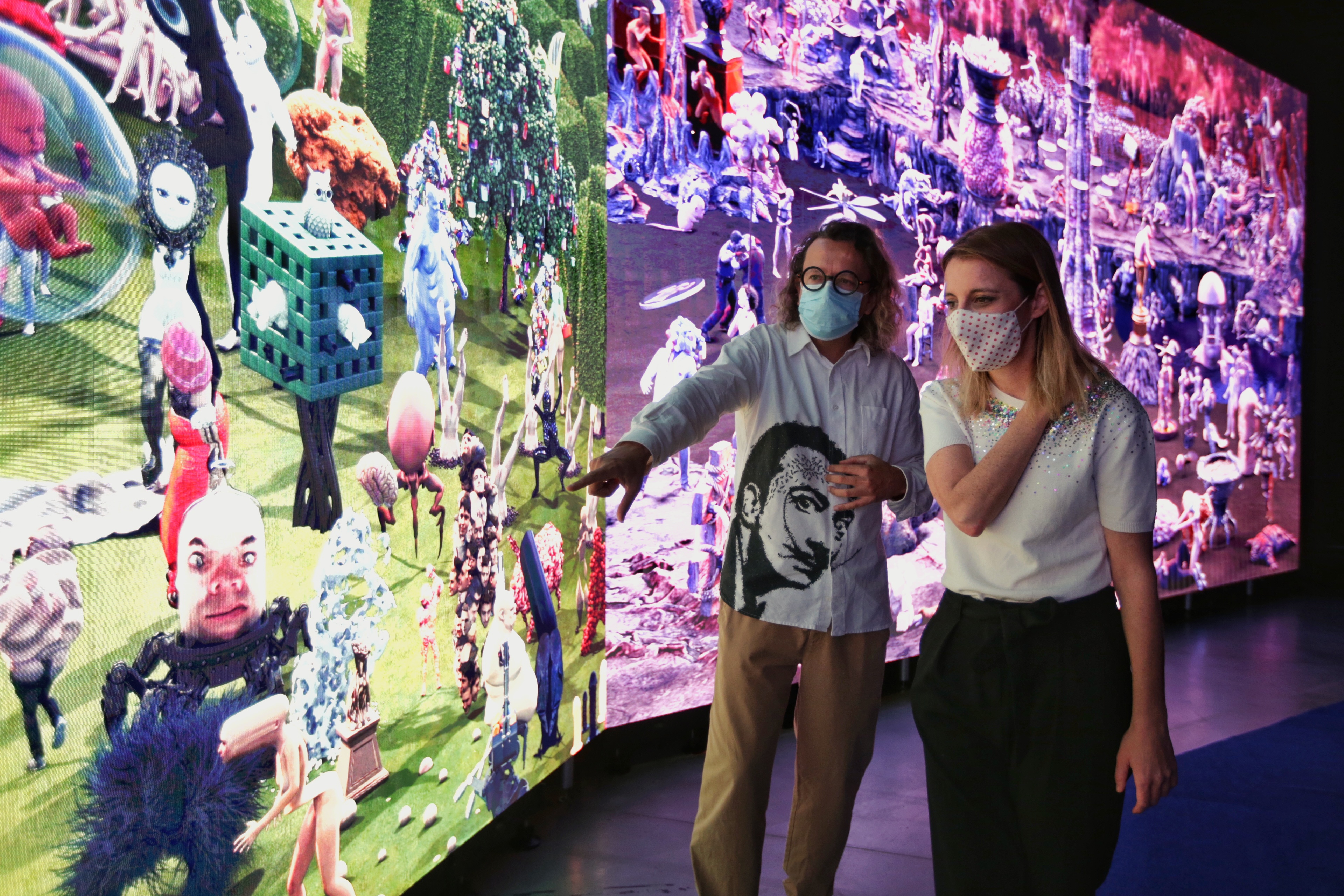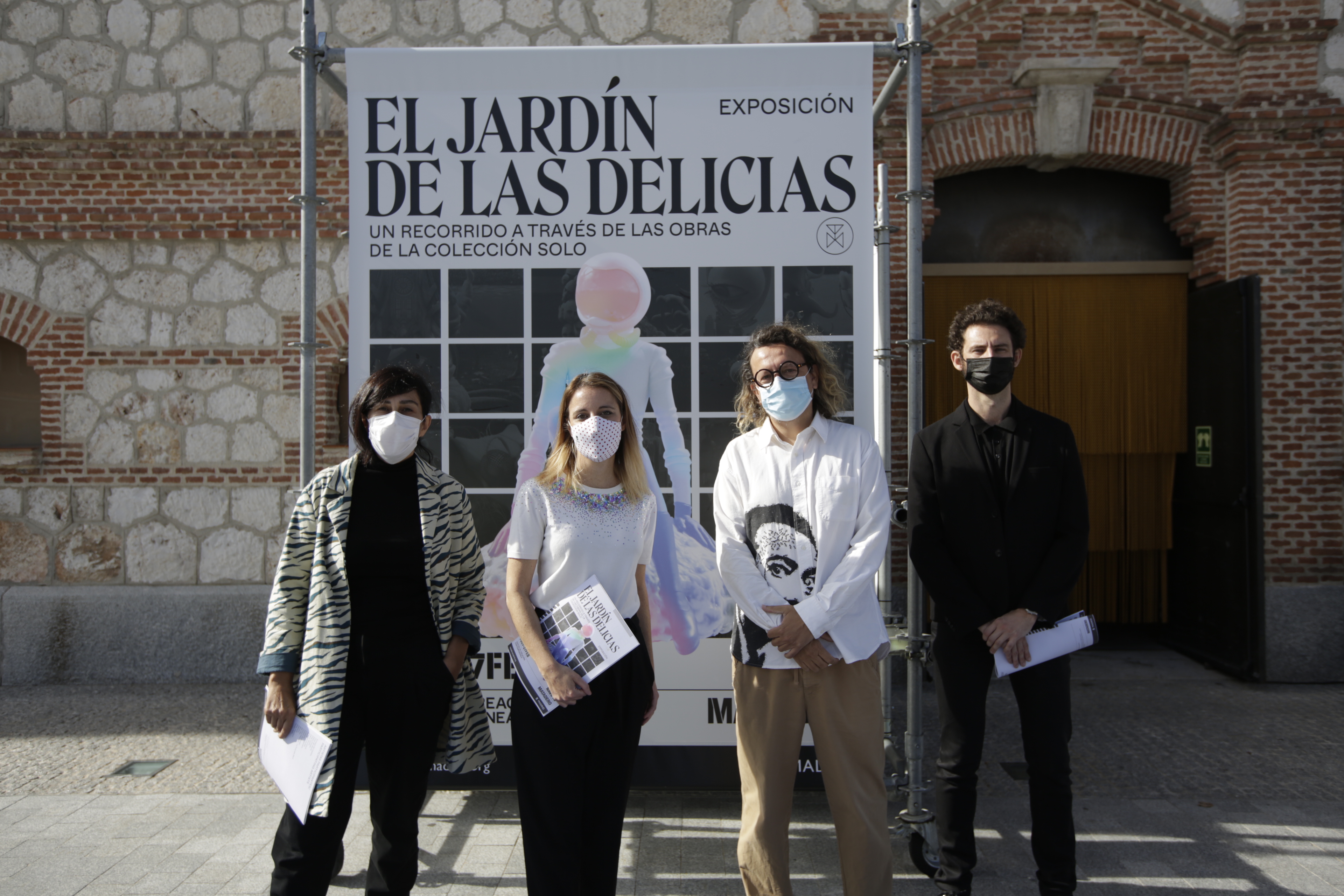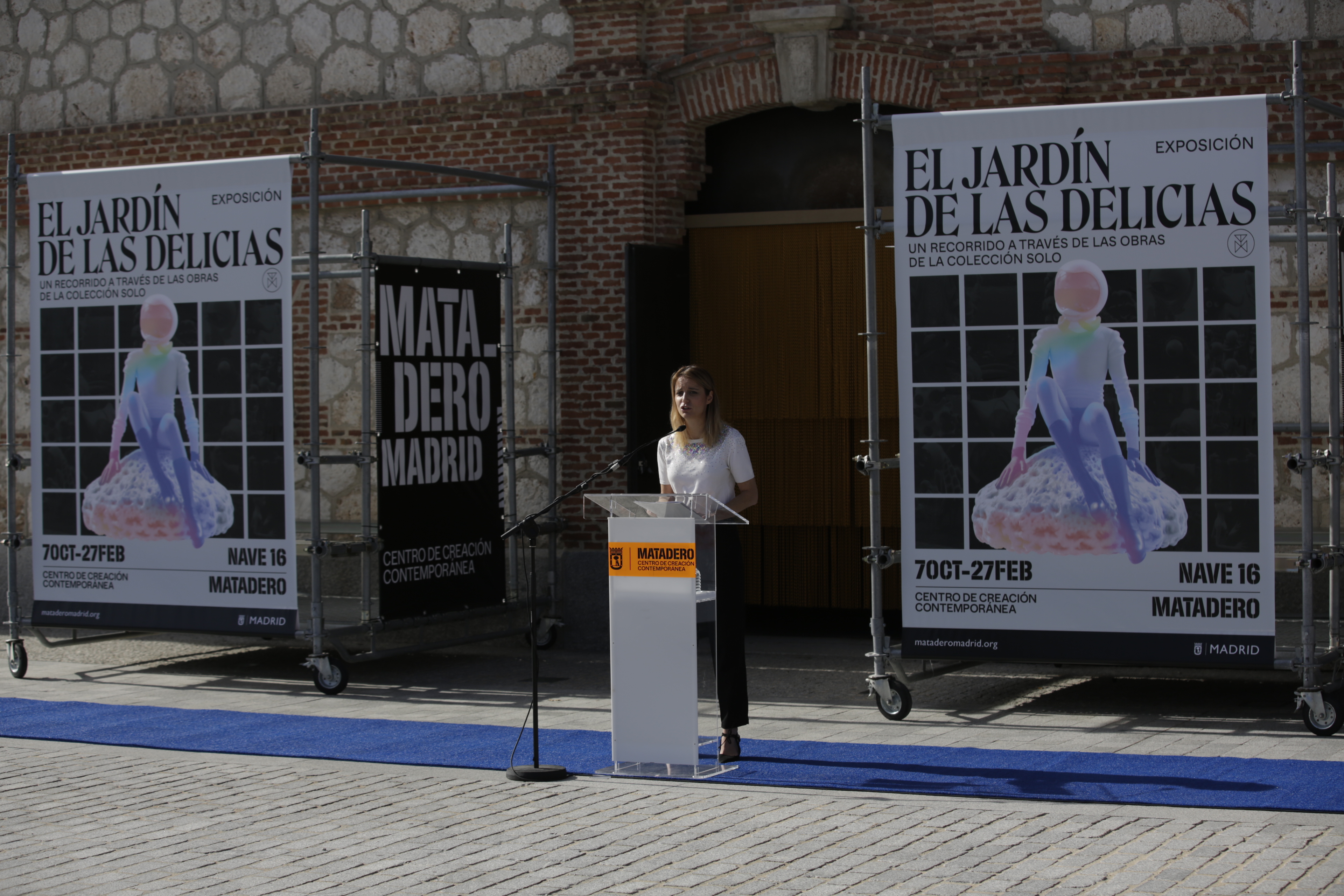 La delegada de Cultura, Turismo y Deporte, Andrea Levy, junto a la directora de Matadero Madrid, Rosa Ferré, y el director de desarrollo de la Colección SOLO, Oscar Hormigos, ha presentado hoy la exposición colectiva El jardín de las delicias, un recorrido a través de las obras de la Colección SOLO. En esta muestra, que se podrá ver desde mañana, 7 de octubre, hasta el 27 de febrero en la Nave 16 de Matadero, participan una quincena de artistas internacionales e invita a volver a la obra maestra de El Bosco desde la creación contemporánea.
