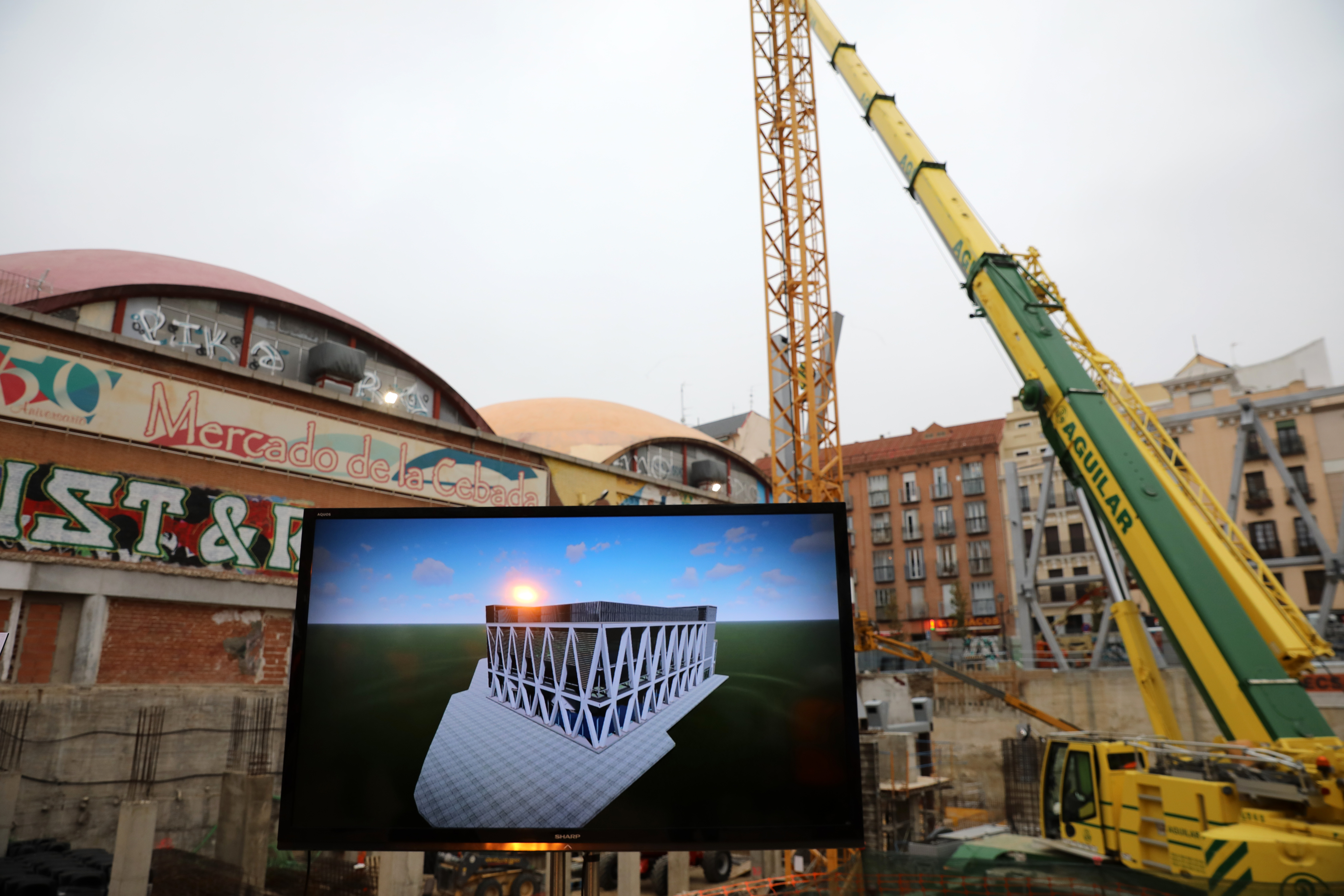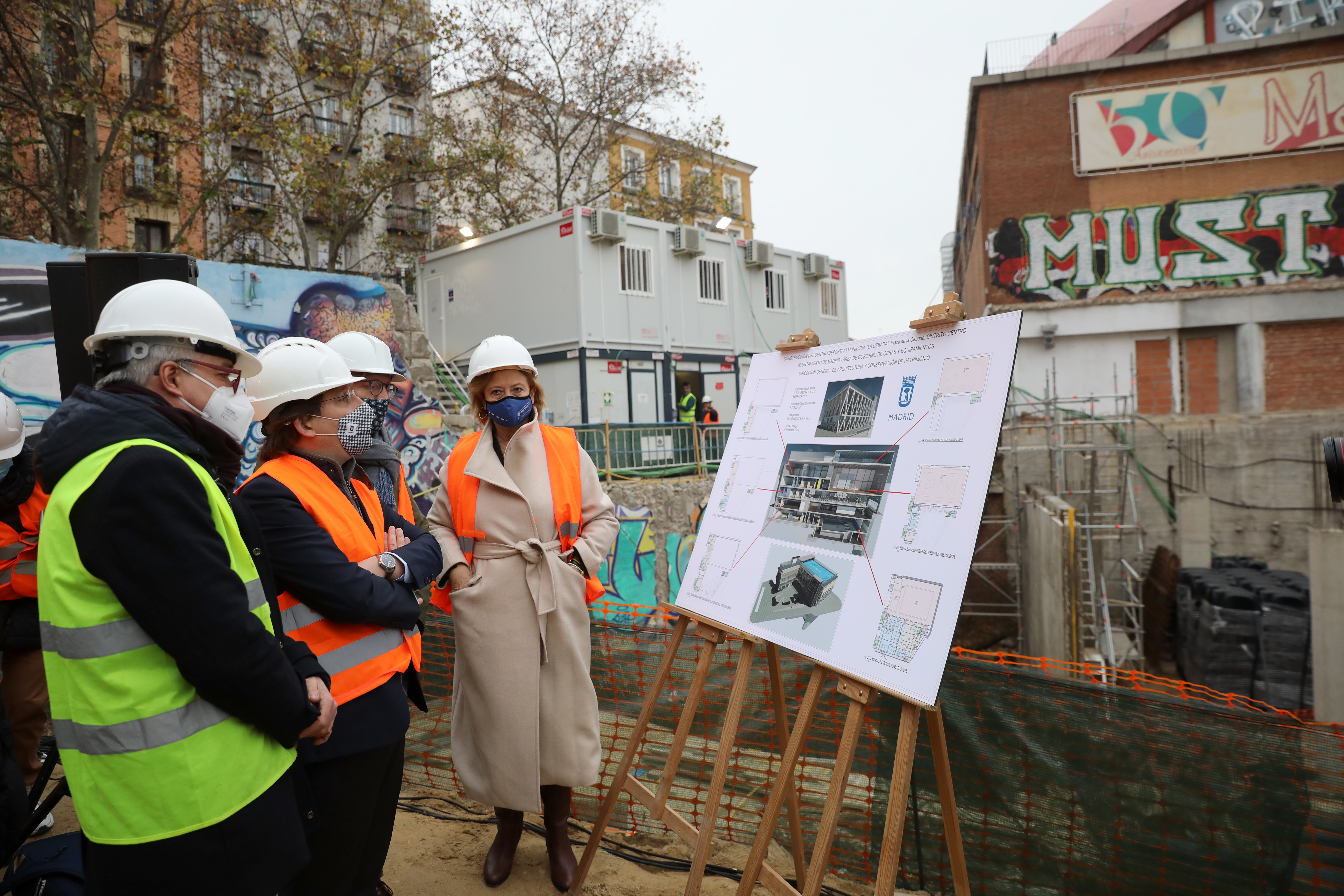 El alcalde de Madrid, José Luis Martínez-Almeida, acompañado de la delegada de Obras y Equipamientos, Paloma García Romero, y del concejal de Centro, José Fernández, ha visitado esta mañana las obras de construcción del nuevo Centro Deportivo Municipal La Cebada que se está levantando en la plaza del mismo nombre. Las nuevas instalaciones, estarán listas en otoño del próximo año y cuentan con una inversión de 12,4 millones de euros.