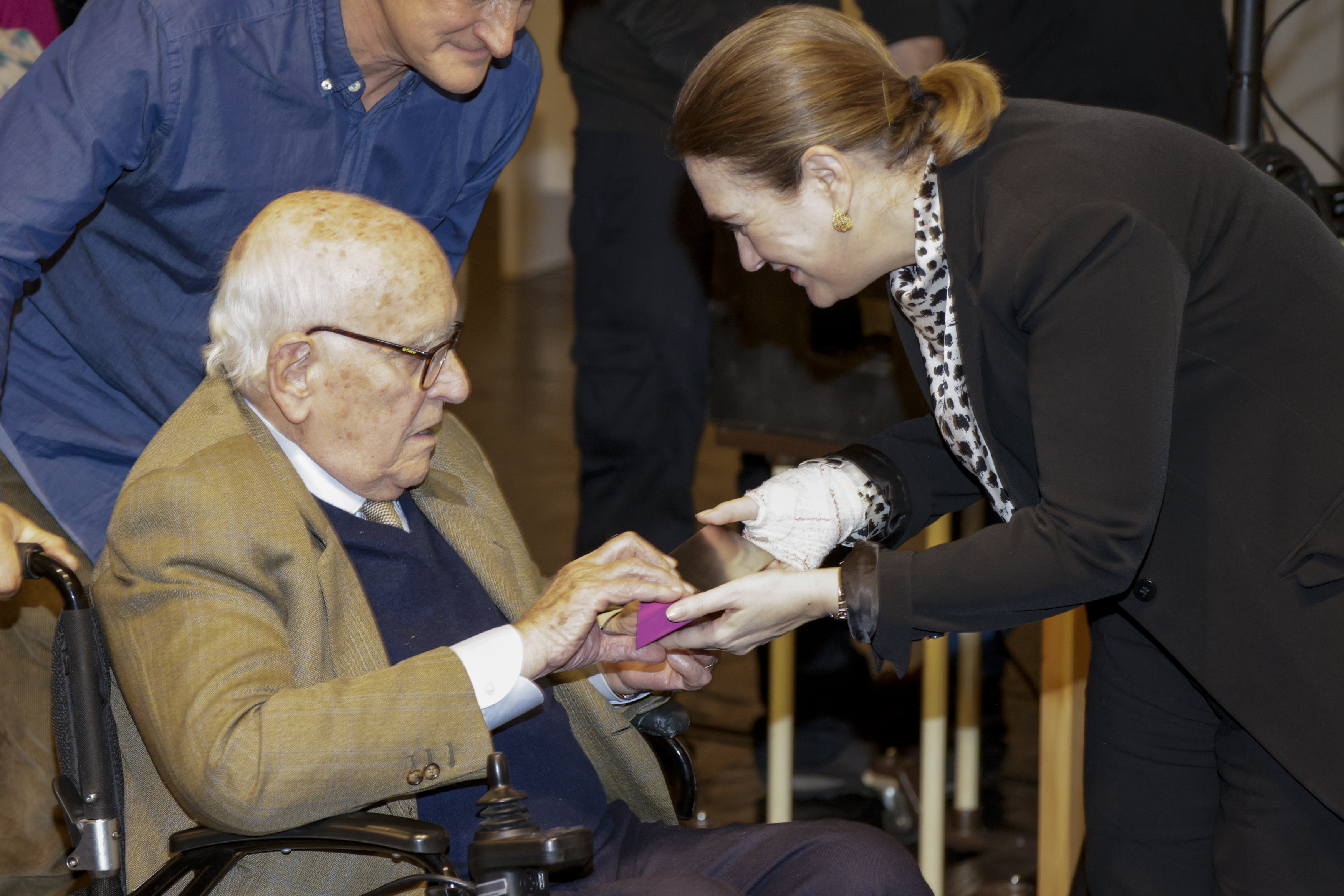 La delegada de Cultura, Turismo y Deporte, Marta Rivera de la Cruz junto al diseñador Miguel Milá en el acto de entrega del reconocimiento Madrid Desing