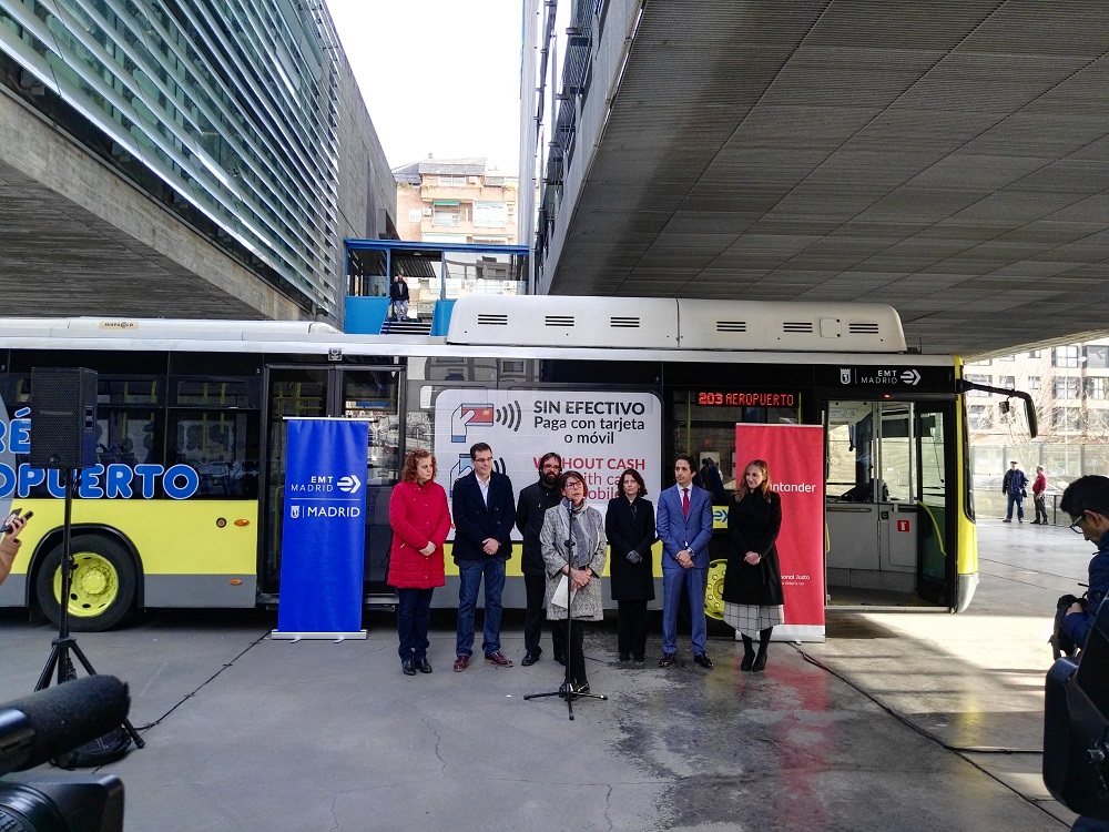 En marzo de 2016, EMT puso en marcha, junto a Mastercard y Santander-Elavon, un proyecto piloto de diez semanas de duración para introducir el pago cashless (sin efectivo) y contactles (sin contacto) mediante tarjeta bancaria (pago EMV-Europay Mastercard Visa) en dos líneas de autobús de la red de EMT: la Exprés Aeropuerto y la 27 (Plaza Castilla – Embajadores). En junio de 2016 el sistema empezó a estar operativo para todos los usuarios que adquirían billete sencillo en estas dos rutas (unos 51.000 en la línea 27 y unos 95.000 en la línea Exprés Aeropuerto mensuales).
