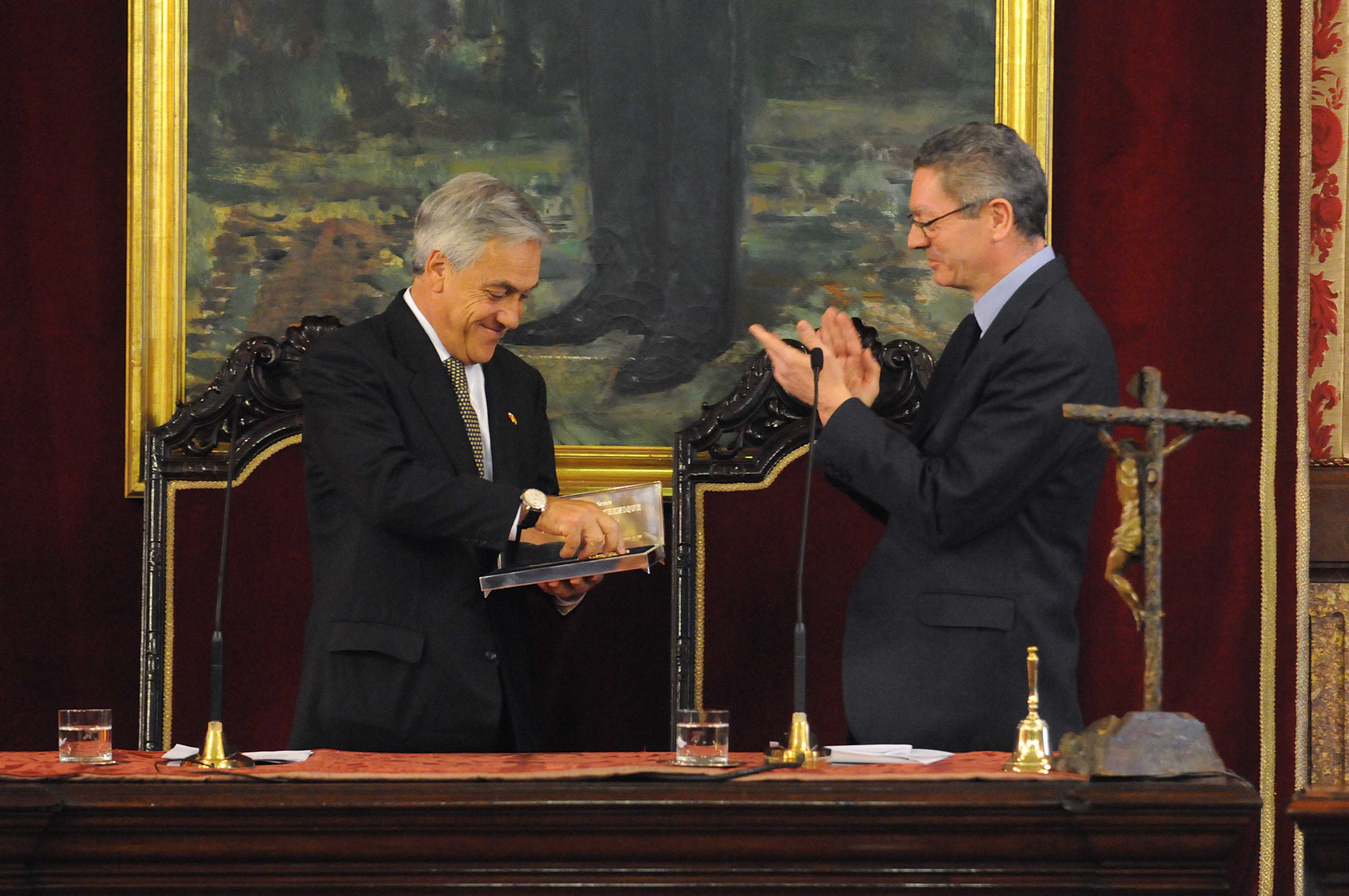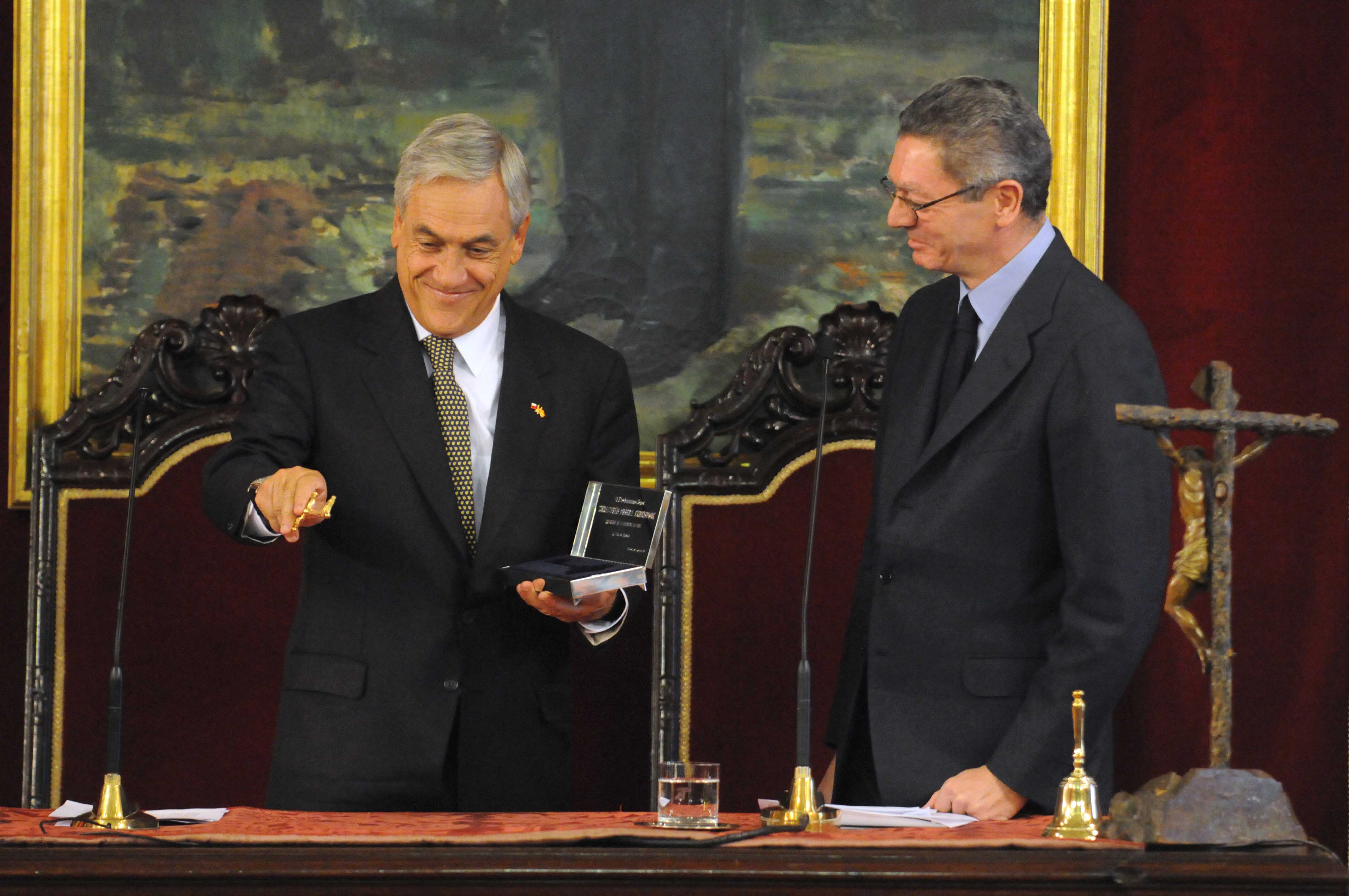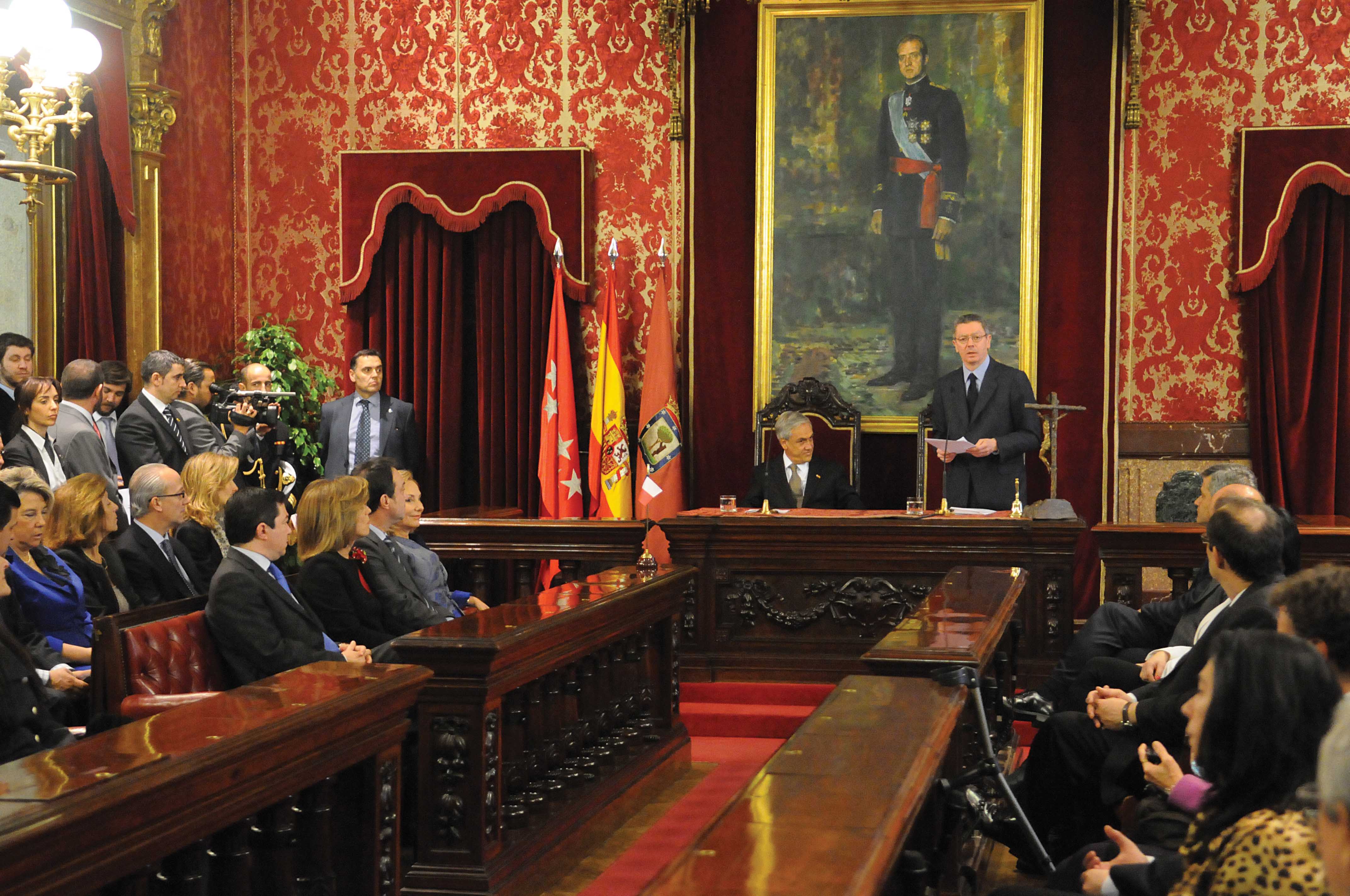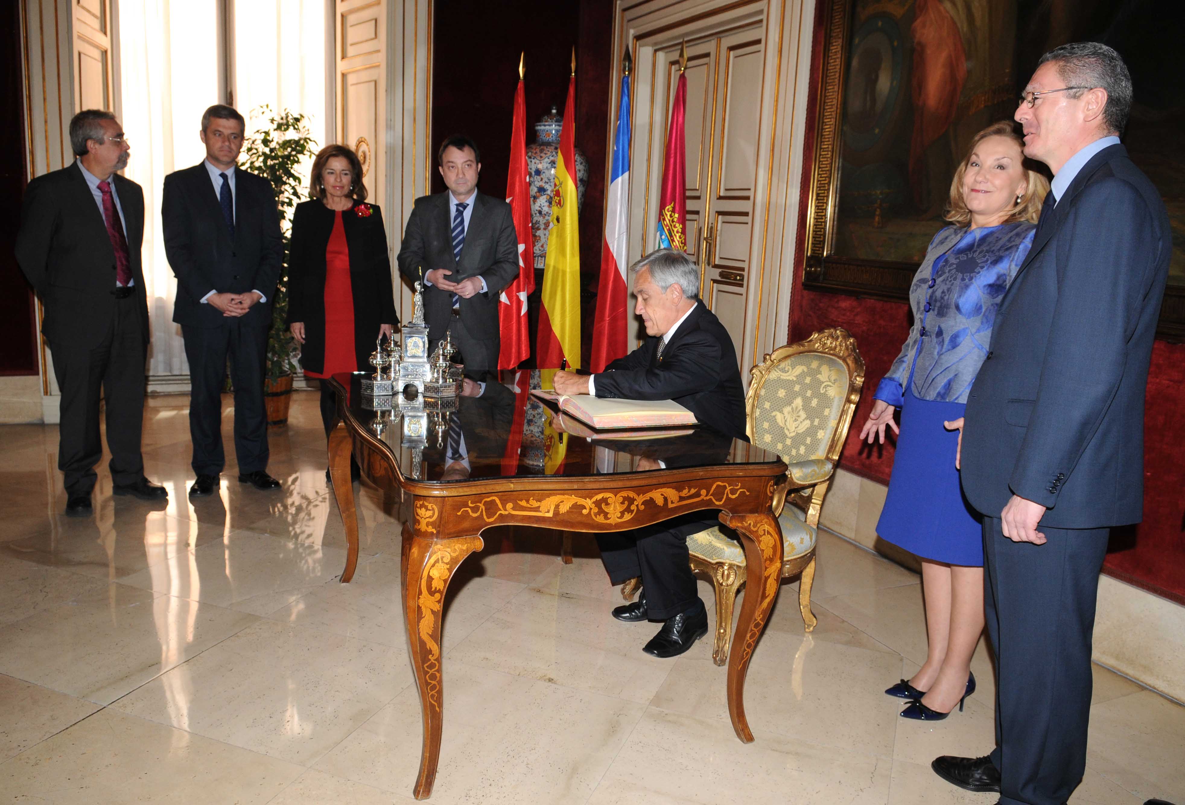 El presidente de Chile, Sebastian Piñera, que visita oficialmente España, recibió esta mañana de manos del alcalde de Madrid, Alberto Ruiz-Gallardón, las Llaves de Oro de la Ciudad. El presidente chileno fue recibido en la Plaza de la Villa por la Corporación Municipal y el Equipo de Gobierno. En el mismo acto, Piñera firmó en el Libro de Honor del Consistorio. Mañana martes, acompañado por la delegada de las Artes, Alicia Moreno, el presidente sudamericano inaugurará una placa del Plan Memoria de Madrid en homenaje al diplomático chileno Carlos Morla Lynch que durante la República y la Guerra Civil española ejerció el cargo de Encargado de Negocios en la embajada de su país convirtiéndola en refugio para perseguidos de ambos bandos. Los diarios que escribió este diplomático a lo largo de este tiempo son considerados, hoy día, imprescindibles para conocer la sociedad española de la época.