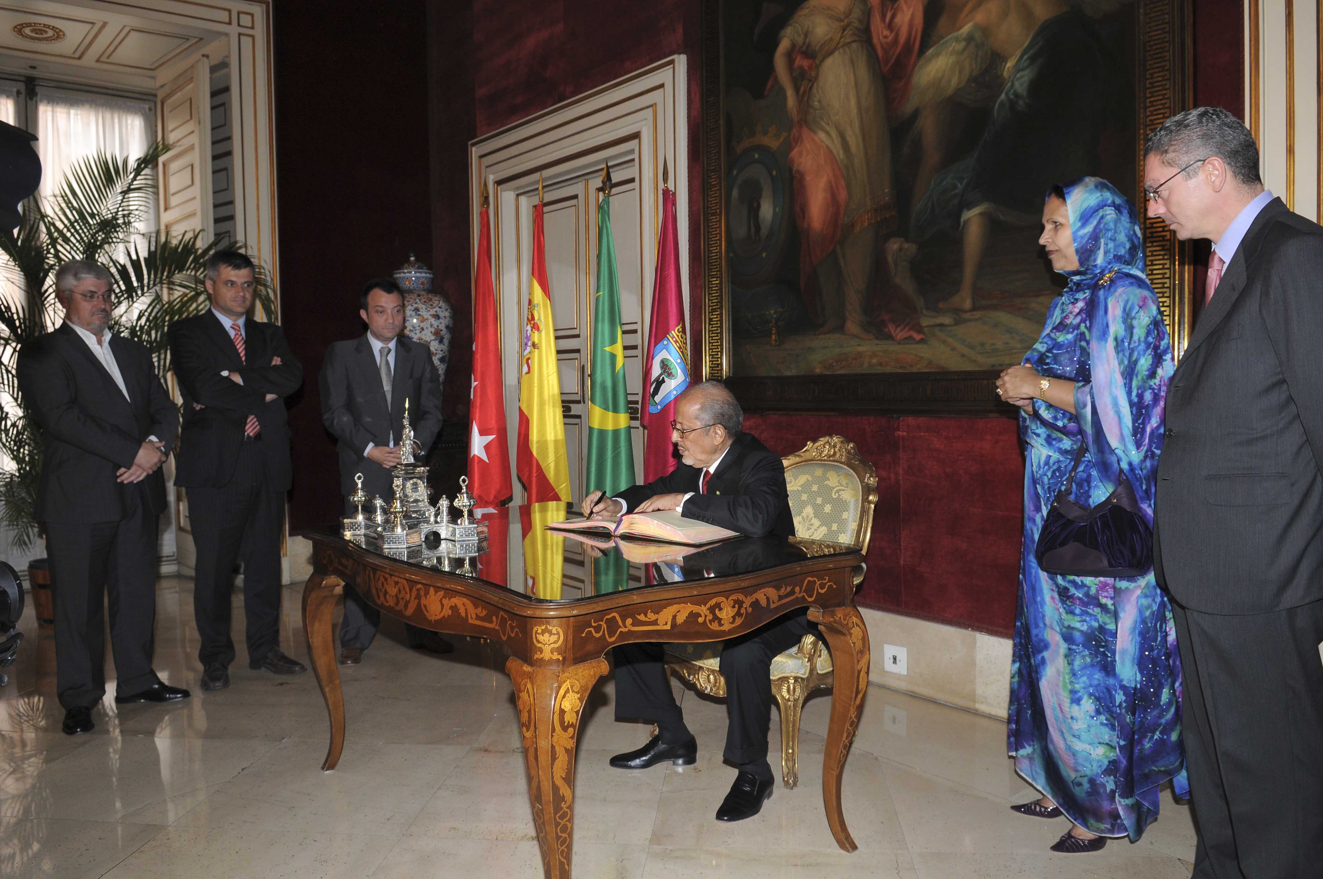 El presidente mauritano ha acudido a su cita en el Ayuntamiento acompañado por Ahmed Hamza Ould Hamza, alcalde de Nuakchott, la capital del país africano con la que Madrid está hermanada desde hace veintidós años y en cuyo callejero dedica una plaza a la capital española.