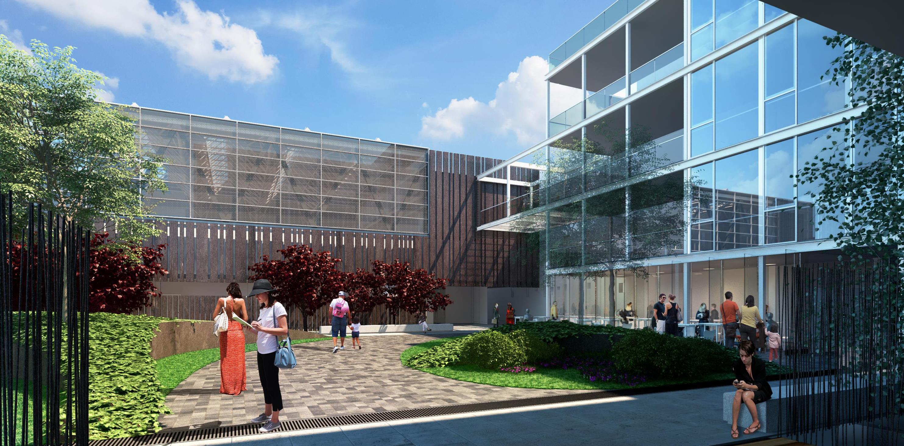 Pero hay más aspectos que sobresalen en este proyecto único: el centro dotacional tendrá una plaza pública que actuará como nexo de unión e integración entre todos los espacios e instalaciones. Esto va a generar una vinculación muy especial con el barrio, ya que, más allá de su carácter dotacional como prestatario de servicios fundamentales para la ciudadanía, su implantación física se resuelve agregando espacio público a las calles, componiendo espacios de paso y recorridos entre ellas a través de los edificios y creando nuevas zonas ajardinados en su interior.